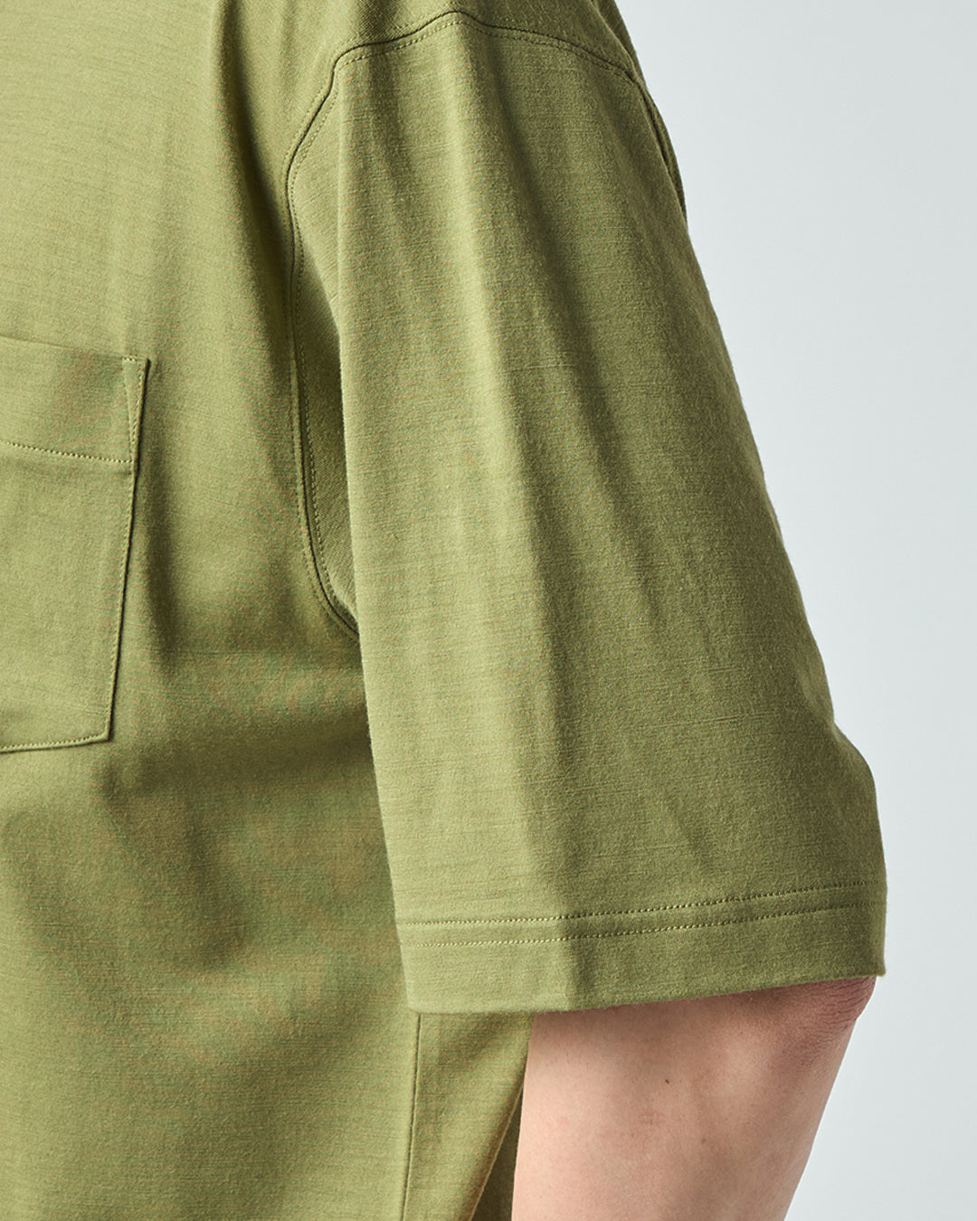 180g/㎡という適度な厚みを持たせることで、透けを抑え、一枚で着てもサマになる「ボリューム感」と「上質感」を追求。