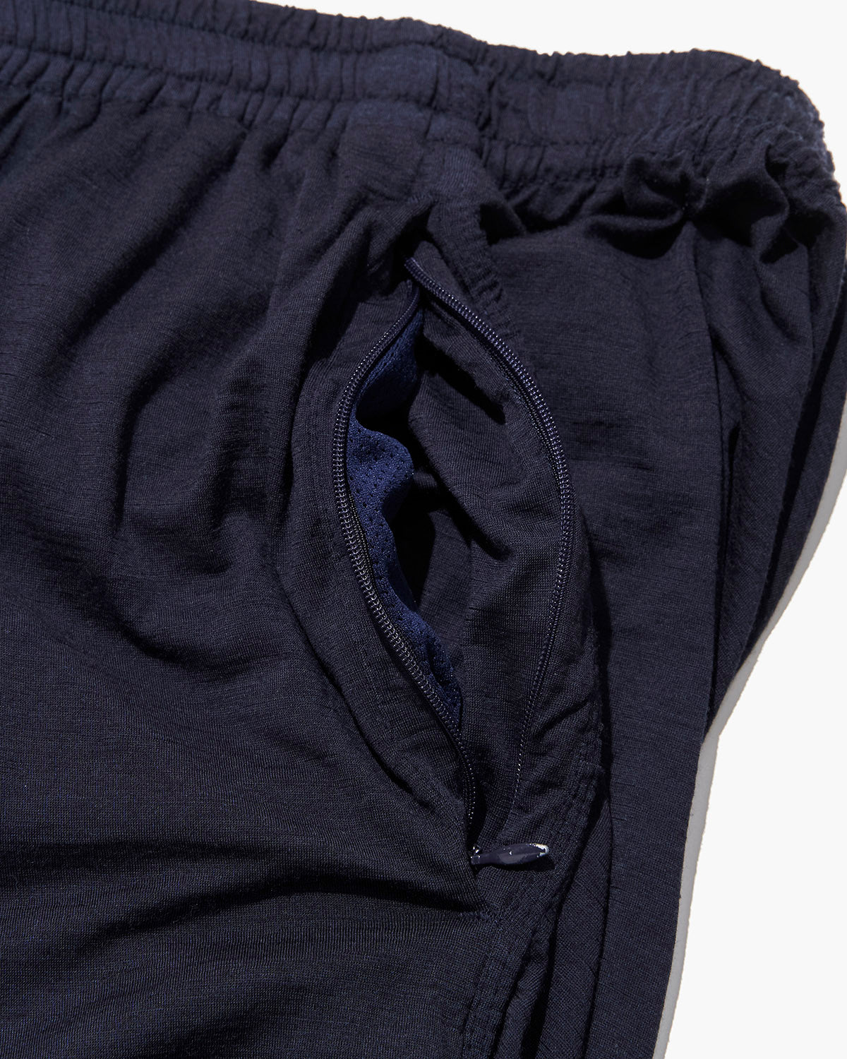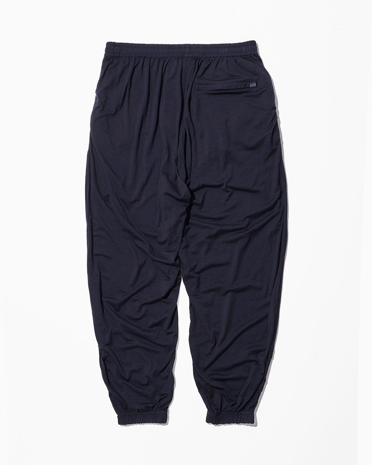 メリノウール製ビックシルエットのイージーパンツ。素材の良さと大きいサイズ感により、あらゆる動きを妨げることなくノーストレス。裾にかけてテーパードがかかり、裾部には緩めのゴムが付いています。前立てジッパー止め仕様。また、ポケットは全てジッパー付き。ポケットに入れた携帯や小銭を落とす心配がありません。
