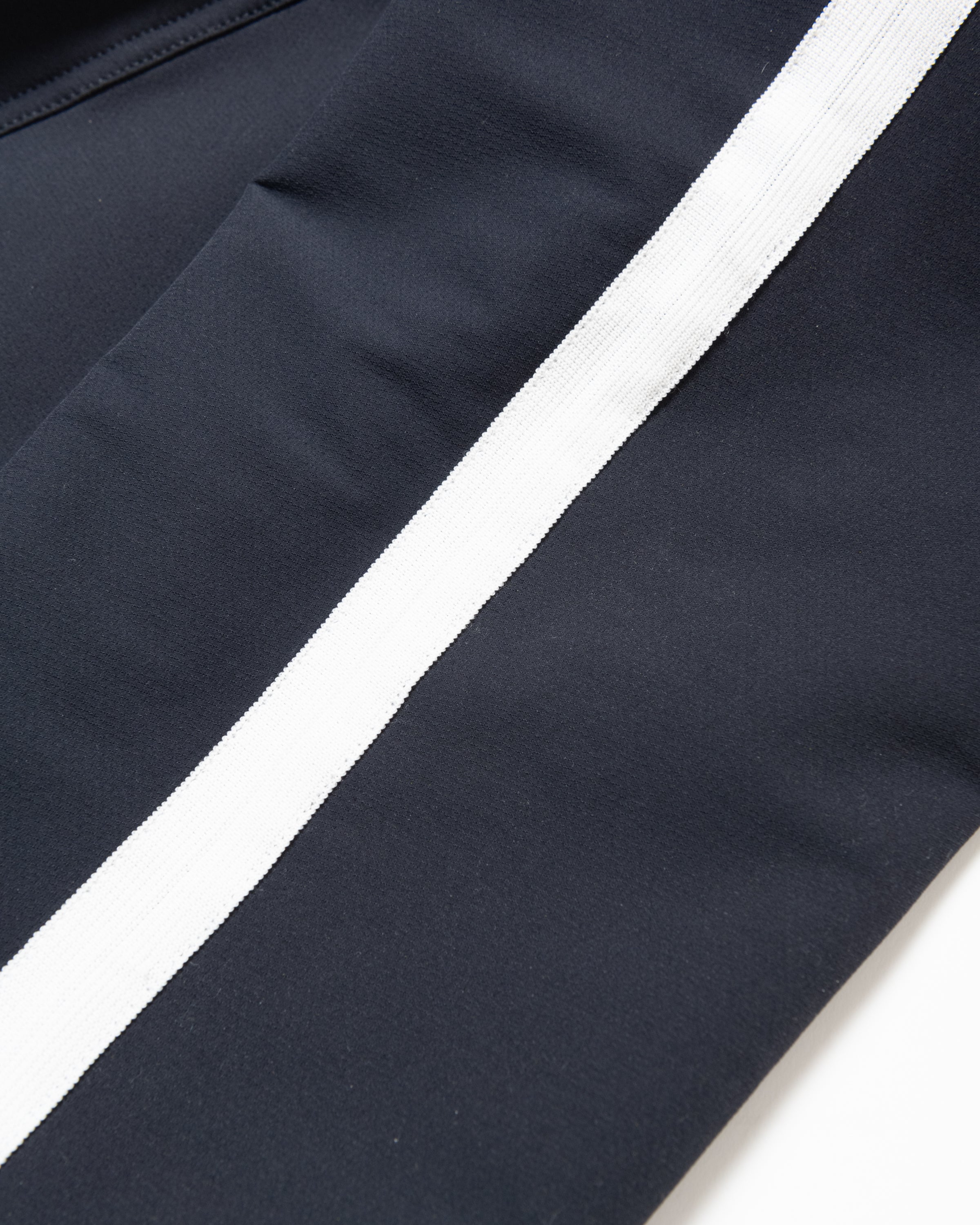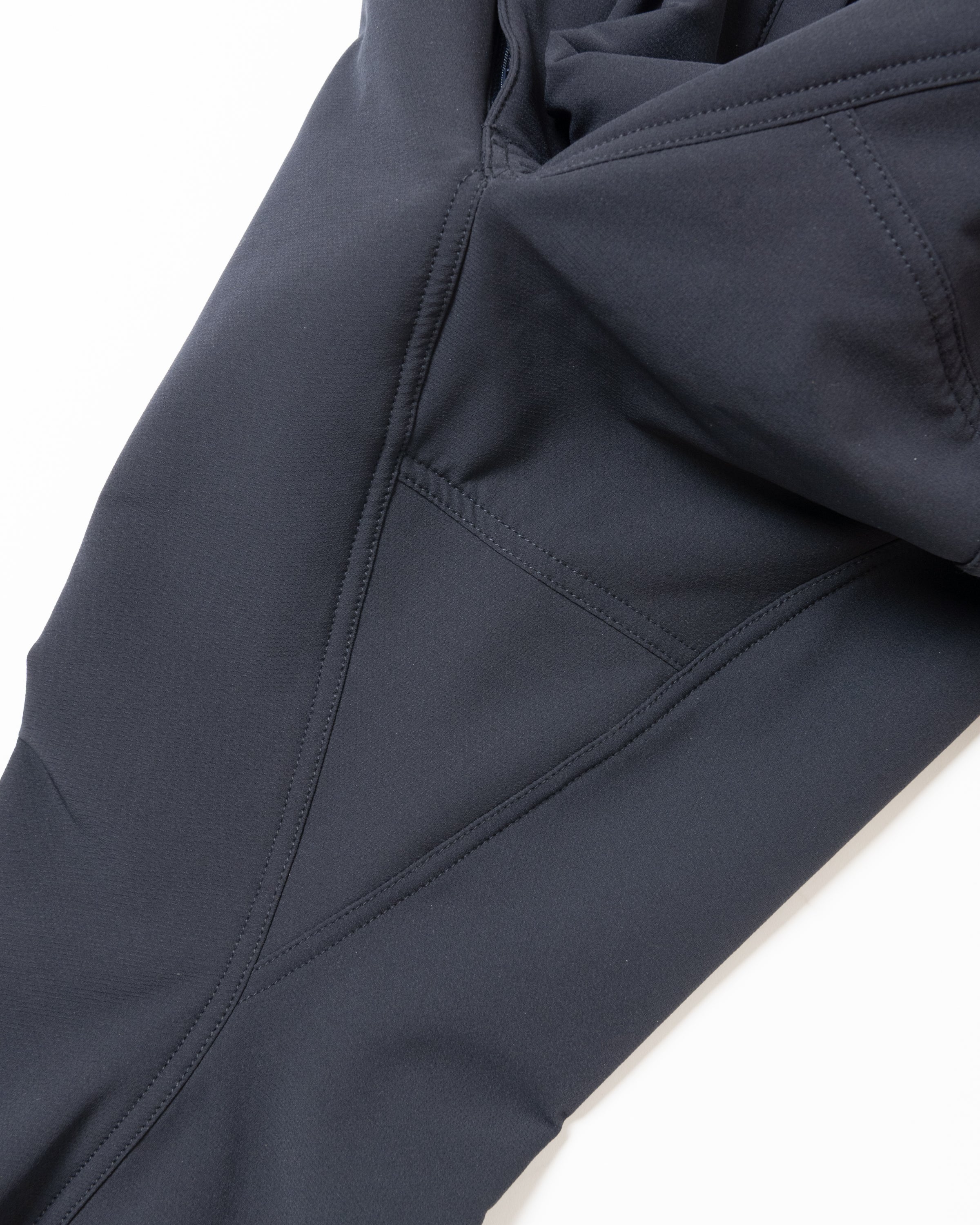 フロントジップは上下から開閉可能なWジップを採用し、やや股下深めに配置。クライミングハーネスやバックパックのウェストベルトを外さなくても下側から操作できます。