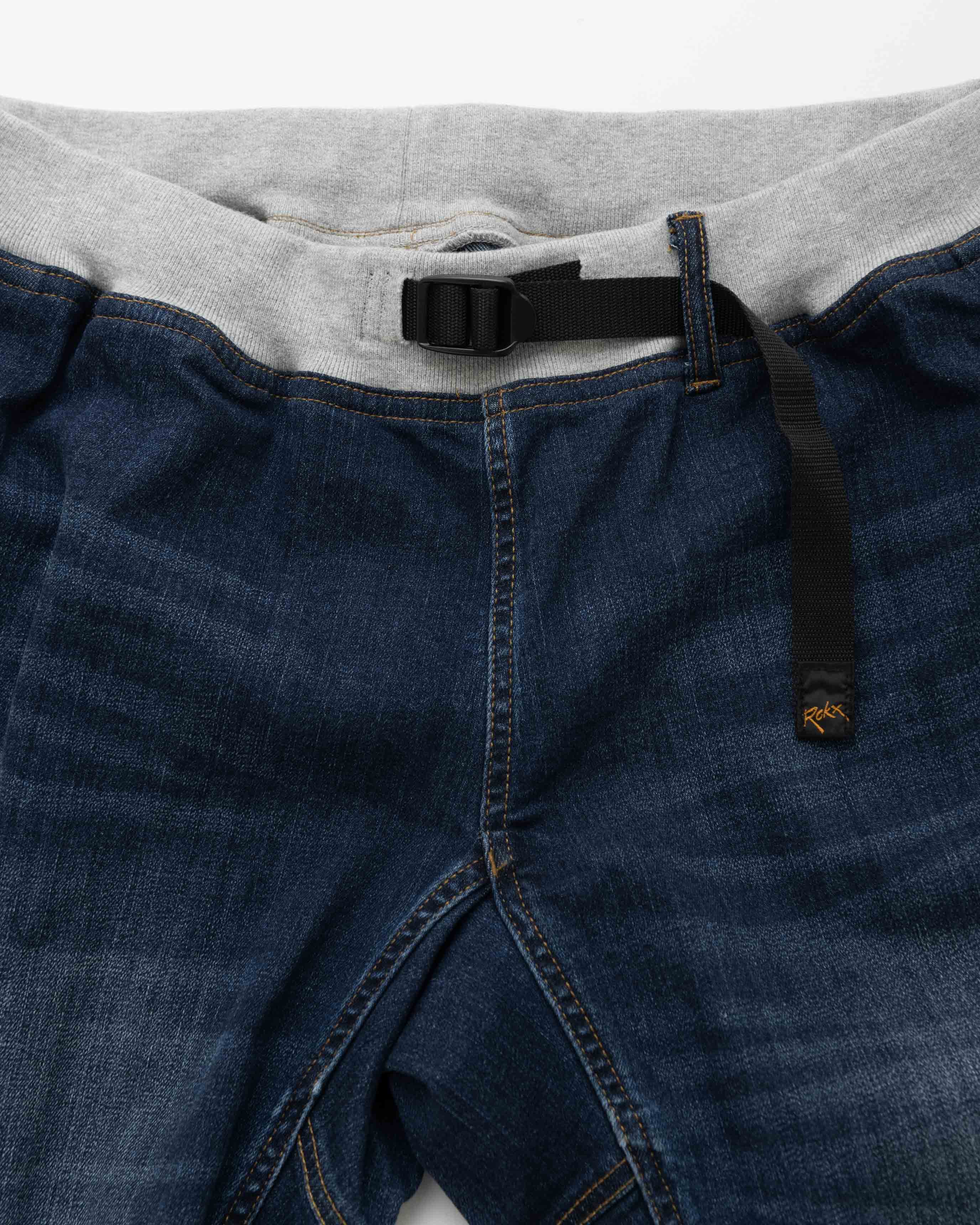 ROKXの定番モデル「MG WOOD PANT」に、ビンテージ感漂うデニム地を採用したモデル。