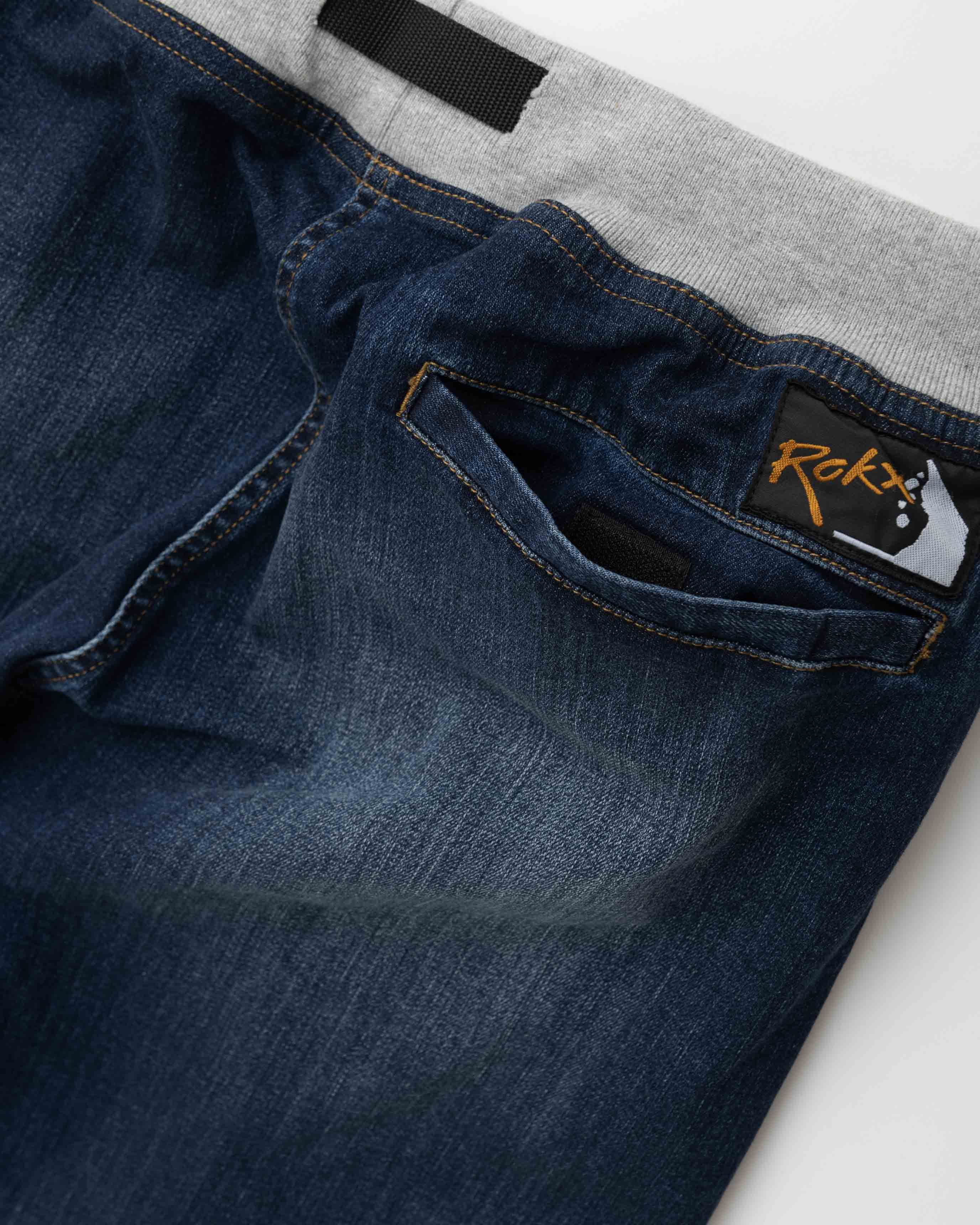 その他クライミングに不要なフロントジッパーを省略し、片手で調節できるウェビングベルト、裾のばたつきを抑える肉厚の裾リブなど、今ではクライミングパンツのスタンダードとなっているディティールです。