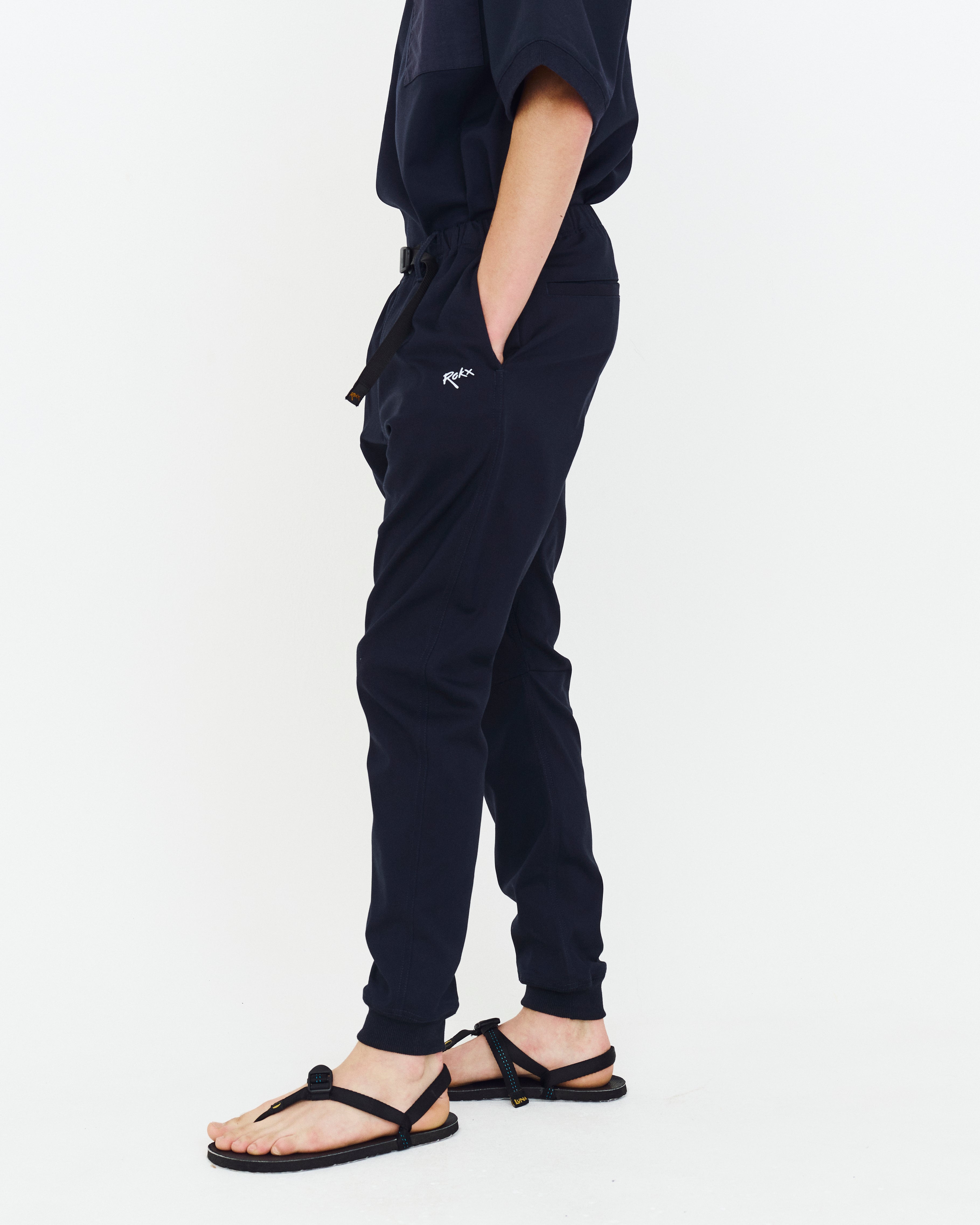 ROKXのアクティブスポーツシリーズを代表する、運動性とカジュアルさを兼ね備えたストレッチ裾リブパンツ。