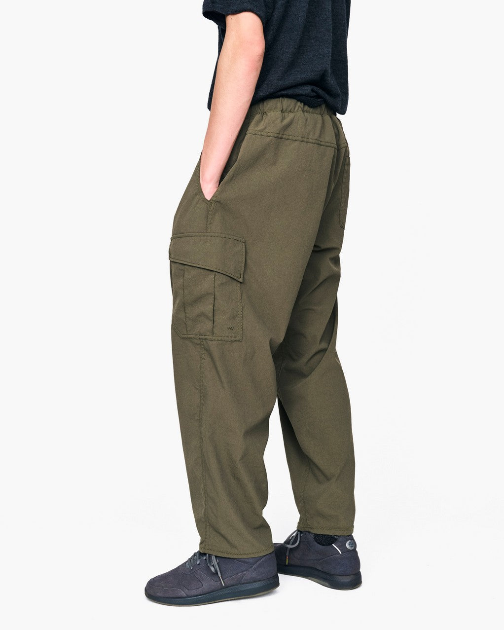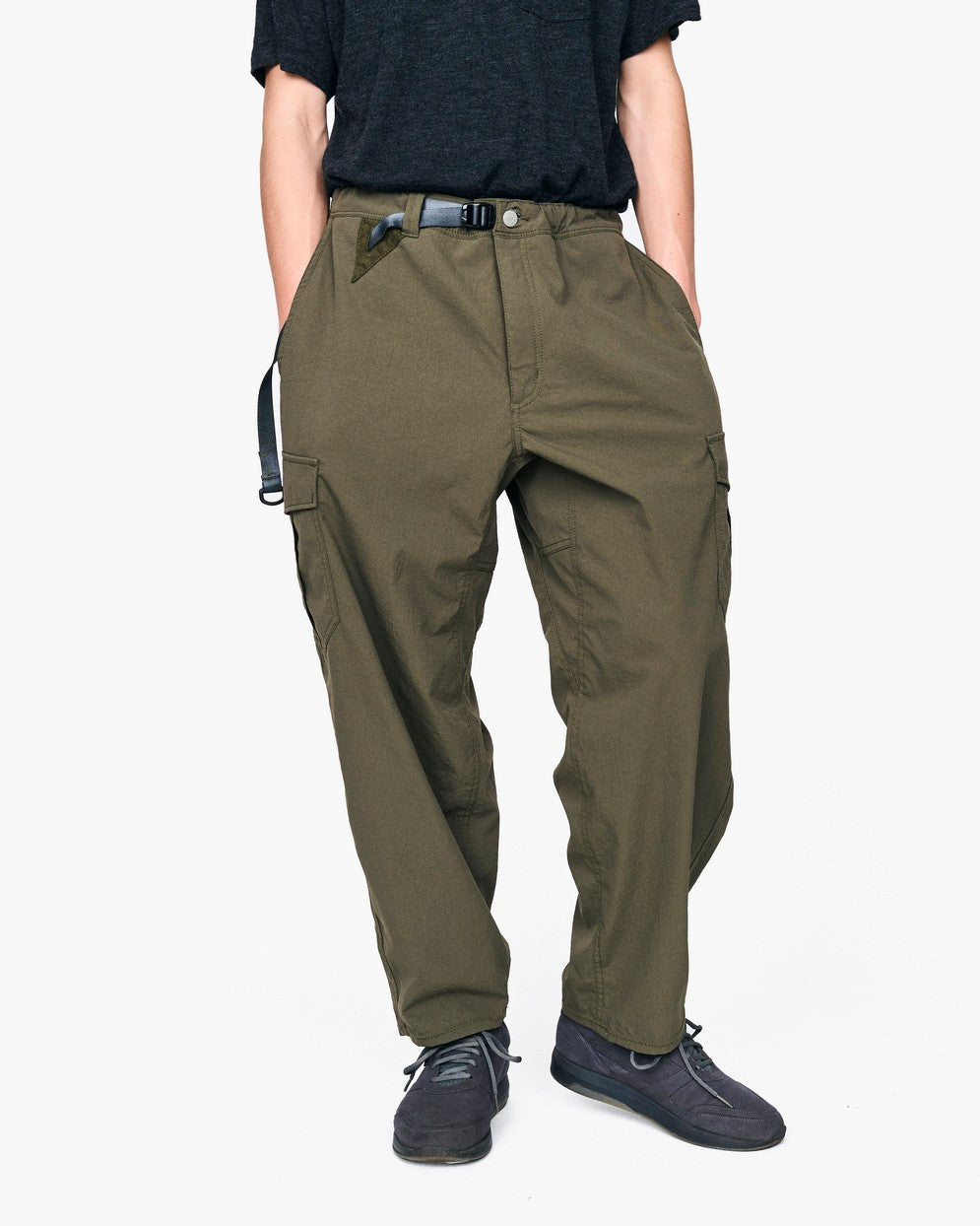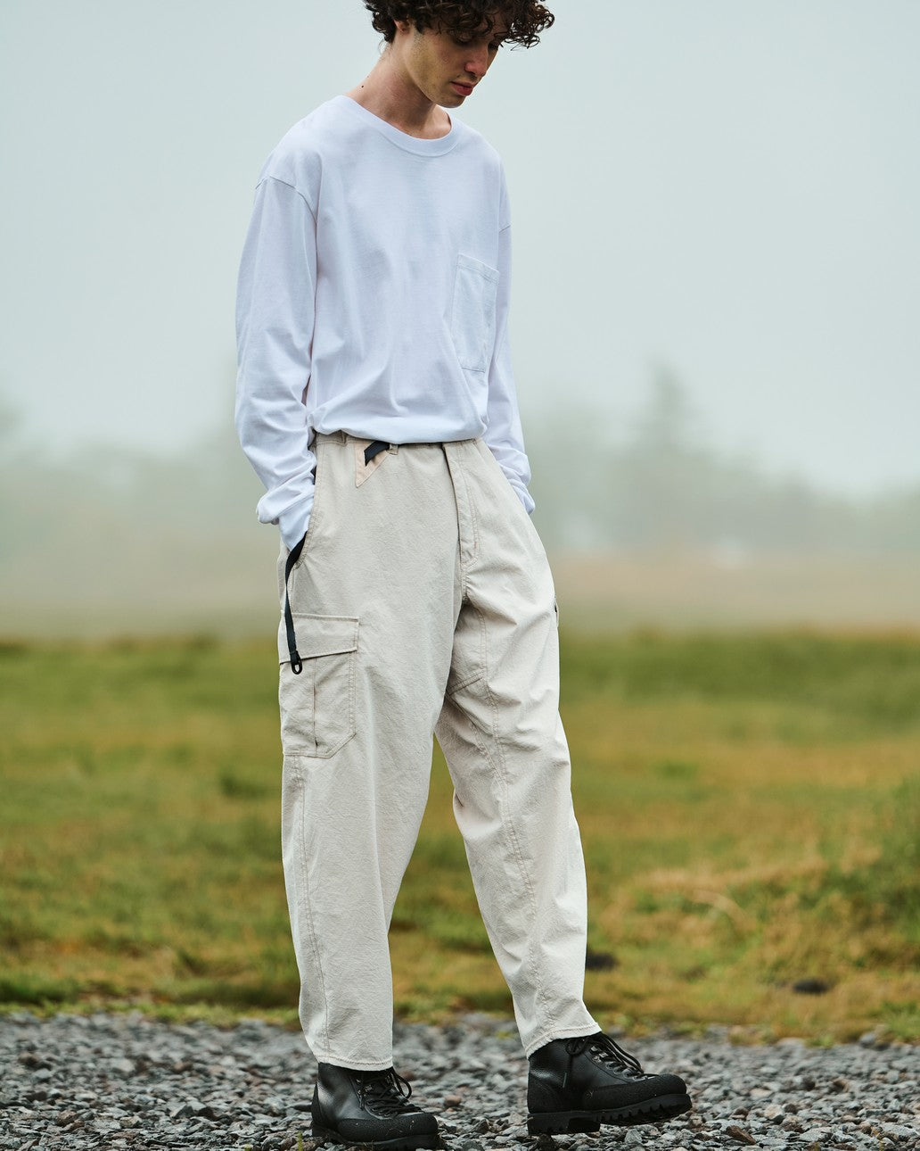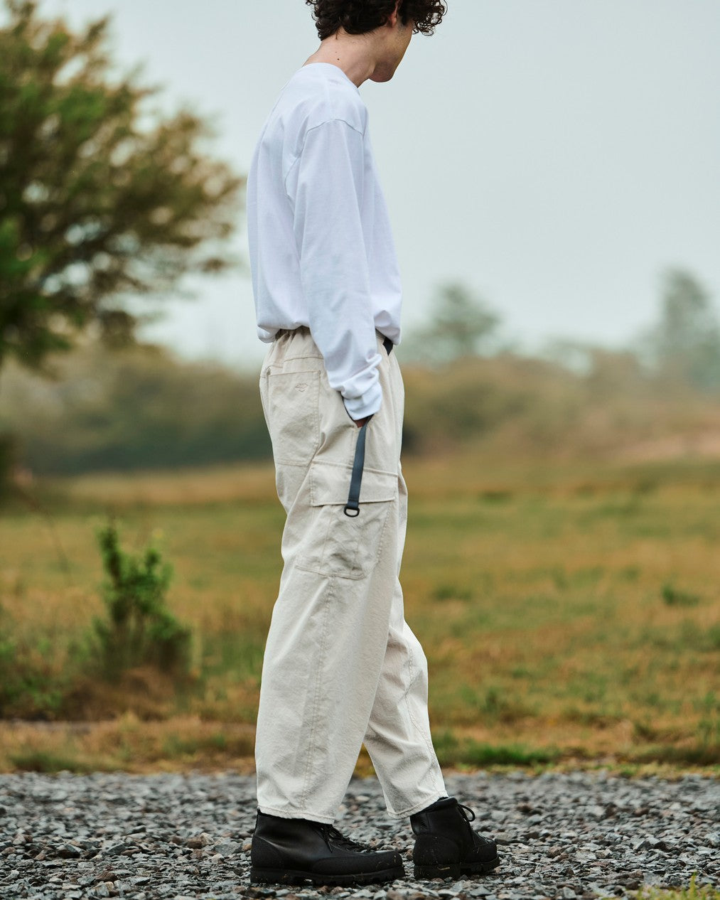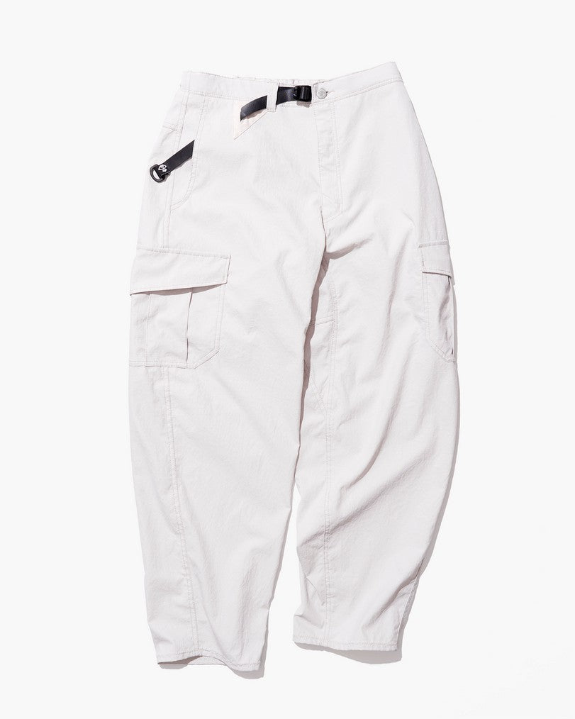高い撥水性能を持つファブリックを採用するカーゴパンツ。