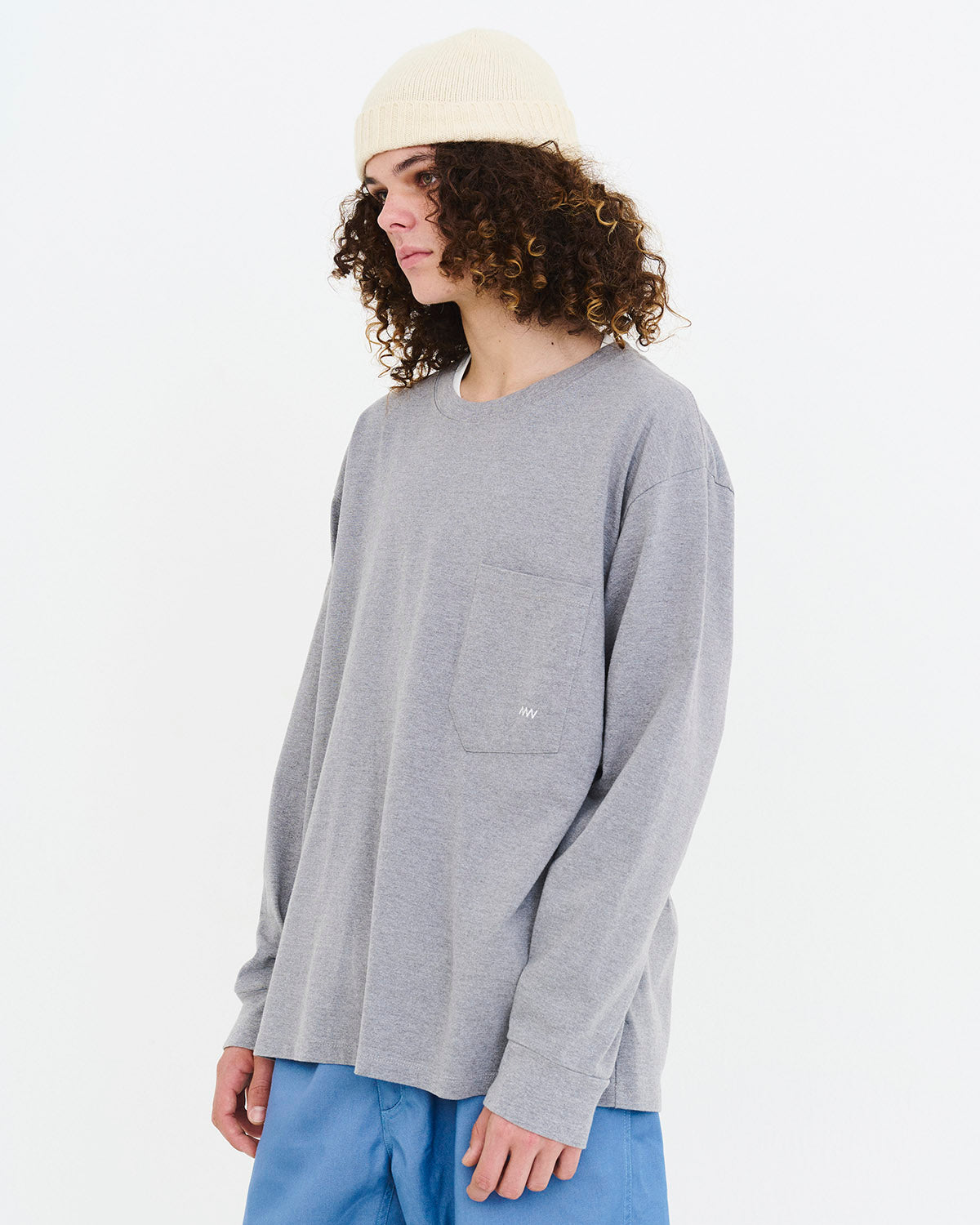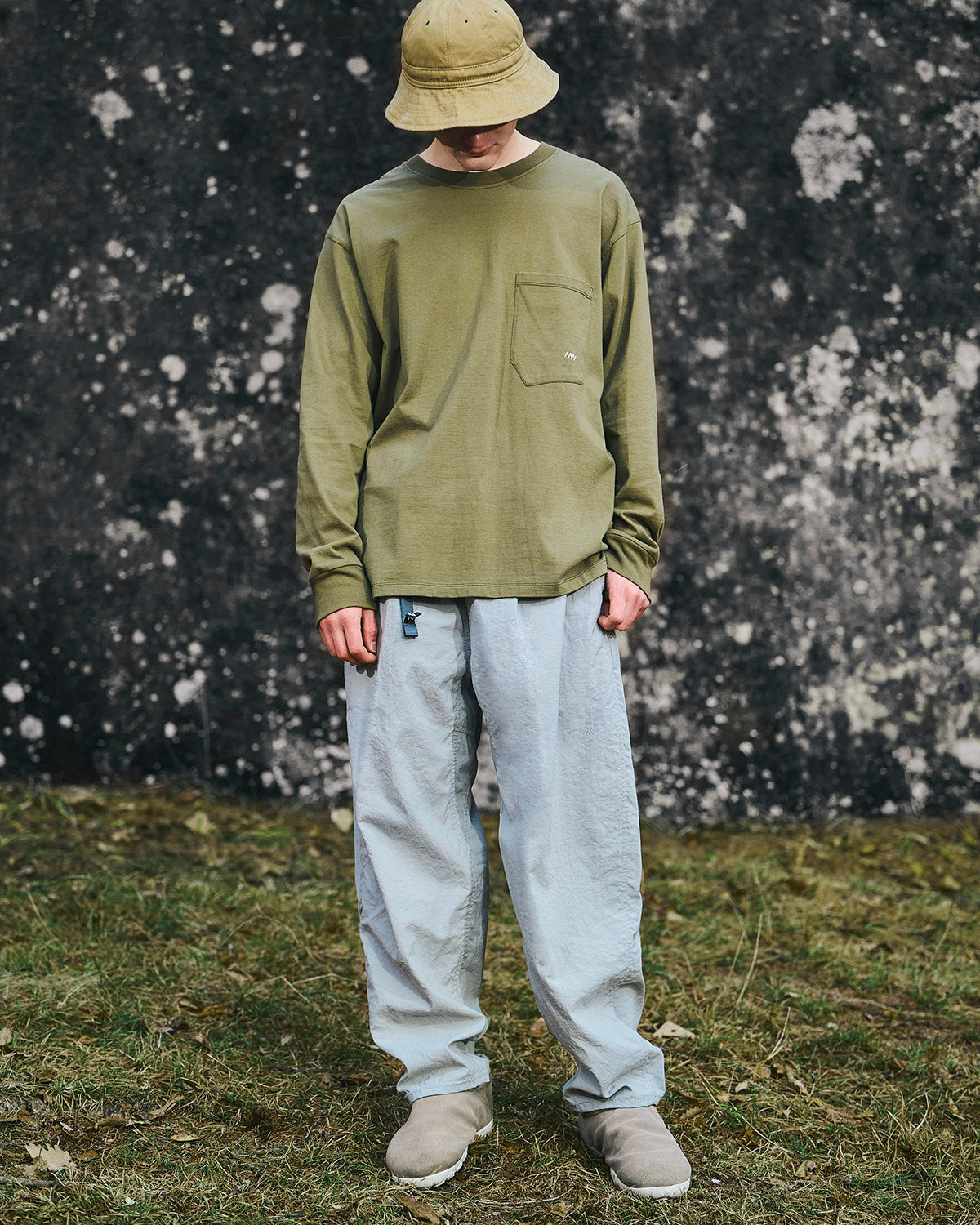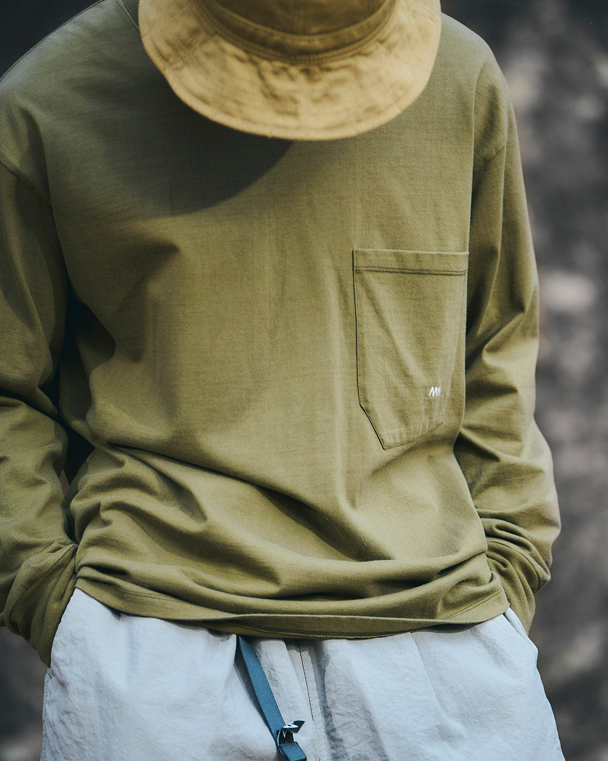 CORDURA® ナイロンとコットンをミックスしたロングスリーブTシャツ。こちらは16番天竺を用いた肉厚で上質な素材を更にワンウォッシュ加工仕上げ。着心地良さはもちろん、暑い時期でもドライをキープし、洗ってもくたびれない耐摩耗性に優れたTシャツ。マイクのハンドドローイングで作られたポケットに、ストーンマスターの象徴的なギザギザステッチをワンポイント刺繍。