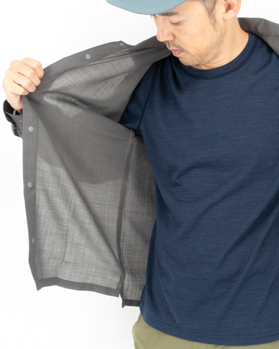 メリノウールが持つ抗菌・防臭効果と保温性。ポリエステルの速乾性と耐久性を備えた、登山での使用に適したメリノウール混紡シャツです。