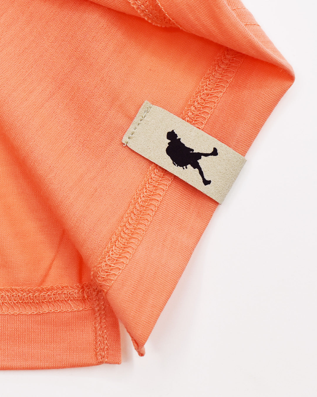鮎美ちゃんが早暁の山の稜線から見た空の色をイメージした「朝焼ピーチファズ」と、テント泊の夜に星空を見上げながら、様々なことに想いを募らせる…そんなイメージの「夜想ネイビー」。このTシャツだけのオリジナル染色となっています。