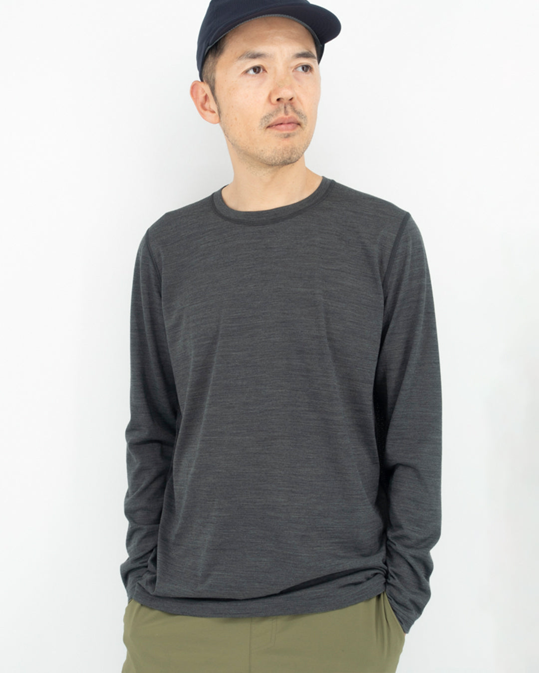 メンズモデル:179cm Ash Grey/ Lサイズ Midnight Navy/ Mサイズ