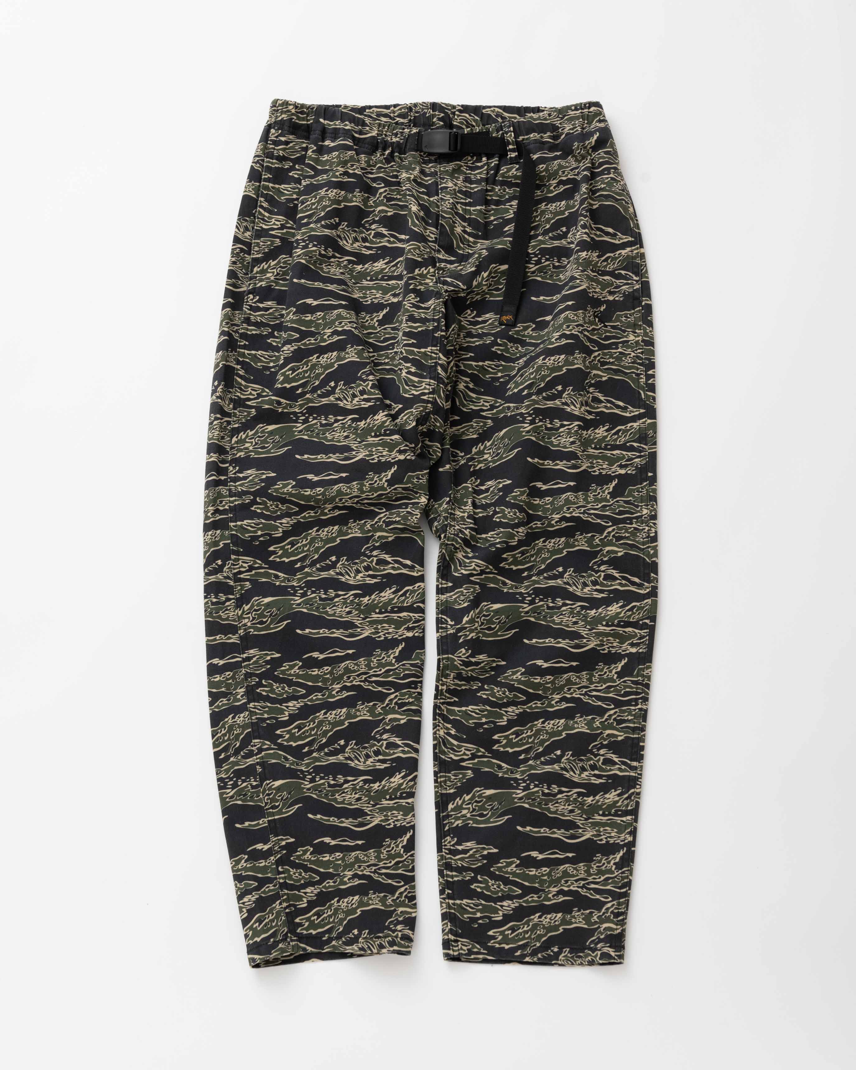 ウエストの調節が簡単なウェビングベルトや、180°股を広げることが可能なガゼットクロッチ、裾が邪魔にならないテーパード仕様など、ROKXの象徴である「クライミングパンツ」としの機能を持ちつつ、カジュアルウェアとしても街でも活躍するパンツです。