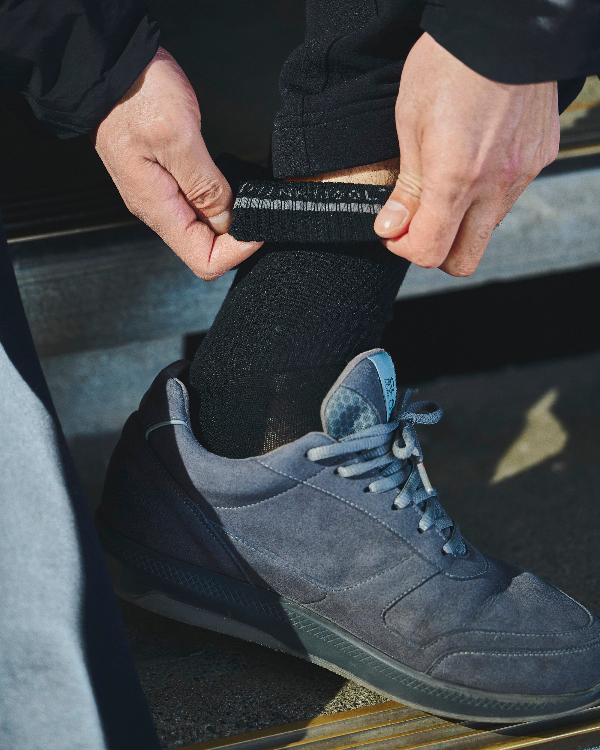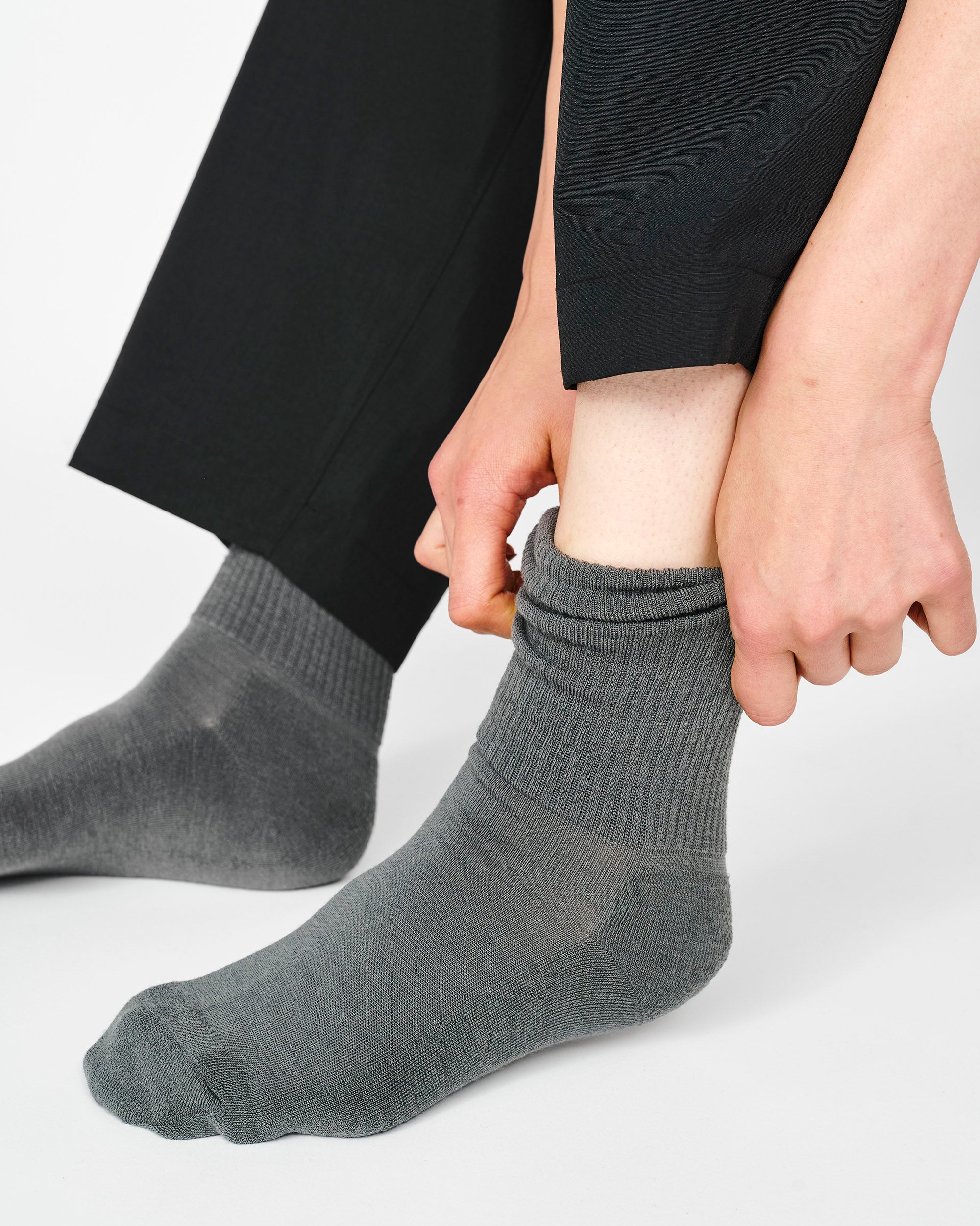 天然繊維のウールと最先端の合成繊維をブレンドした着用感を意識させないリラックスソックス。