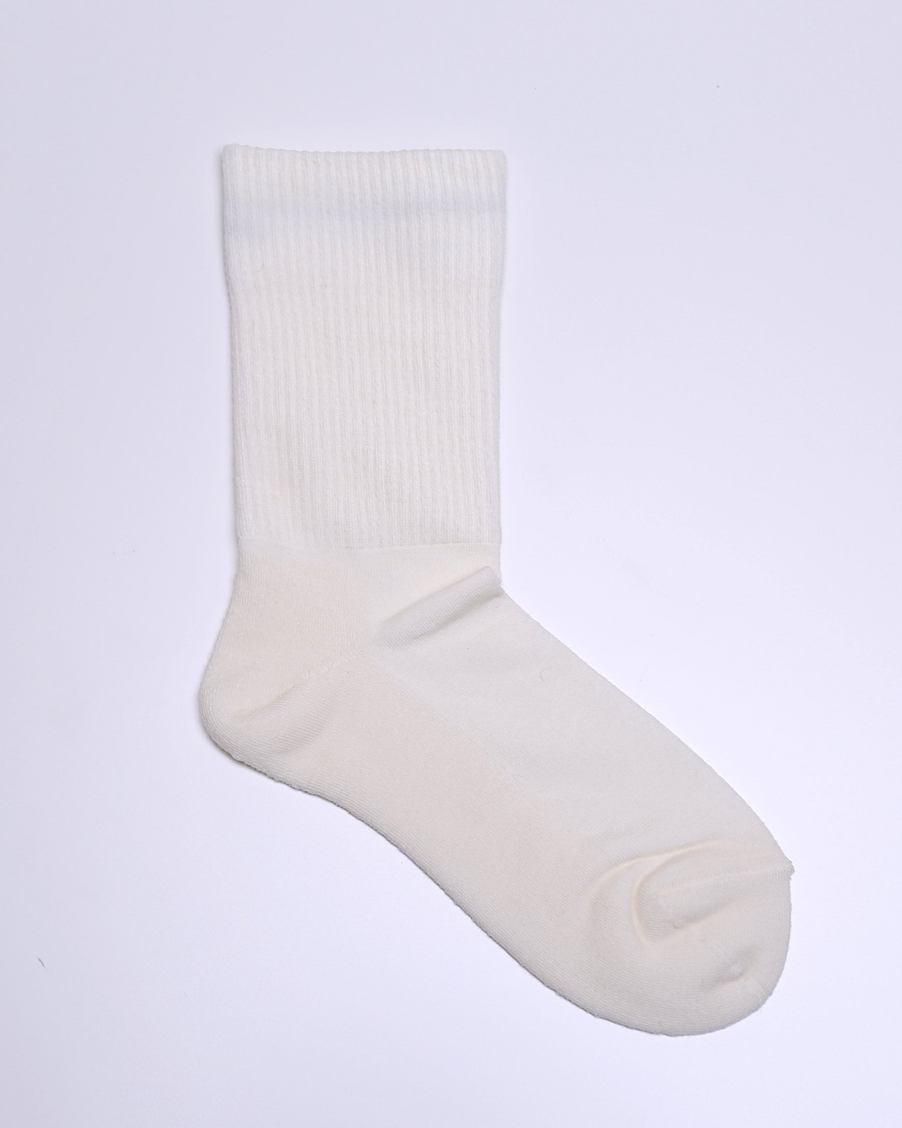 リブ部分はゆったりめの適度なフィット感とリブの長さもふくらはぎの筋肉下までとし足裏だけでなくトータルで足を包み込むようなリラックスソックスに仕上げました。