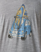フロントに描かれたのは、サーフボードを載せて海へと向かうクラシックカー。