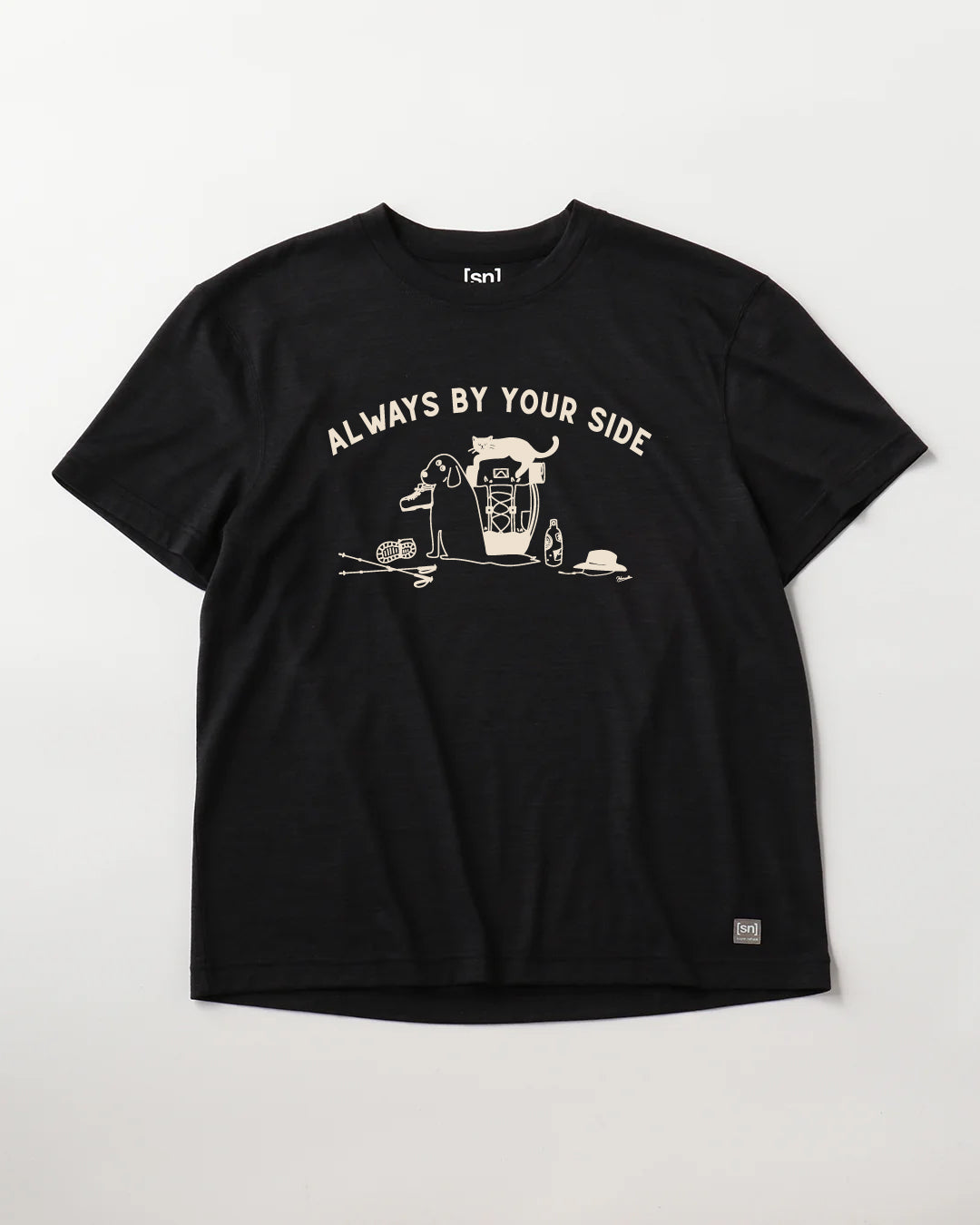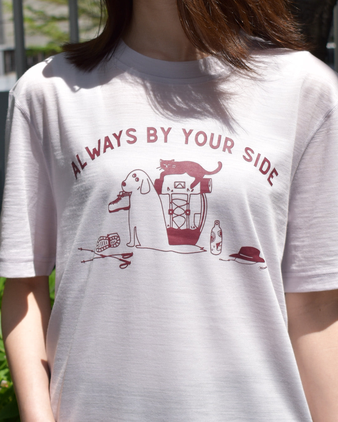 ハイキングギアと動物たちをあしらった、愛嬌のある1着。自然の中でも街中でも、お気に入りの相棒たちとリラックスして過ごしたい日に。