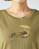 ビーチパラソルの下、パンに挟まれてリラックスしているのは……なんとダックスフント!