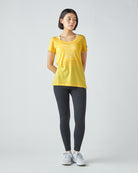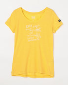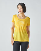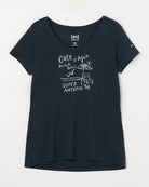 通常のグラフィックTシャツよりも広めに設定された襟ぐりは、鎖骨ラインを綺麗に見せ、より女性らしい印象に。