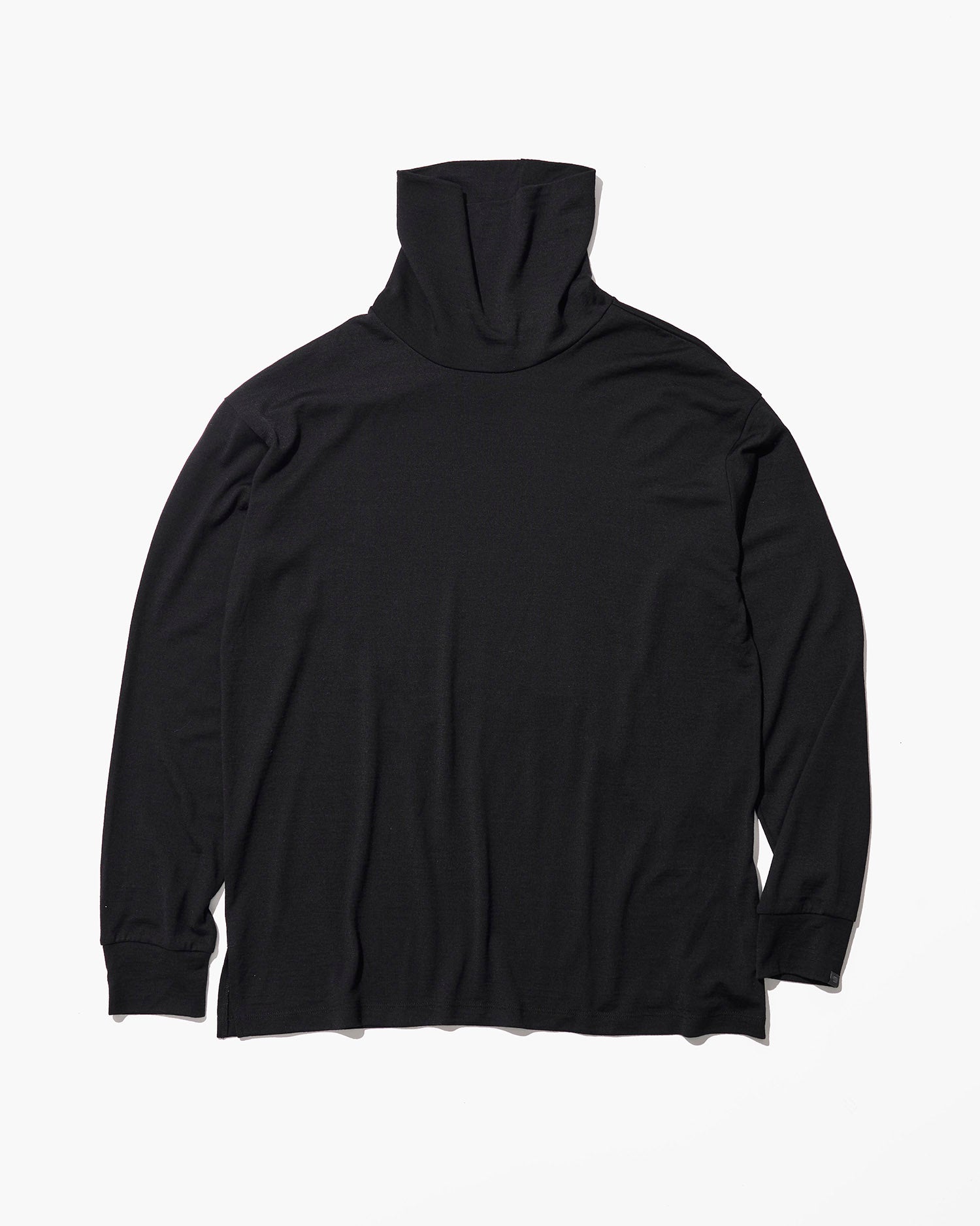天然繊維のウールと最先端の合成繊維をブレンドしたファブリックを採用するタートルネック。