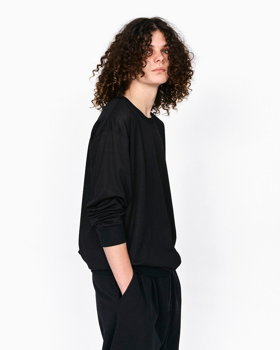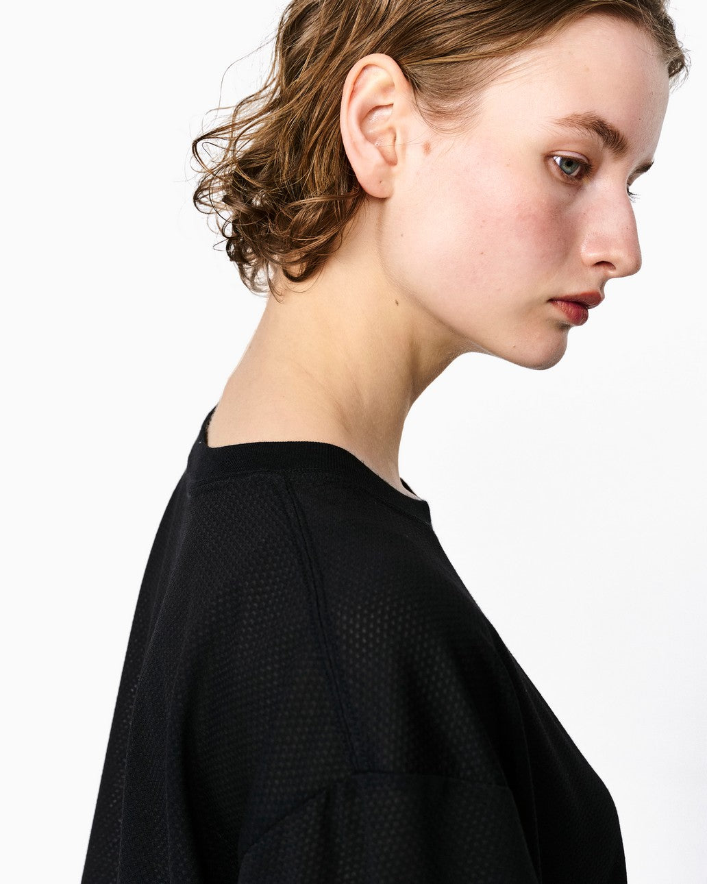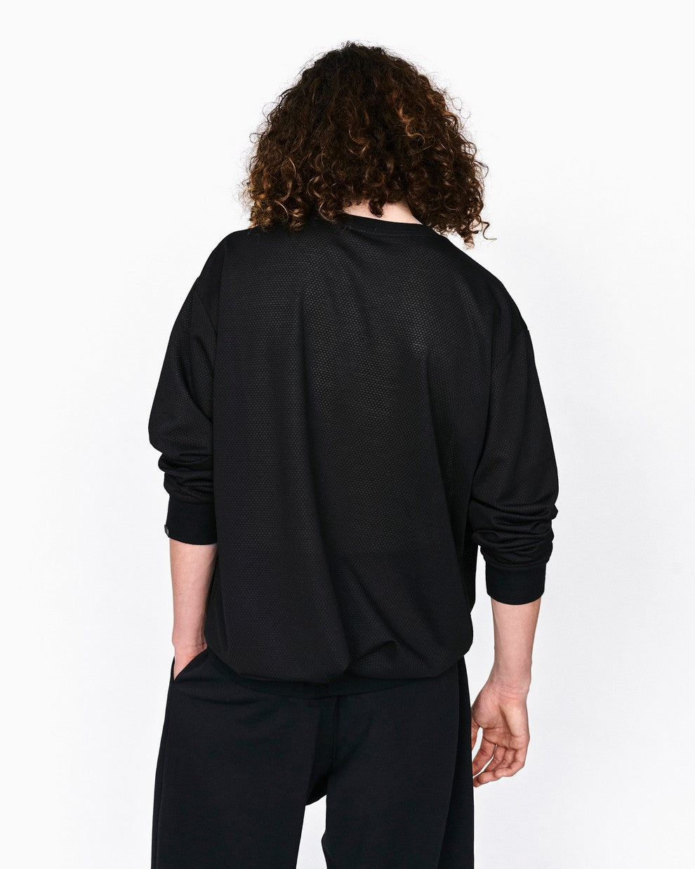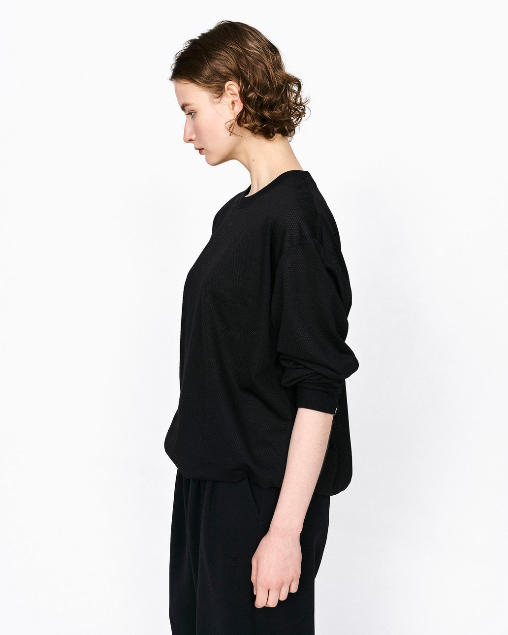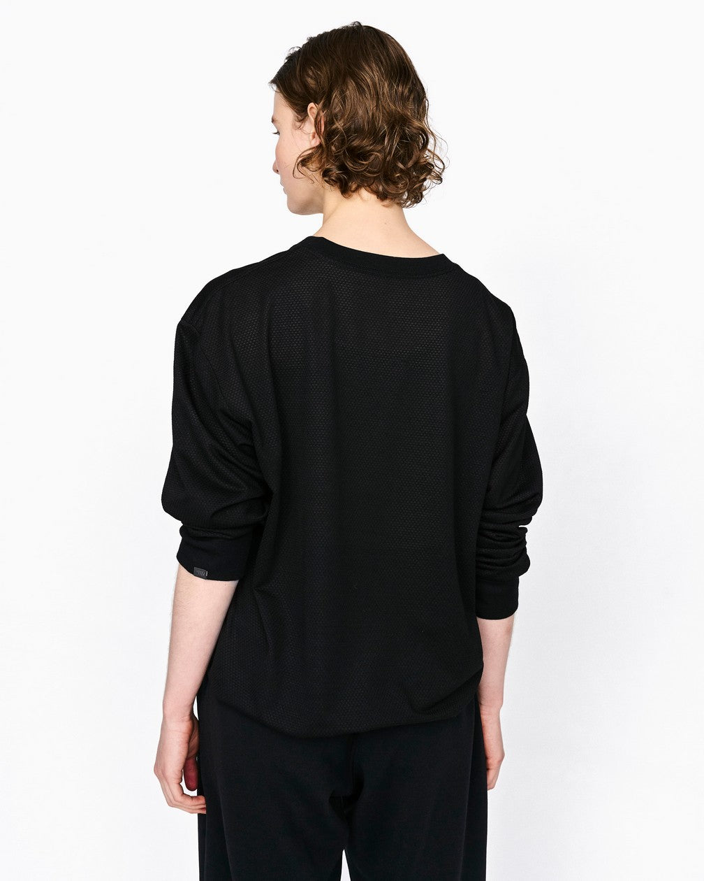 天然繊維のウールと最先端の合成繊維をブレンドしたメッシュファブリックを採用するロングスリーブリブシャツ。