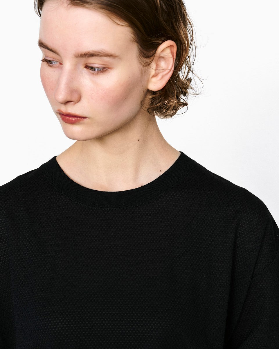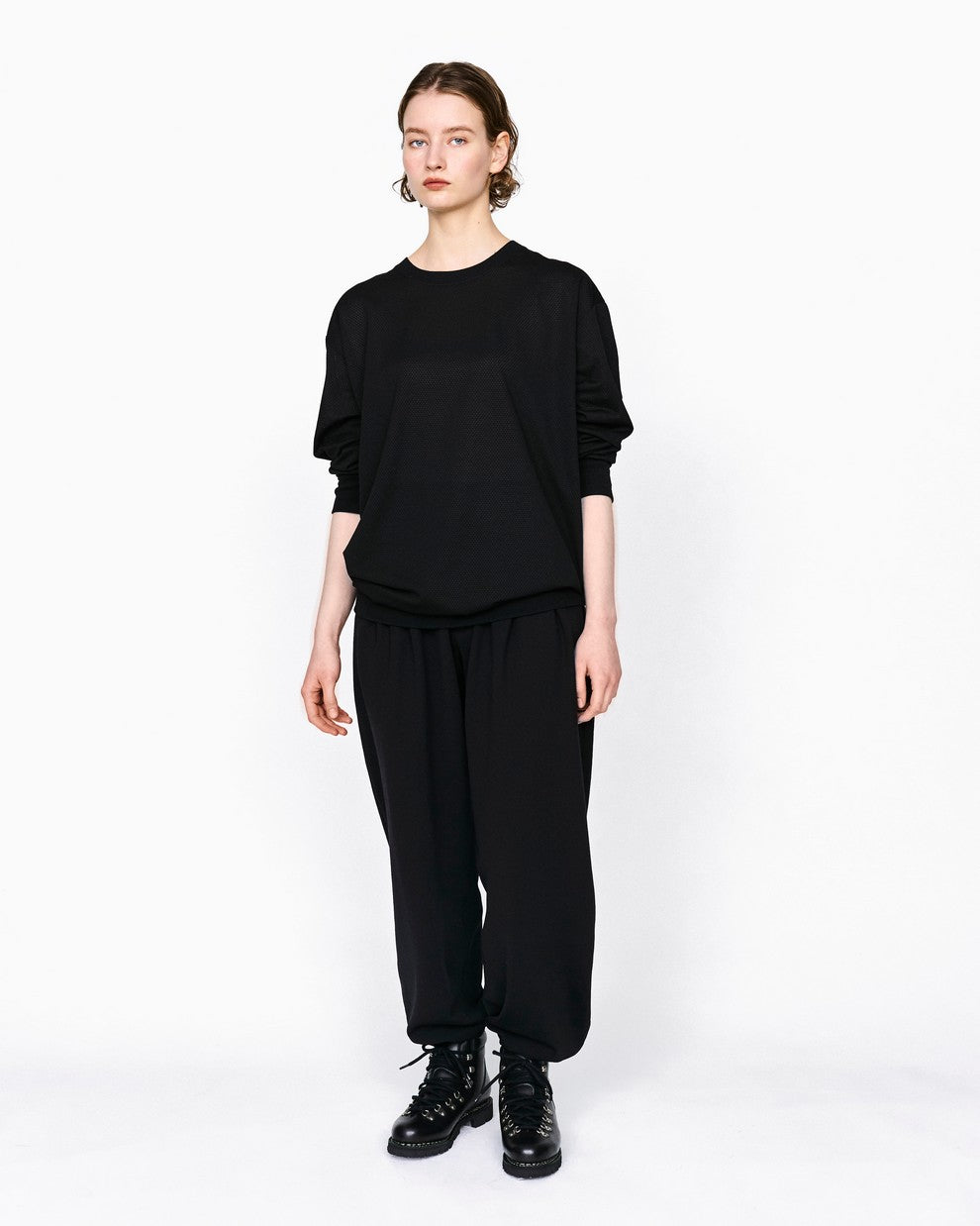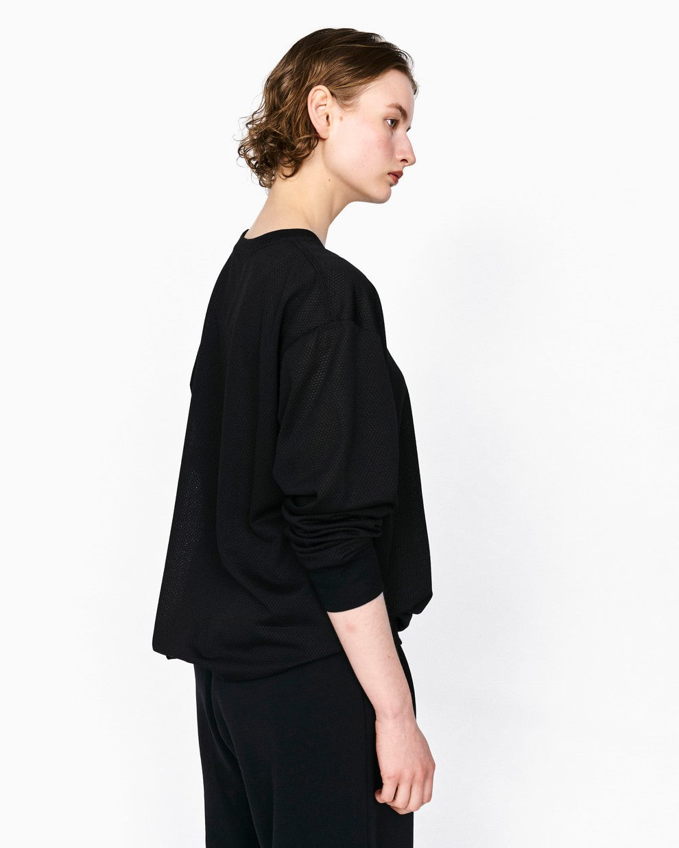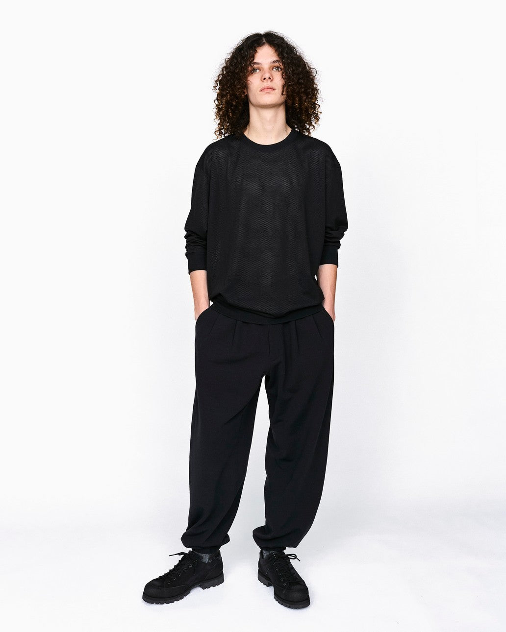 天然繊維のウールと最先端の合成繊維をブレンドしたメッシュファブリックを採用するロングスリーブリブシャツ。
