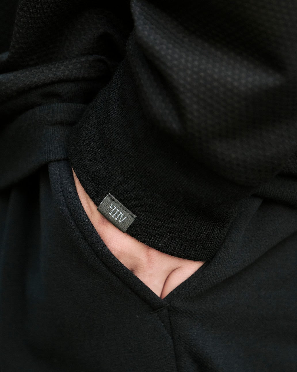 メッシュの透け感は思いのほか気にならず、通気性は抜群で、しかも気温が下がってくればレイヤリングすることで保温性も備えます。