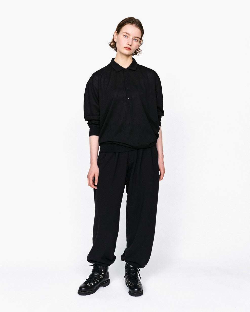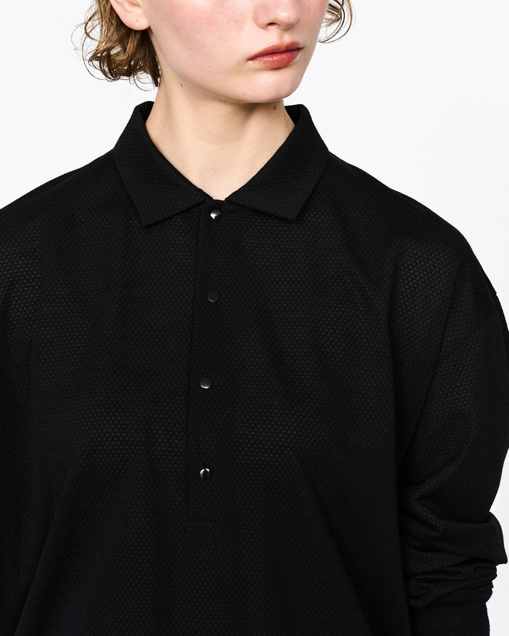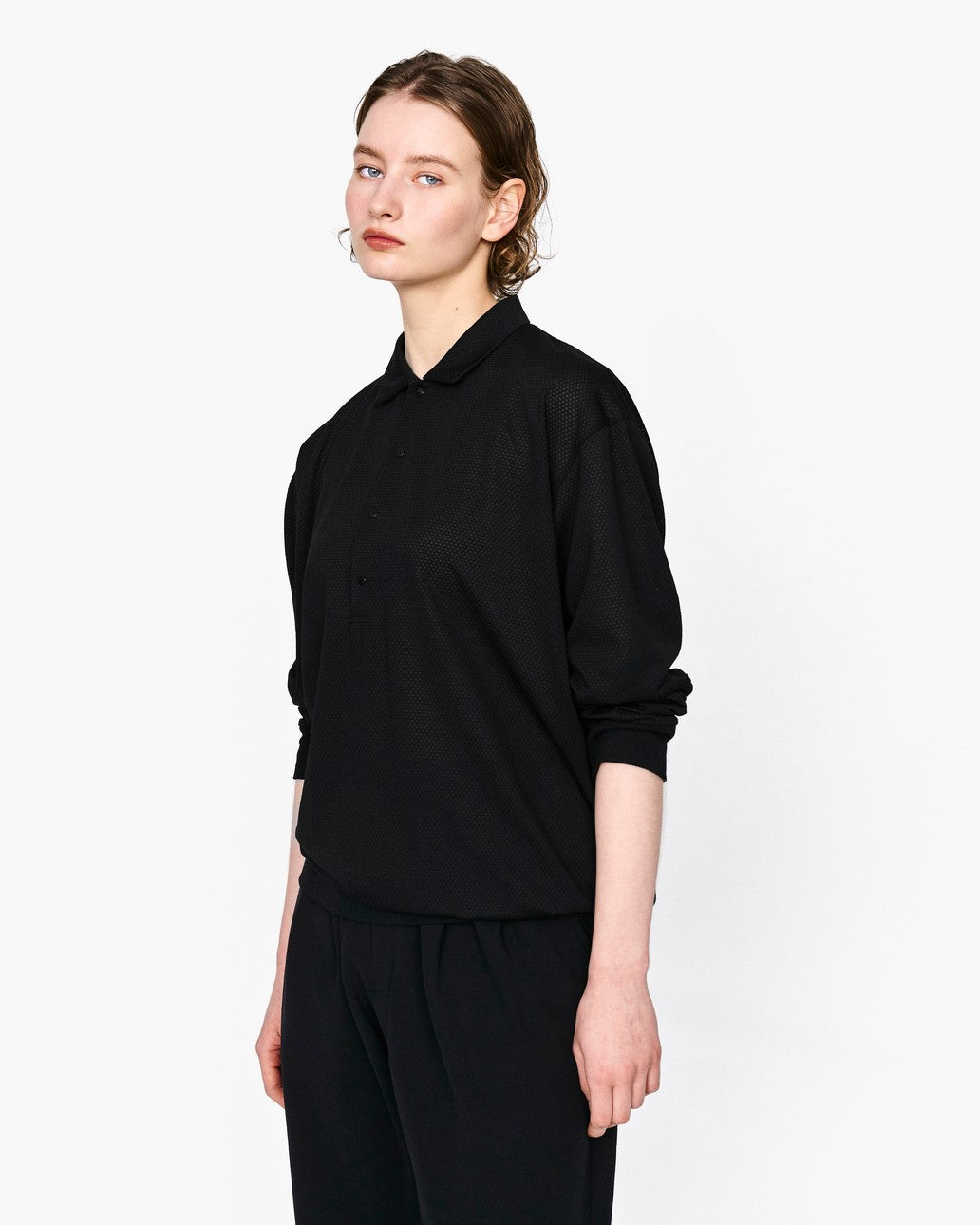 天然繊維のウールと最先端の合成繊維をブレンドしたメッシュファブリックを採用するロングスリーブポロシャツ。