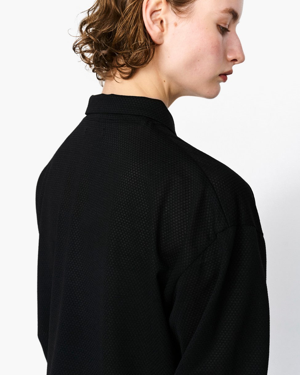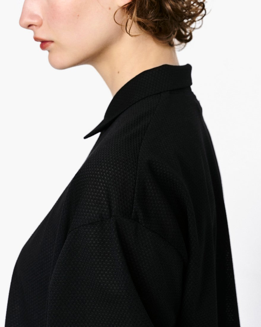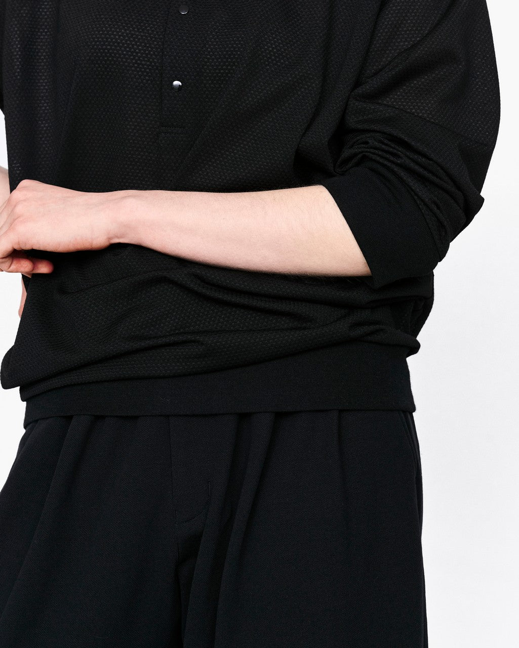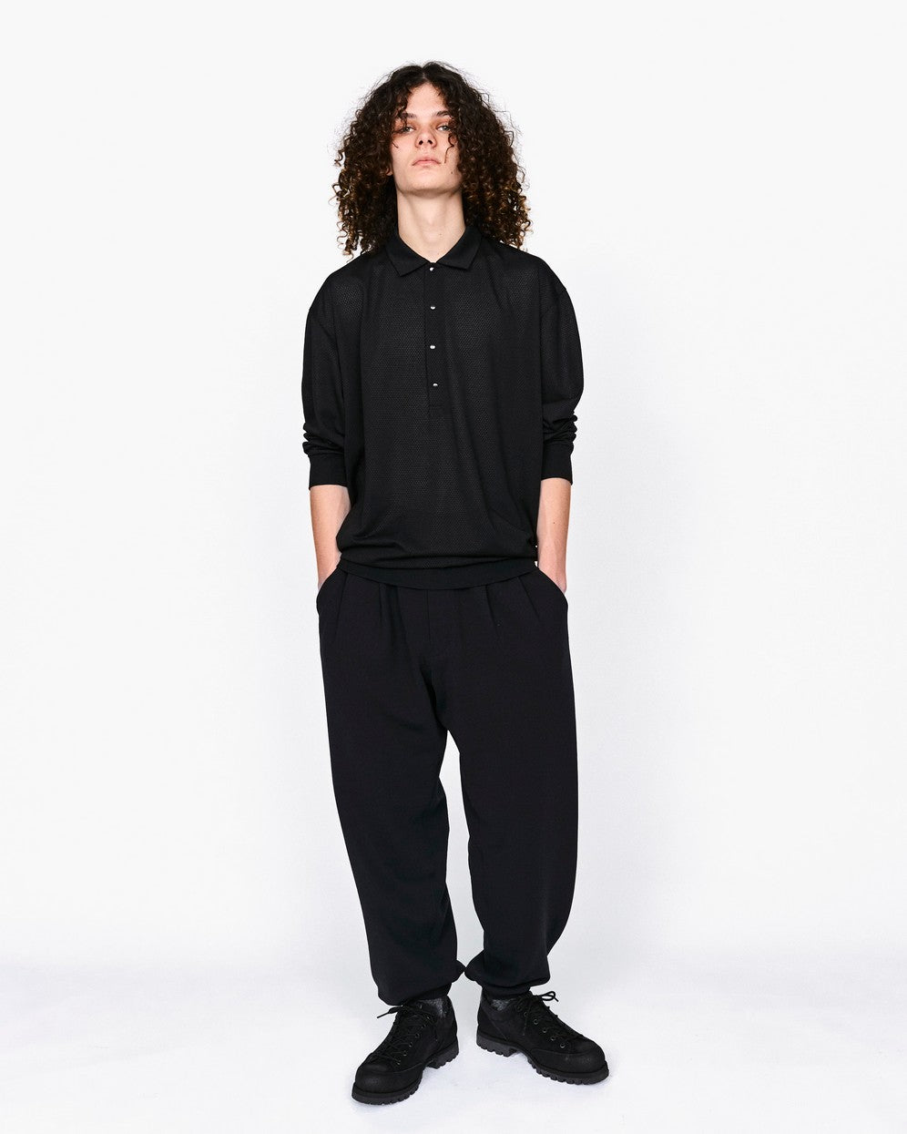 天然繊維のウールと最先端の合成繊維をブレンドしたメッシュファブリックを採用するロングスリーブポロシャツ。