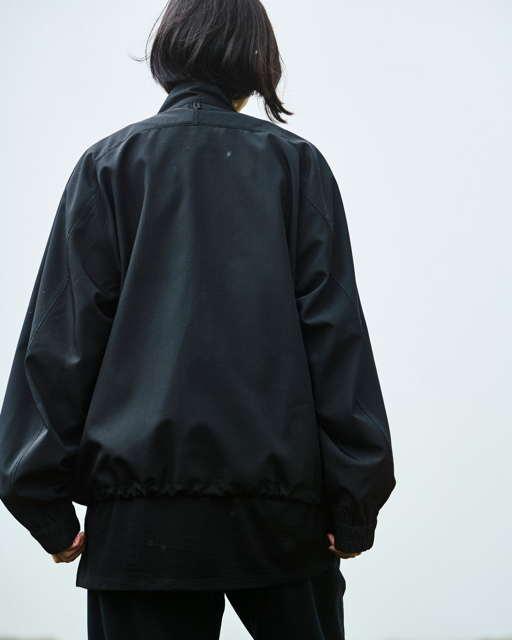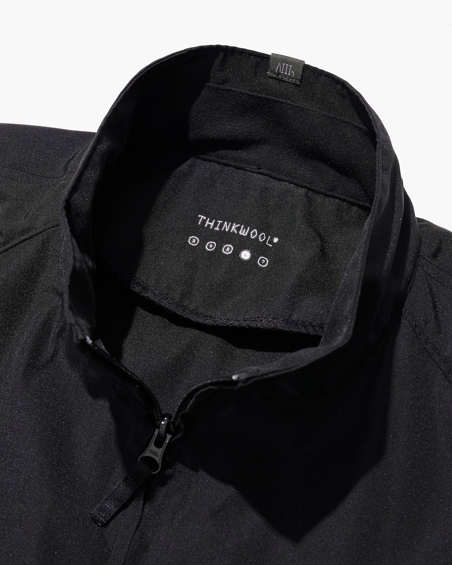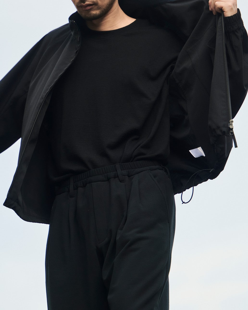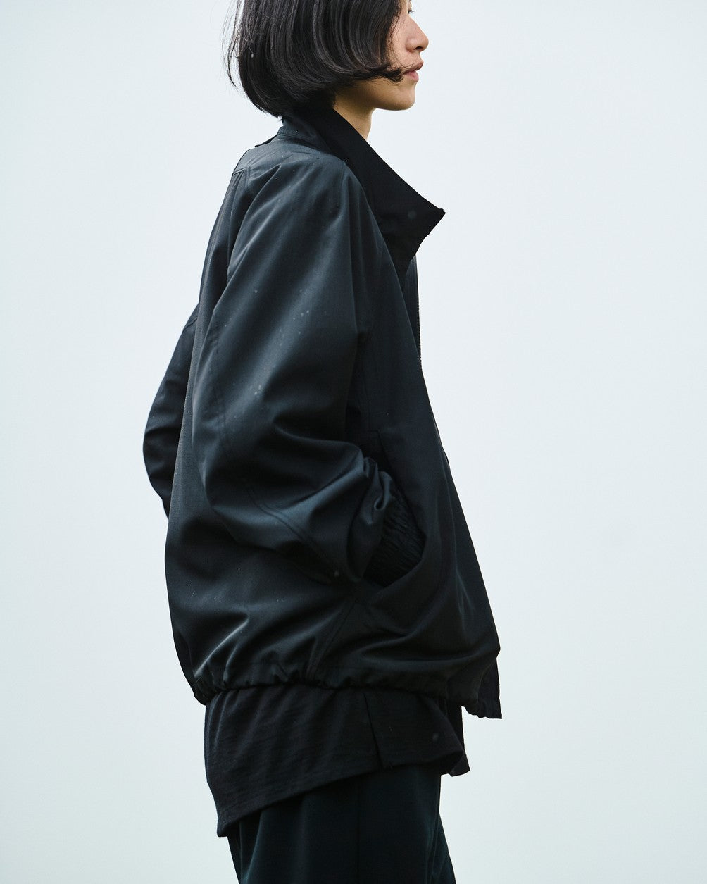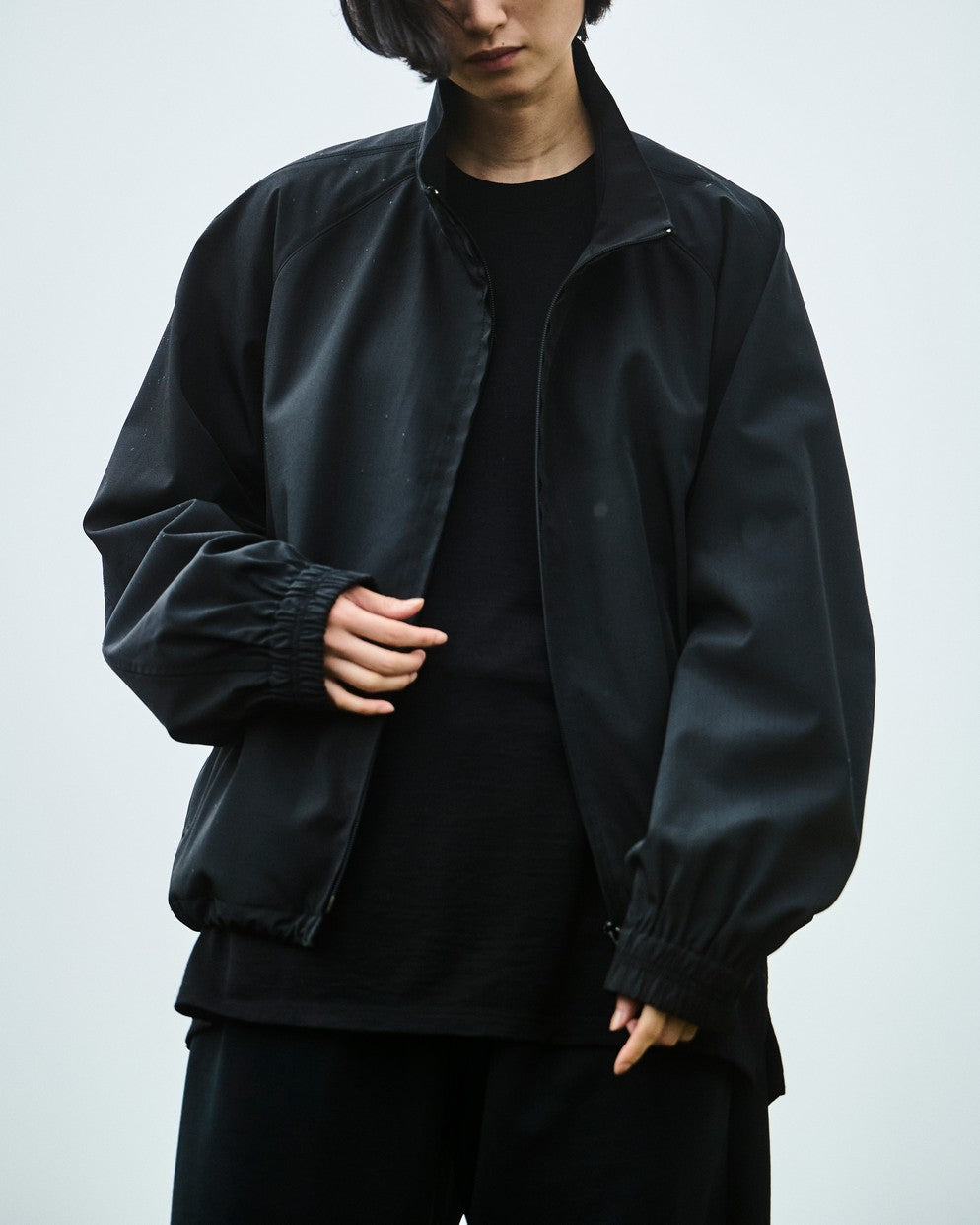 天然繊維のウールと最先端の合成繊維をブレンドしたファブリックを採用するスタンドカラージャケット。