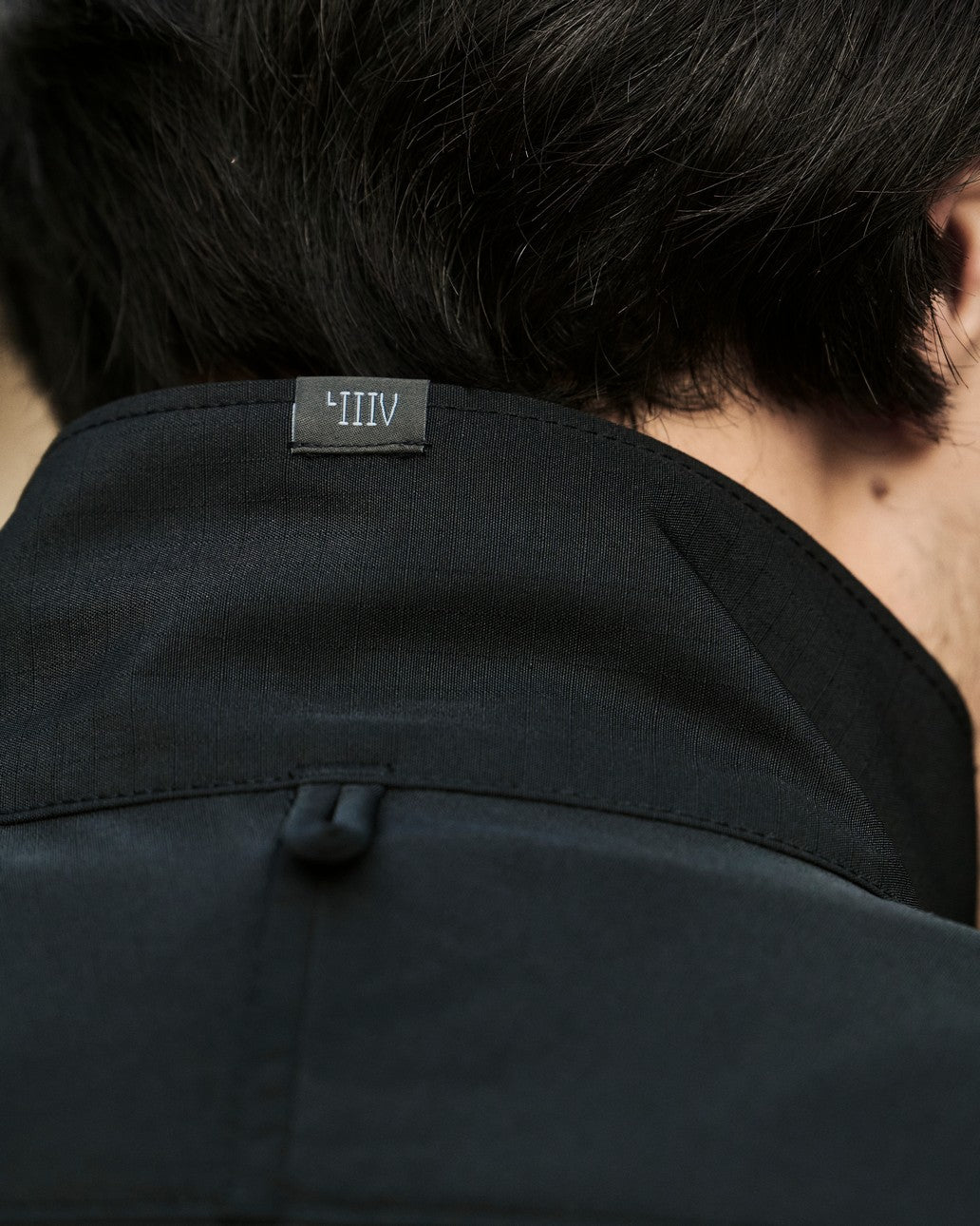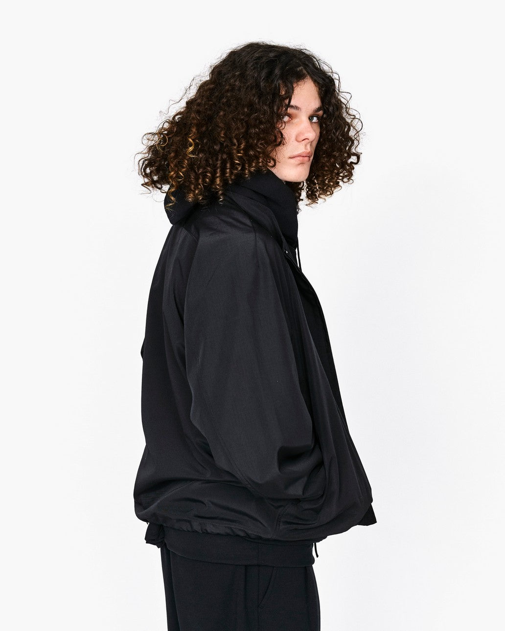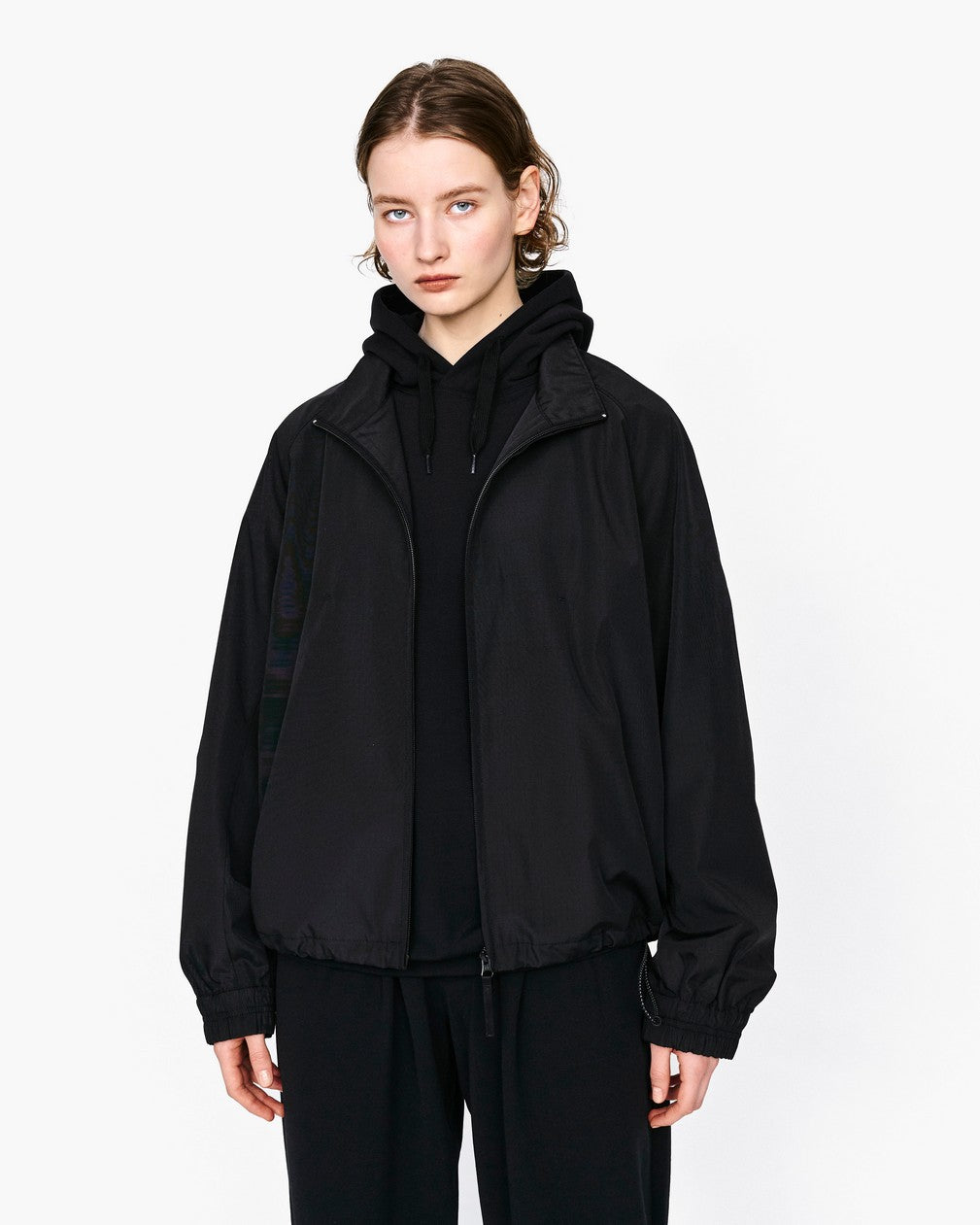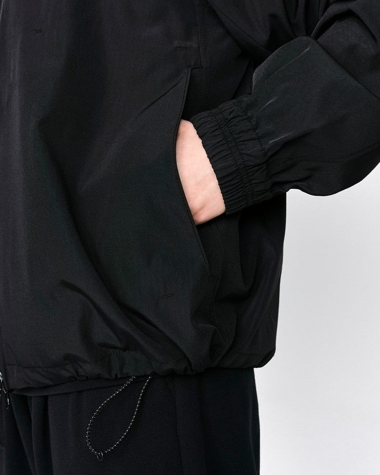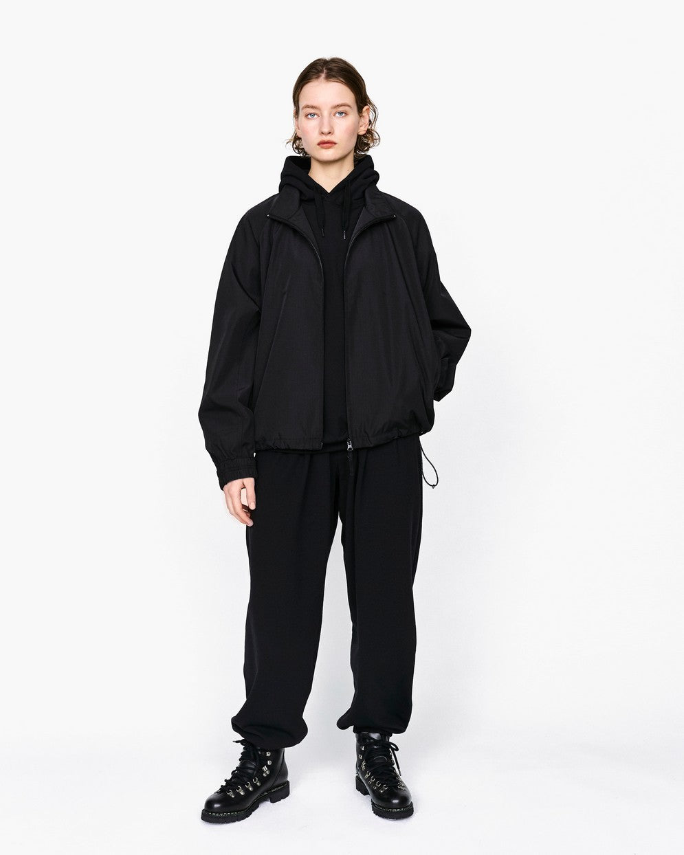 天然繊維のウールと最先端の合成繊維をブレンドしたファブリックを採用するスタンドカラージャケット。