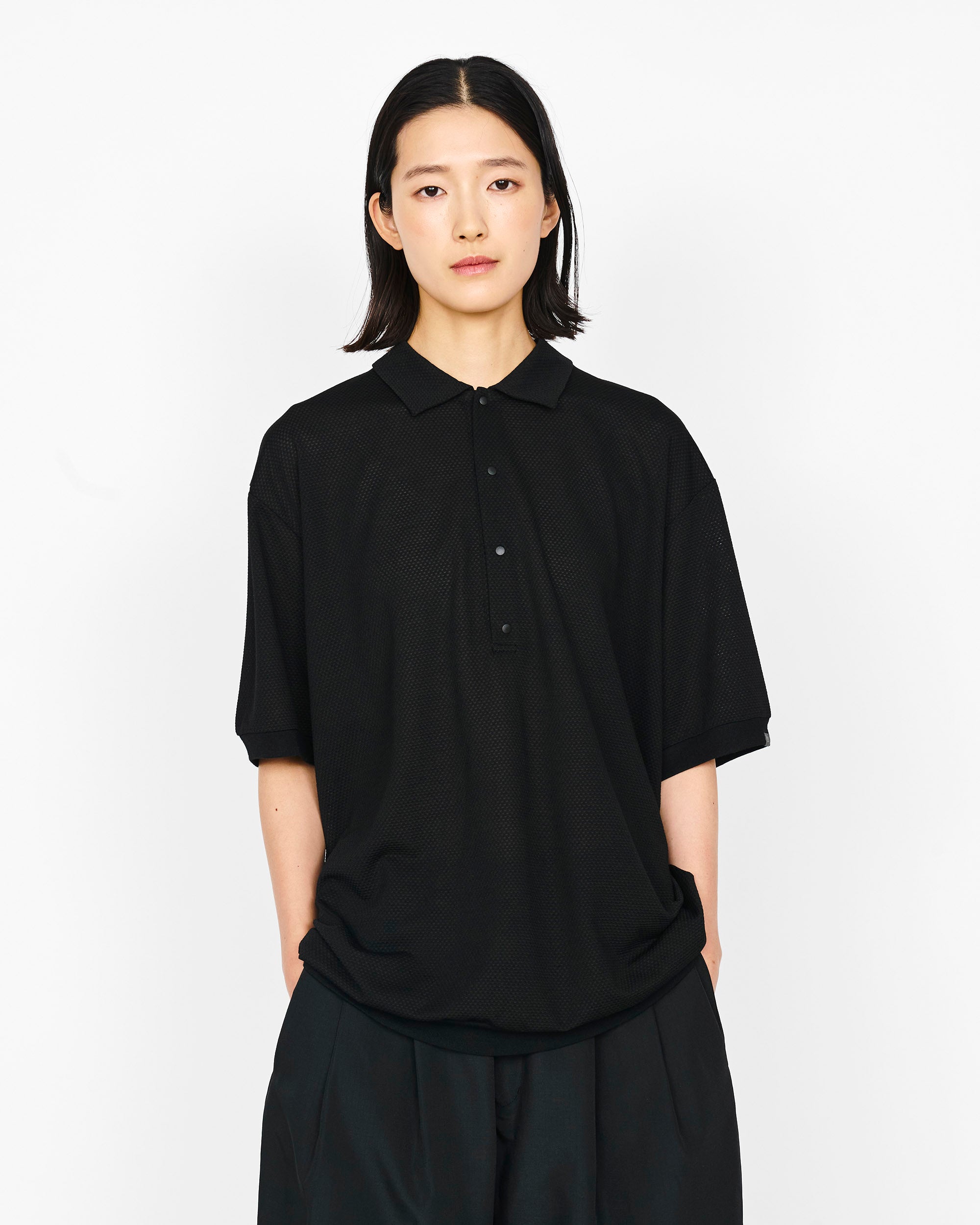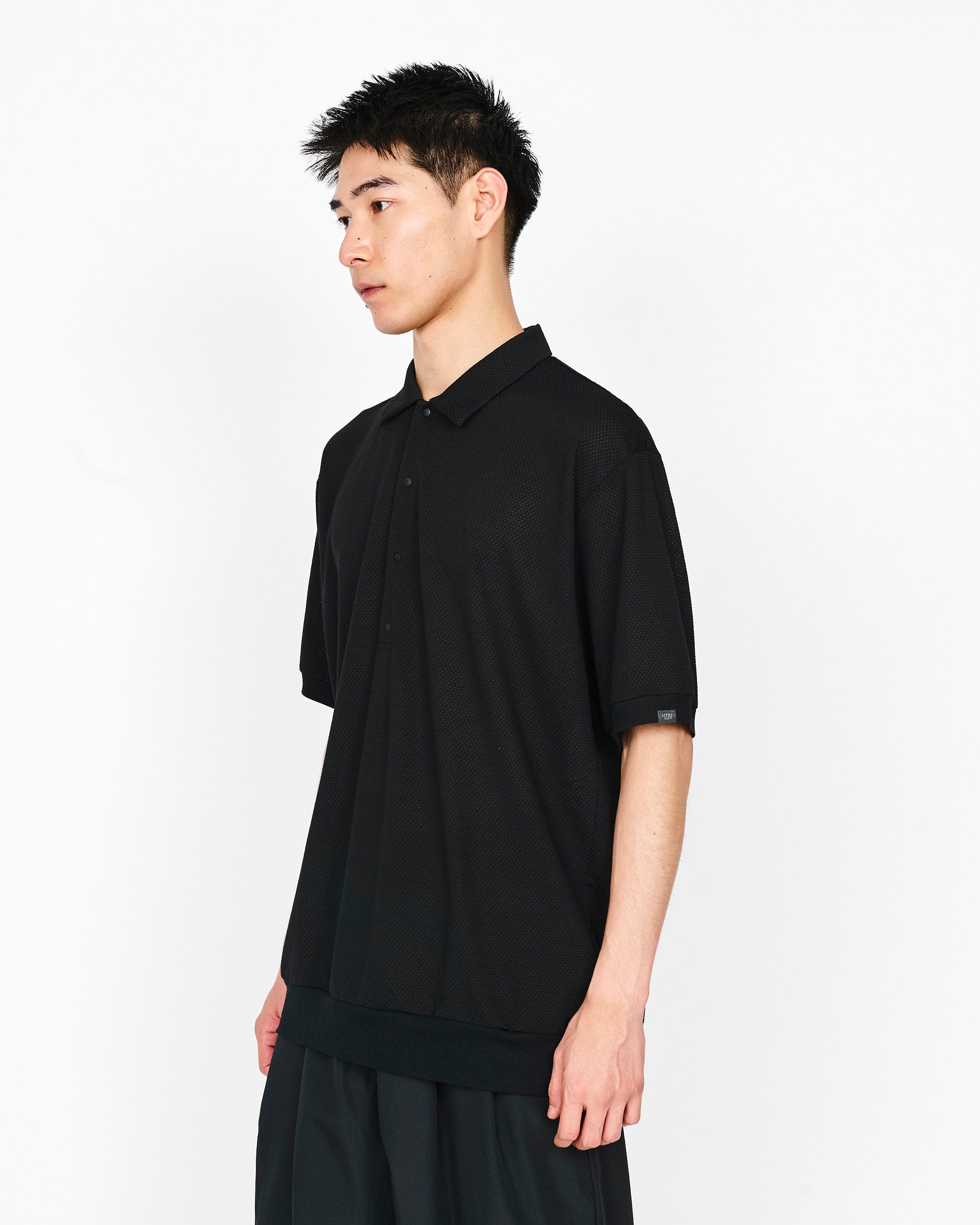 天然繊維のウールと最先端の合成繊維をブレンドしたメッシュファブリックを採用するポロシャツ。