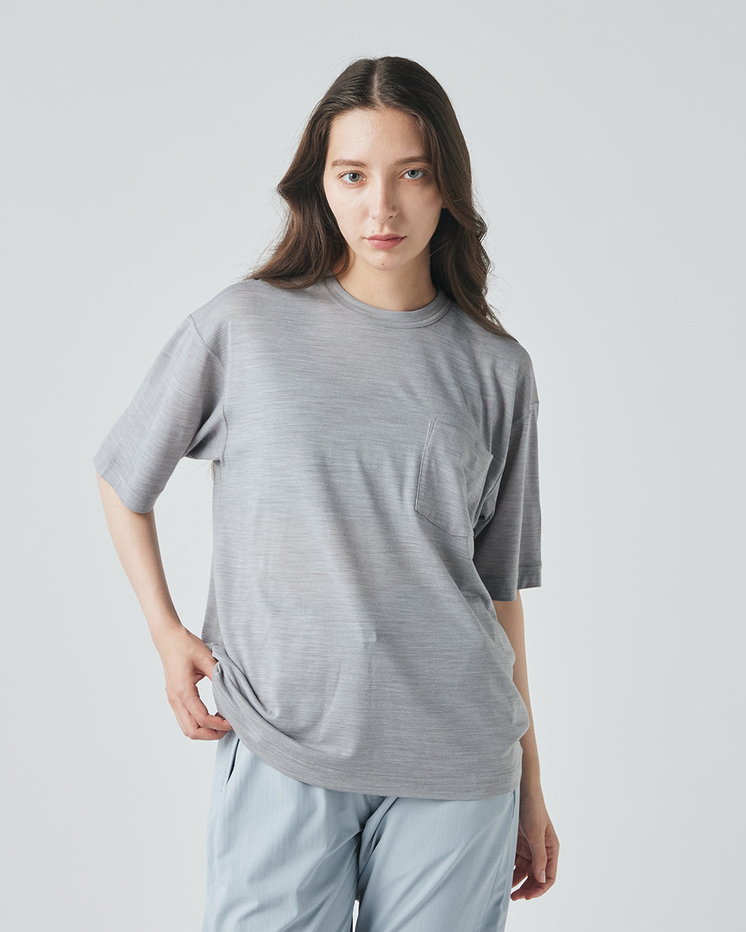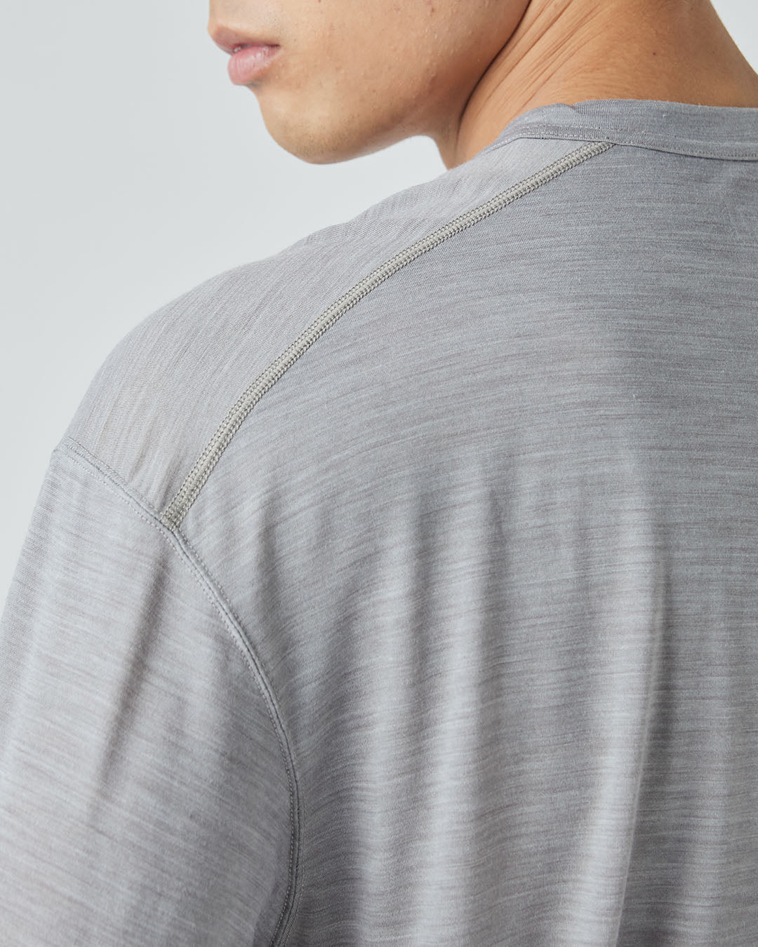 [sn]定番素材のメリノーウール50%・ポリエステル50%の混紡生地を使用したTシャツは、普段使いから、ハードなトレーニングまで通年着用しやすいライトウェイト(140g/㎡)。