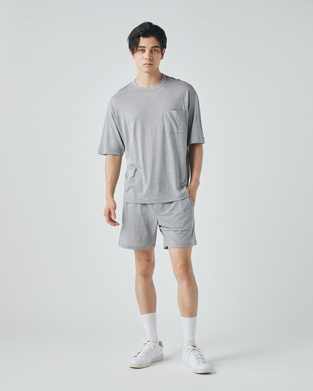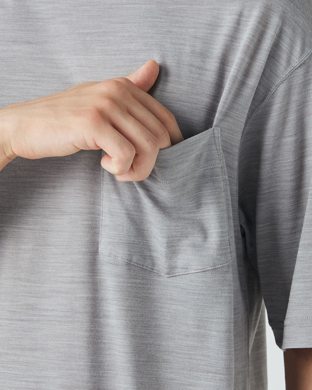リラックス感のあるゆったりとしたフィット、ドロップショルダー、胸元のポケットは、毎日着たくなる抜け感あるデザインです。