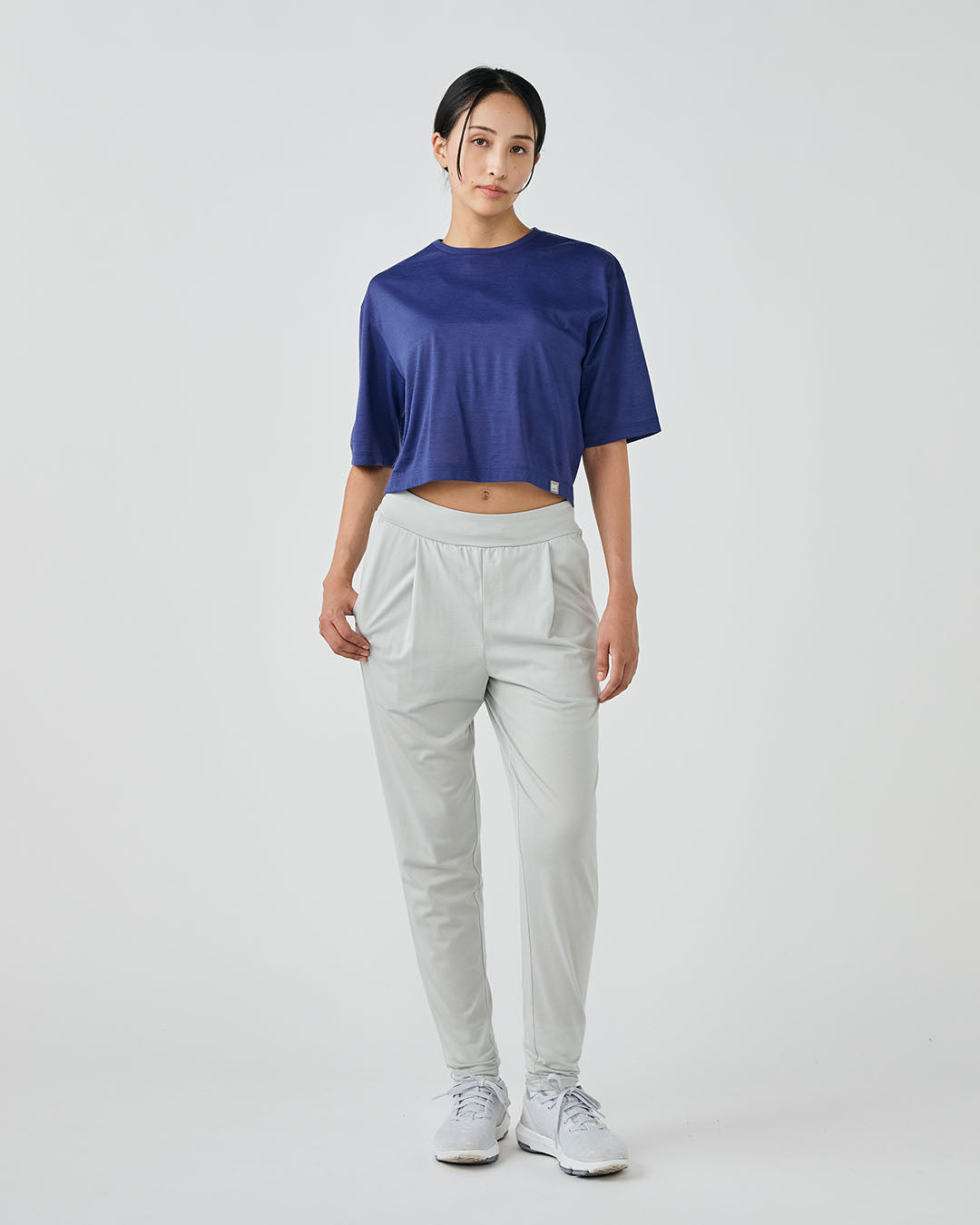 デザインは、タイツとパンツの中間のような程よいゆとりが魅力のテーパードシルエット。
