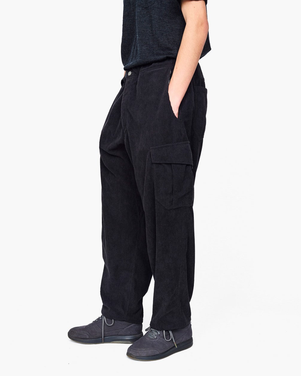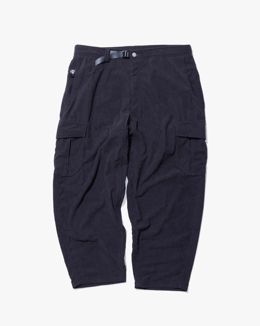 ポリエステルコーデュロイをカーゴパンツのスタイルに仕上げています。