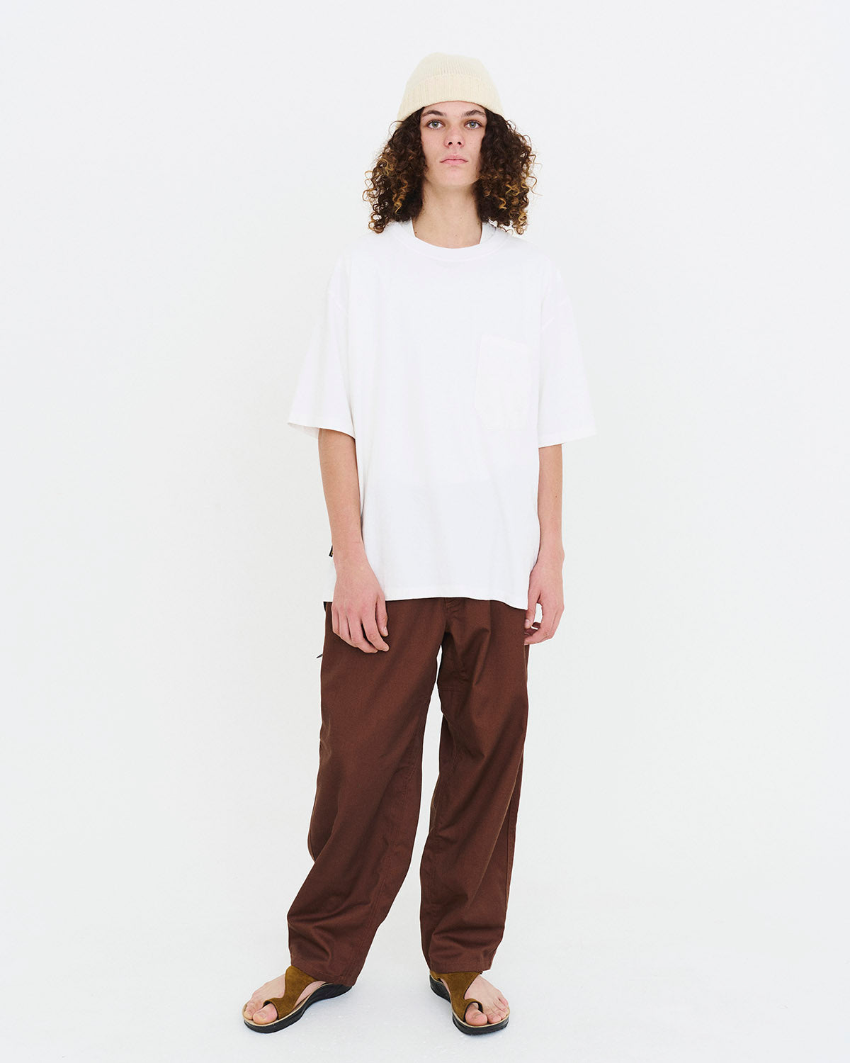ストーンマスター独自のポケット収納システムであるフロントのウェビングコードや、ROKXにはないルーズなシルエットが特徴。