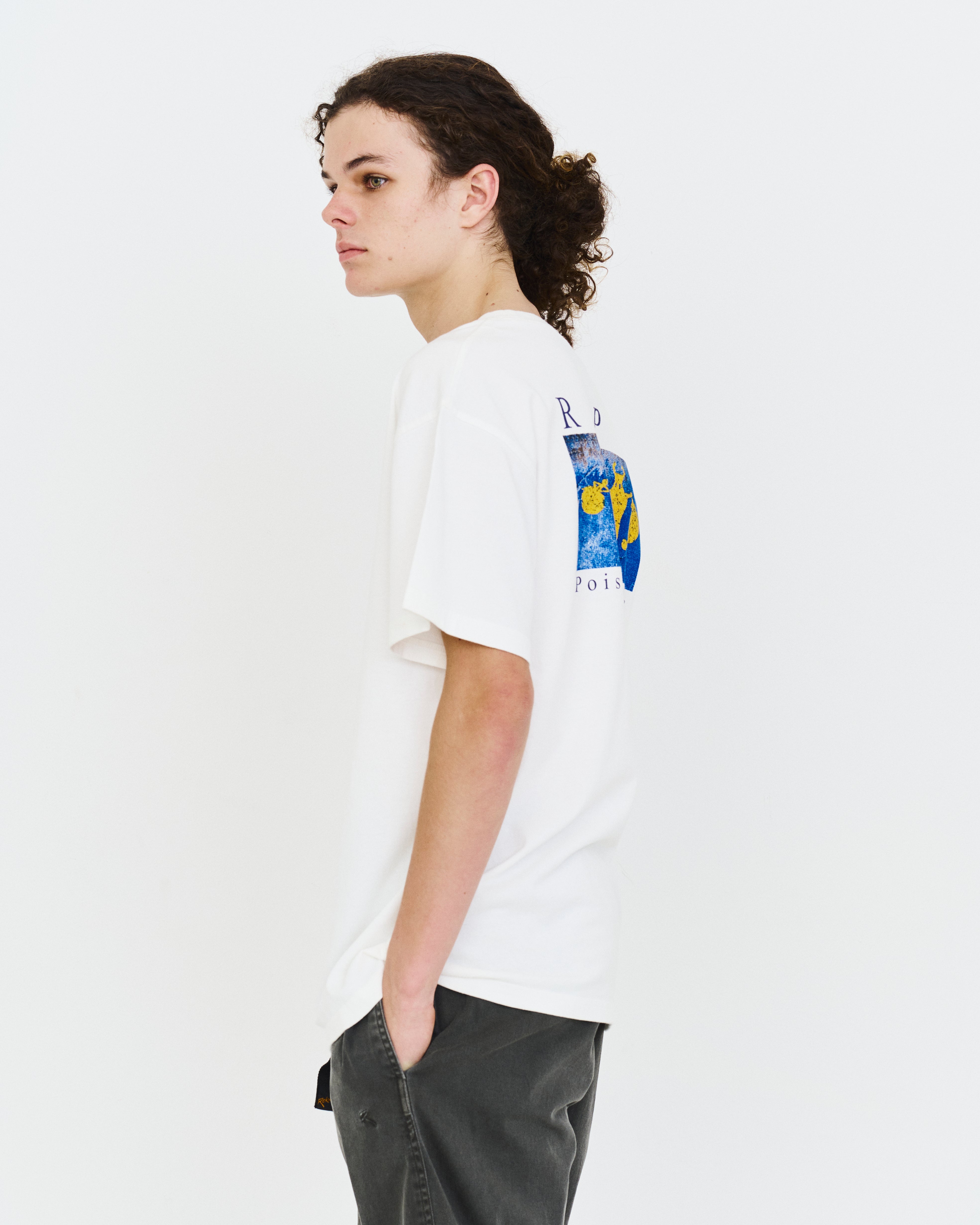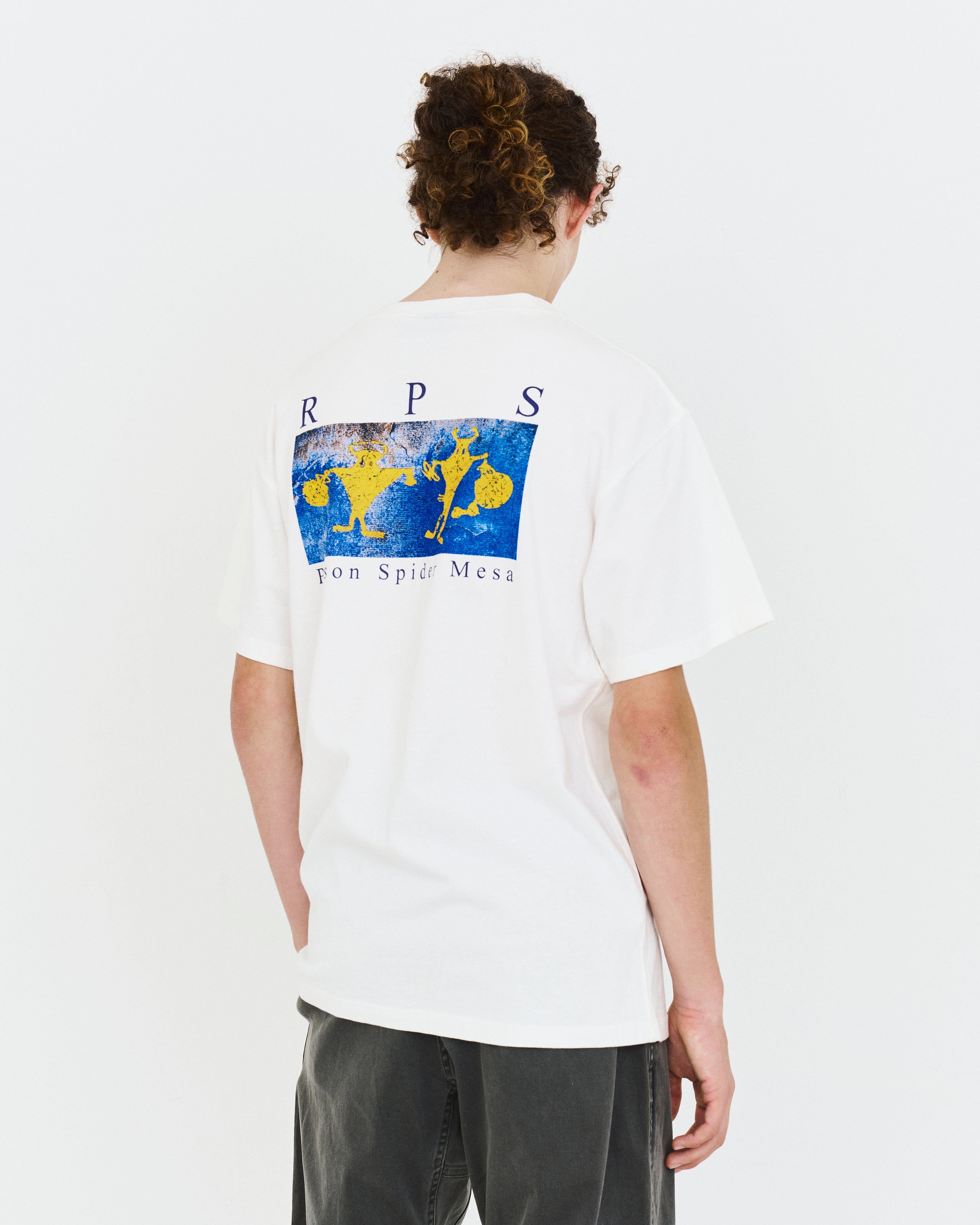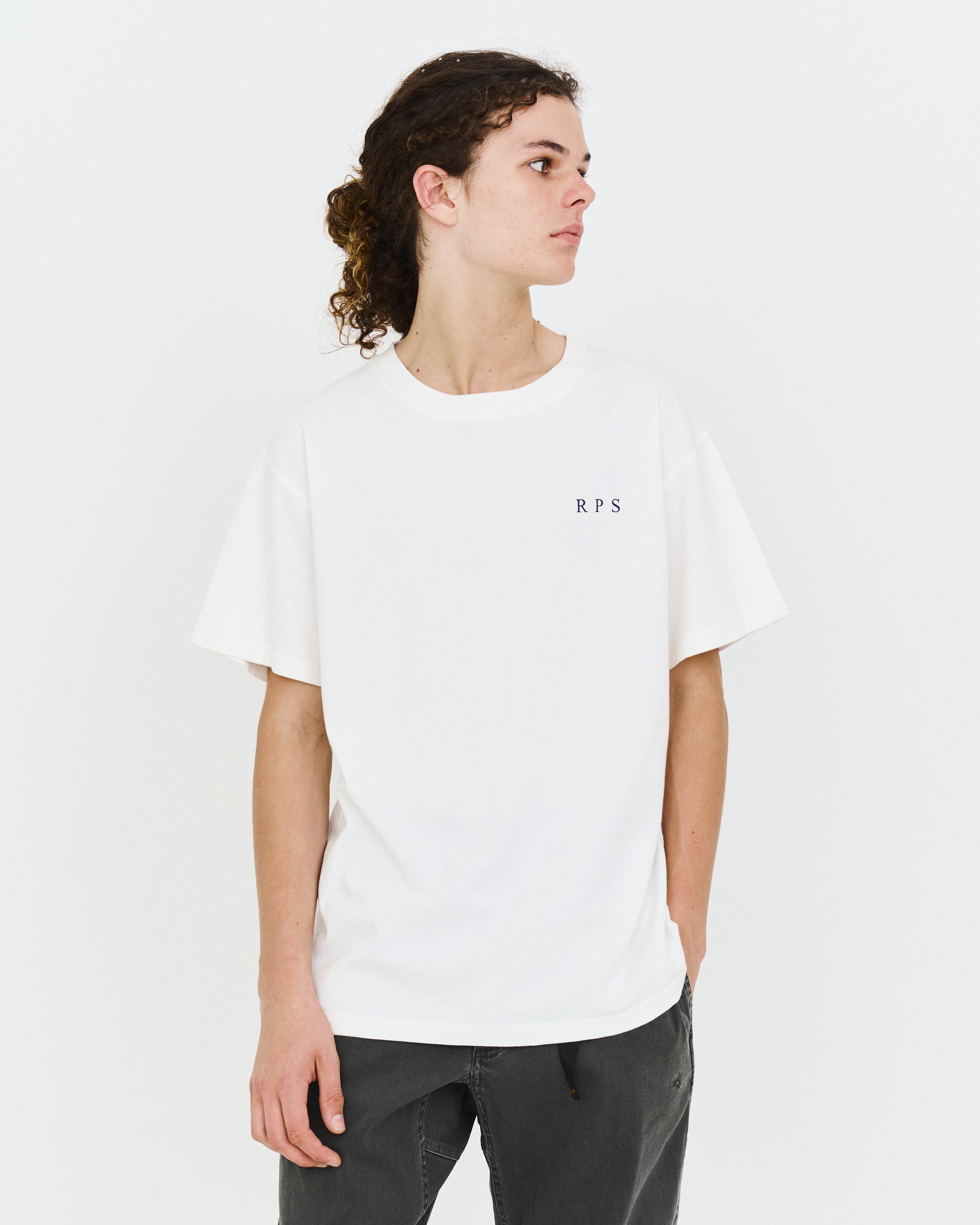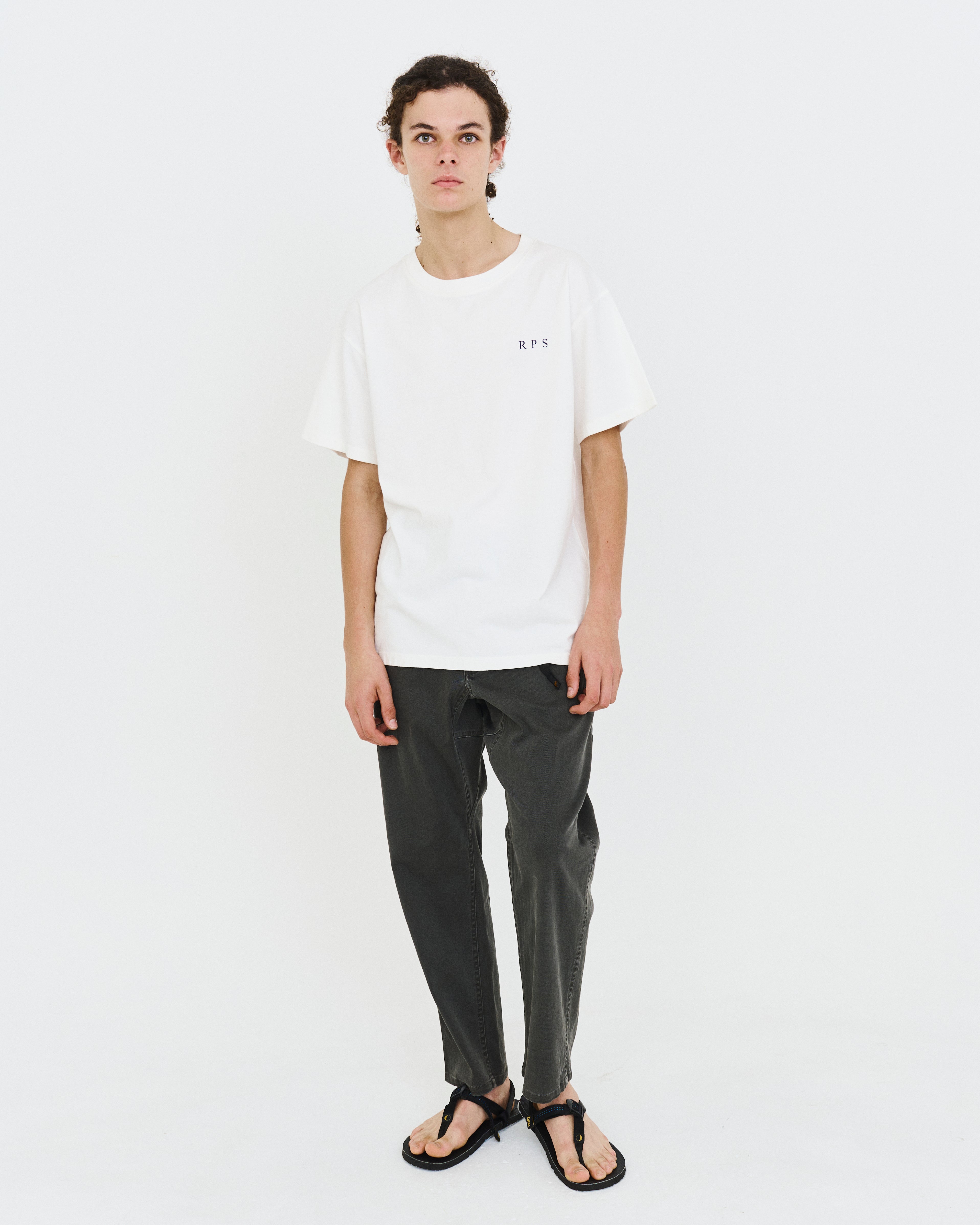 リサイクルマテリアルとしてのコットンを採用し、背面にはマイク・グラハムがこよなく愛する、古代の壁画をプリント。ビンテージな風合いのピグメントダイ加工が施され、左胸には「RPS」のマーキング。シンプルながら味わい深い質感とカラーを楽しめます。