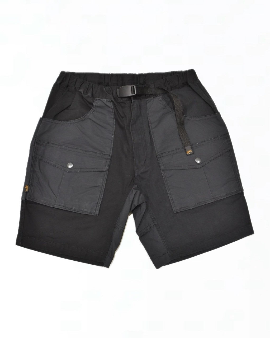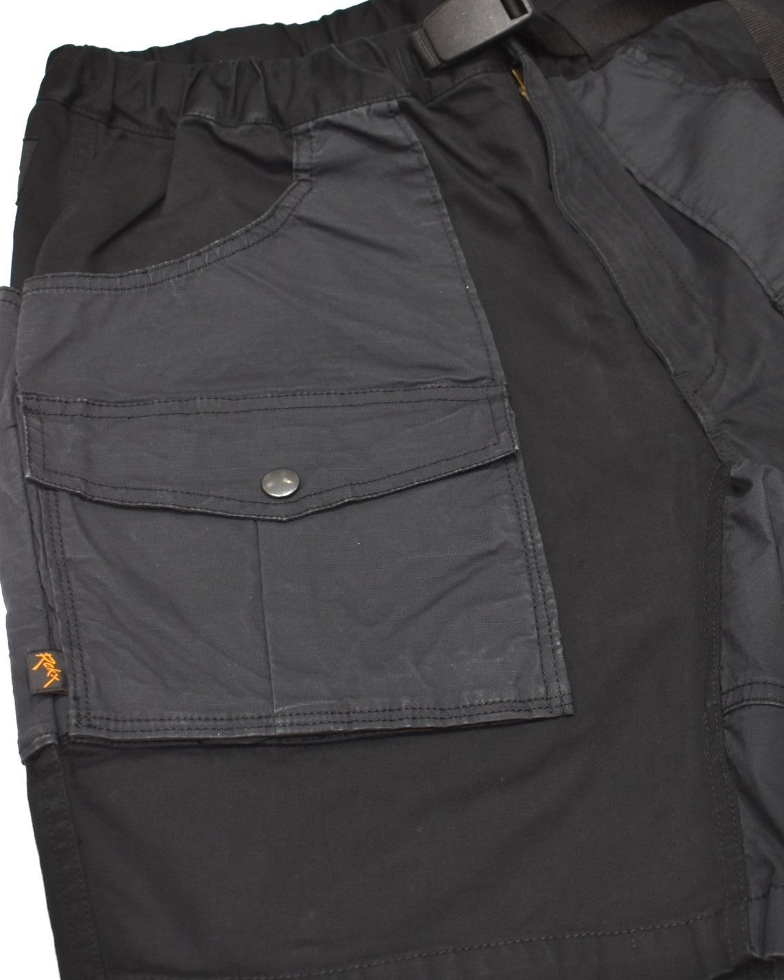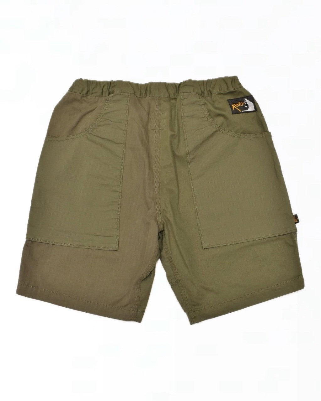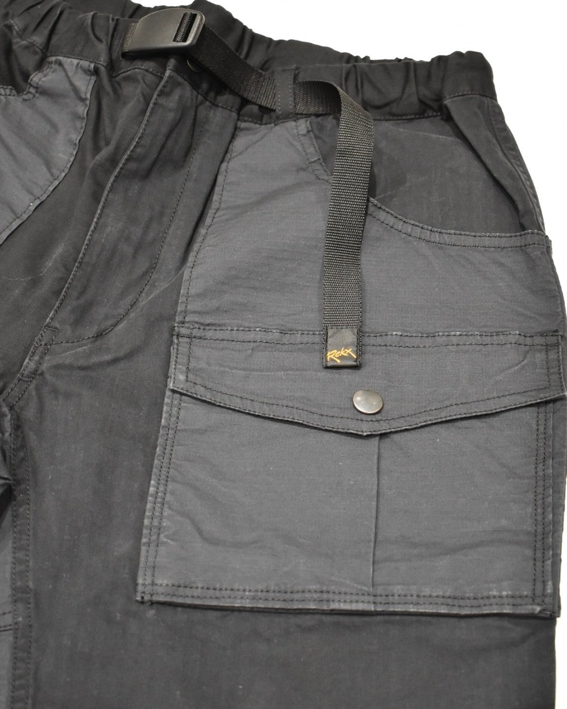 前面部分に備えられたマチ付きのポケットにはフラップがつき、いろんなツールを収納可能。加えてROKXならではの片手で操作可能なウェビングベルトや、足の自由な動きをサポートする股下のガゼットクロッチを搭載、どんなフィールドにも繰り出せるショート パンツ。