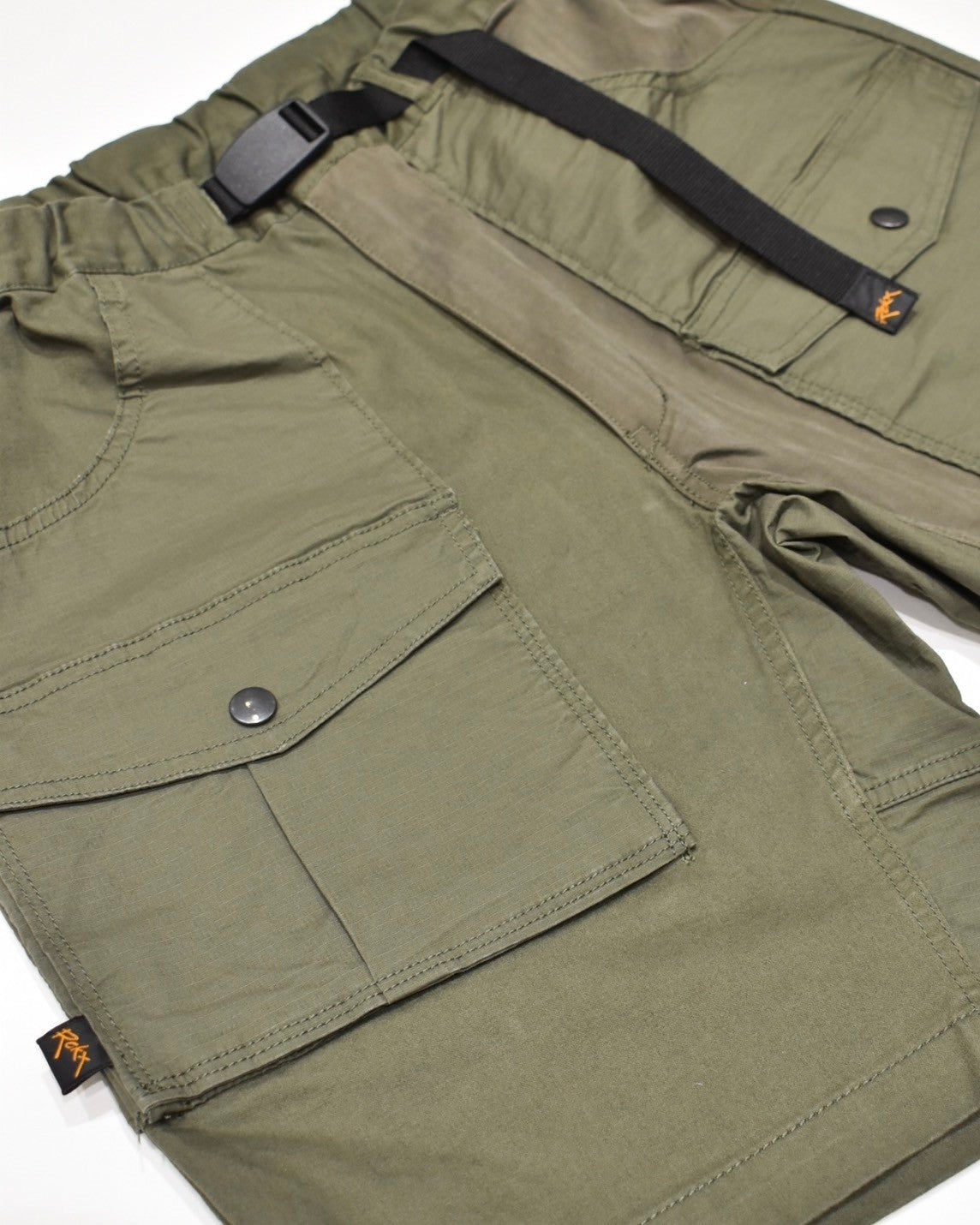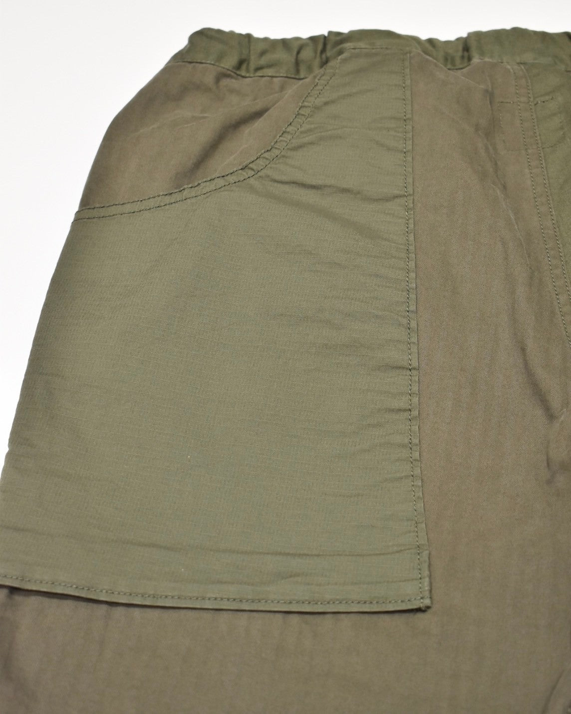 ・異素材のコットンを組み合わせスタイリッシュにミリタリーアレンジしたカーゴショーツ