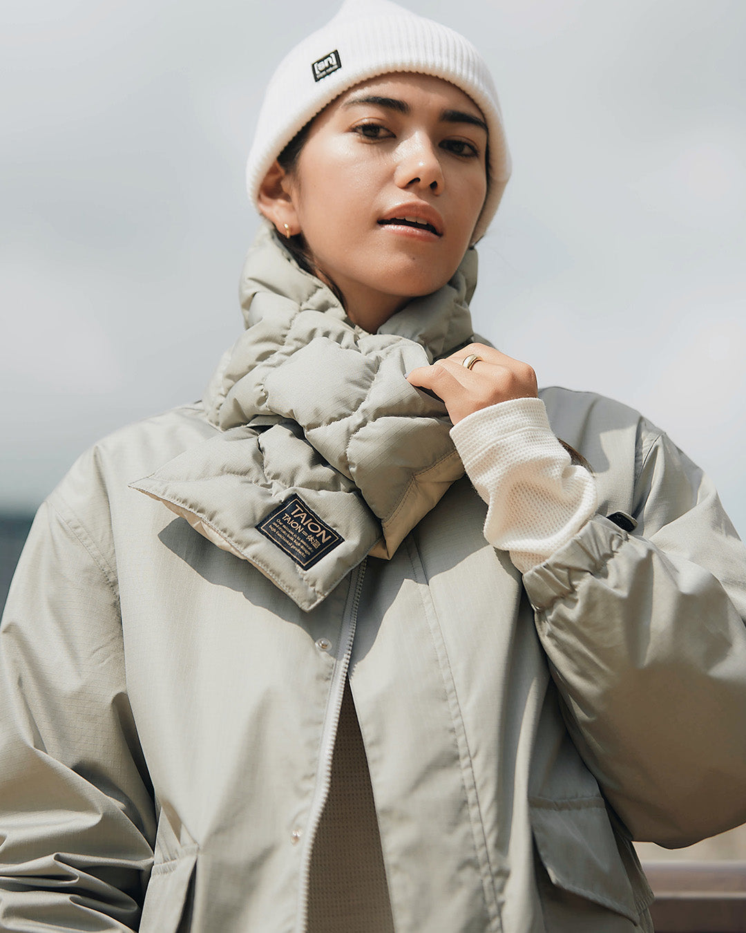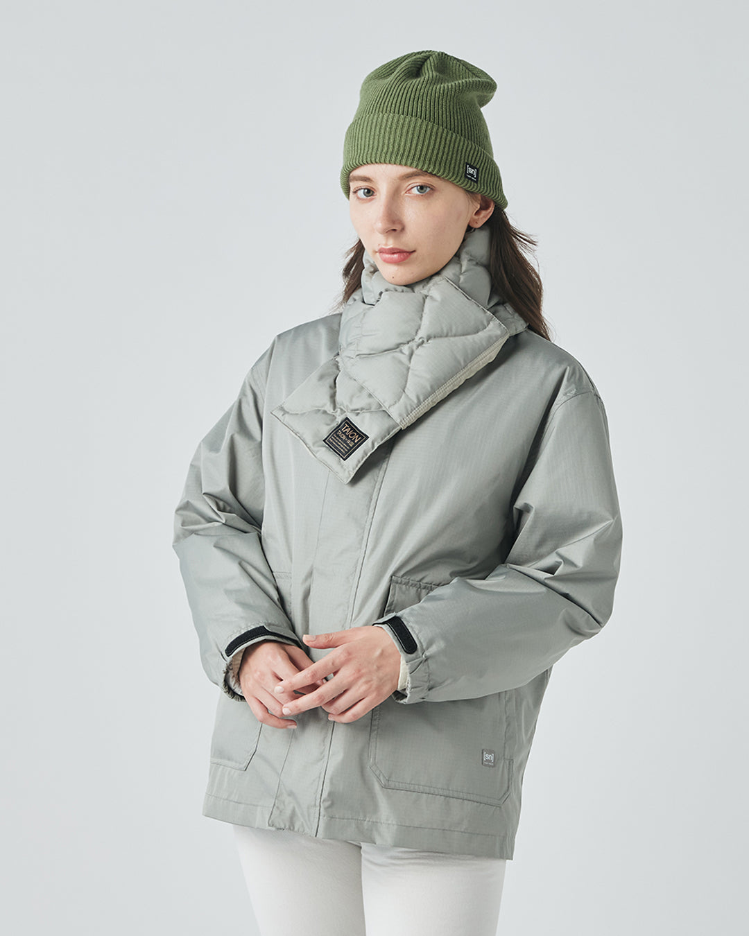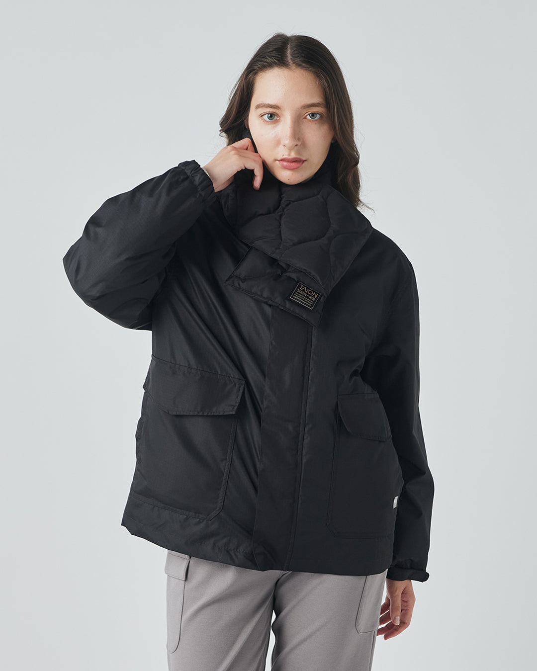 秋から春まで、気温やスタイルに合わせて4通りの着こなしが楽しめる、TAIONとのコラボレーションアウター。