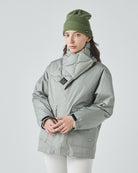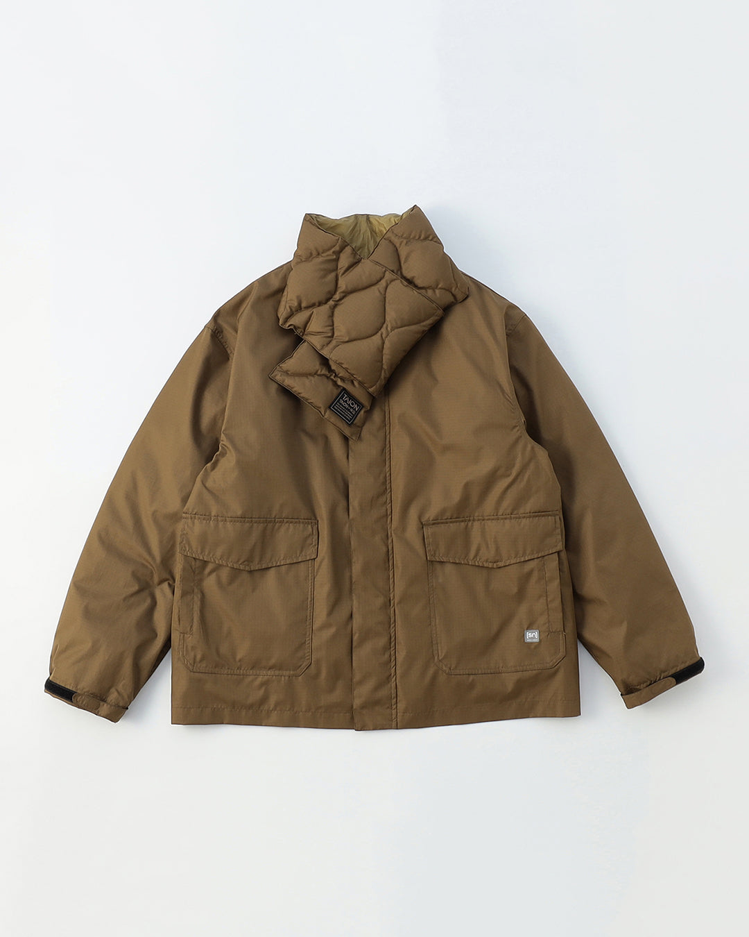 ポリエステルリップストップのシェルジャケットと、取り外し可能なインナーダウン&ダウンマフラーのセットです。