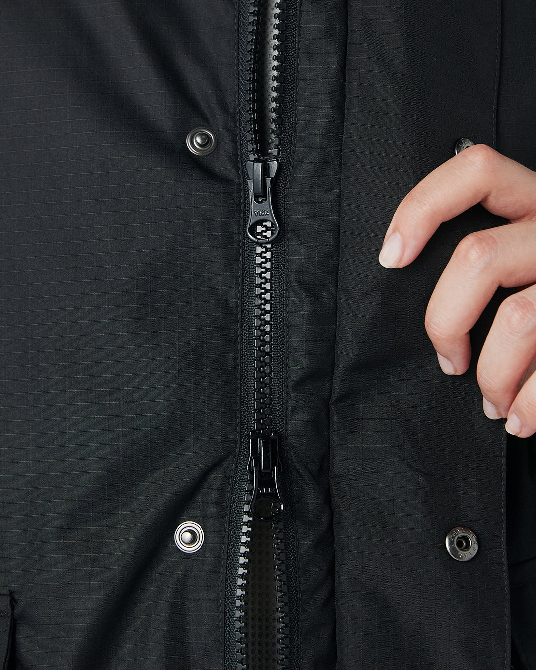 ダブルジップは、蒸れを防ぐだけでなく、着こなしの幅を広げてくれます。
