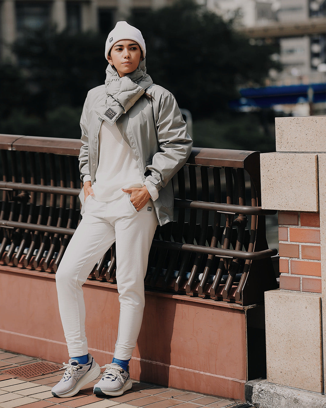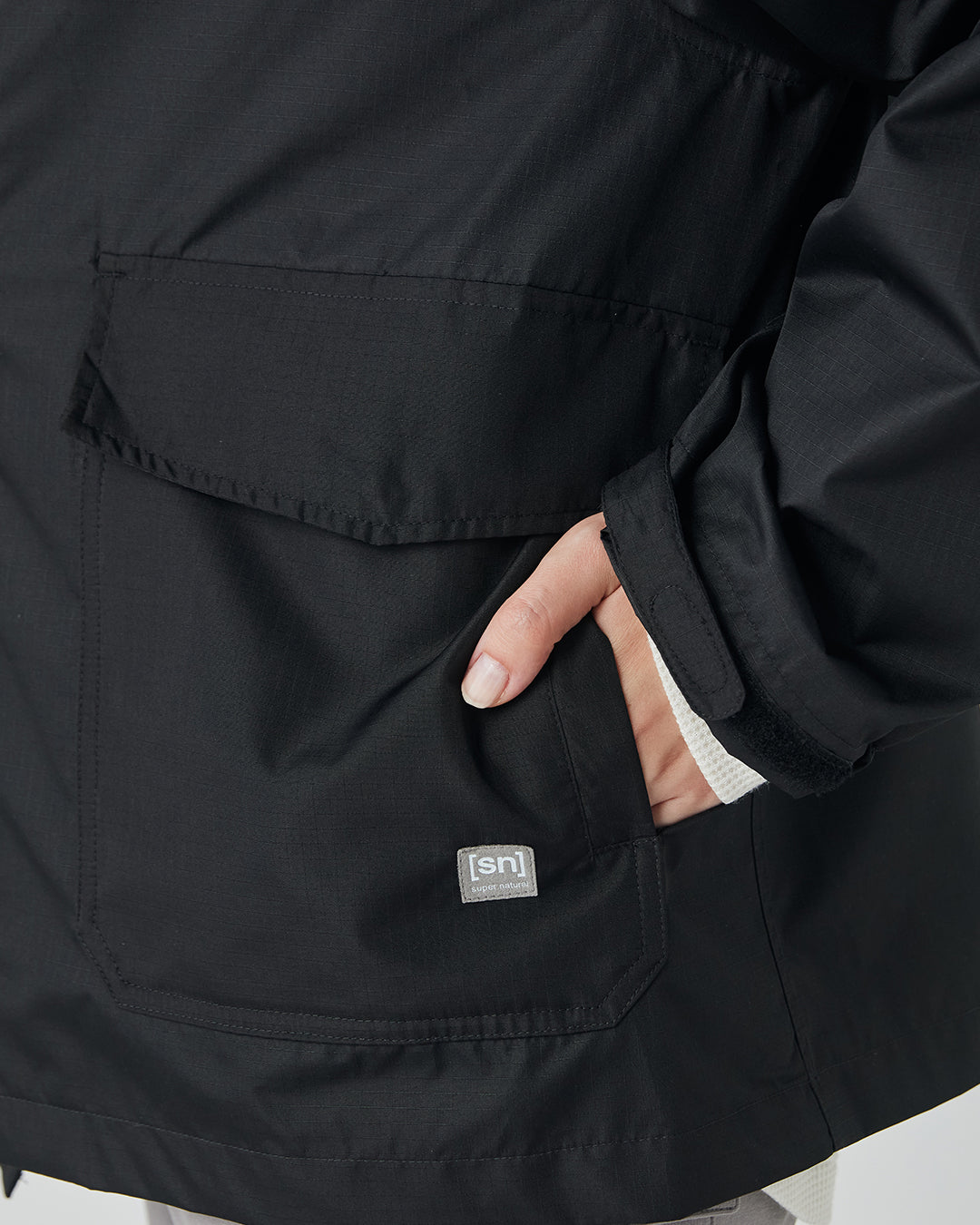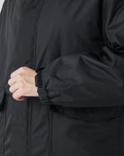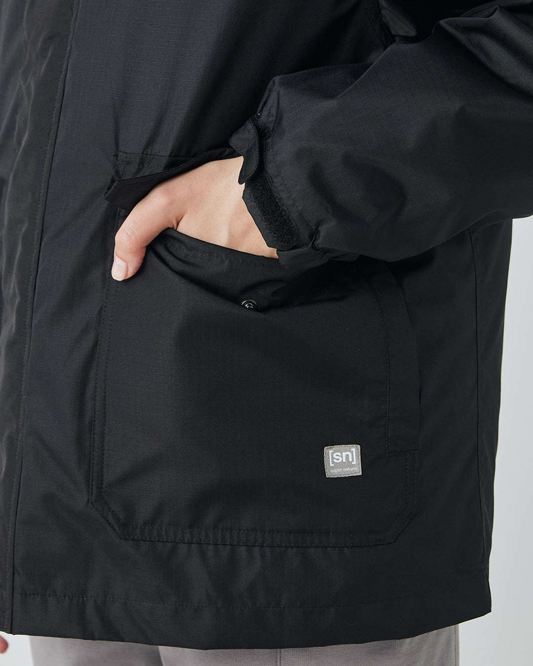 スマートフォンがすっぽり収まるサイズのハンドウォーマー付きポケットや、下から開閉できるダブルジップ仕様など、日常の使いやすさを考えた機能が満載です。