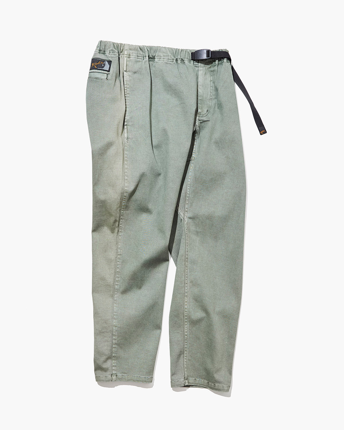 元々は伝統的なクラミング・シーンで穿かれていたパンツをベースとし、厚手の100%コットンツイル素材にピグメント・ダイ(顔料染め)が自然な色落ち感を演出。ROKXこだわりのカラーが楽しめ、より多様なライフスタイルにフィットします。