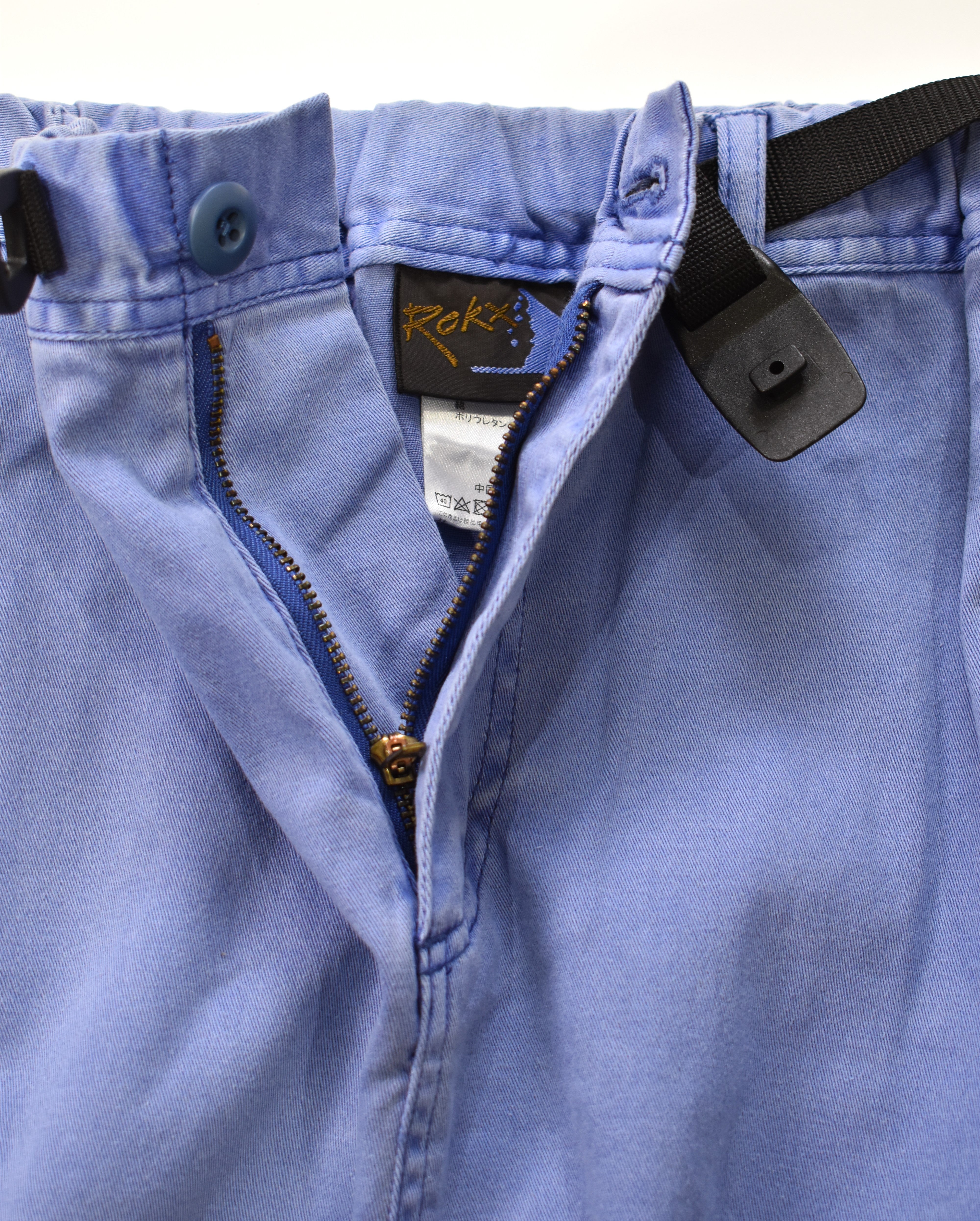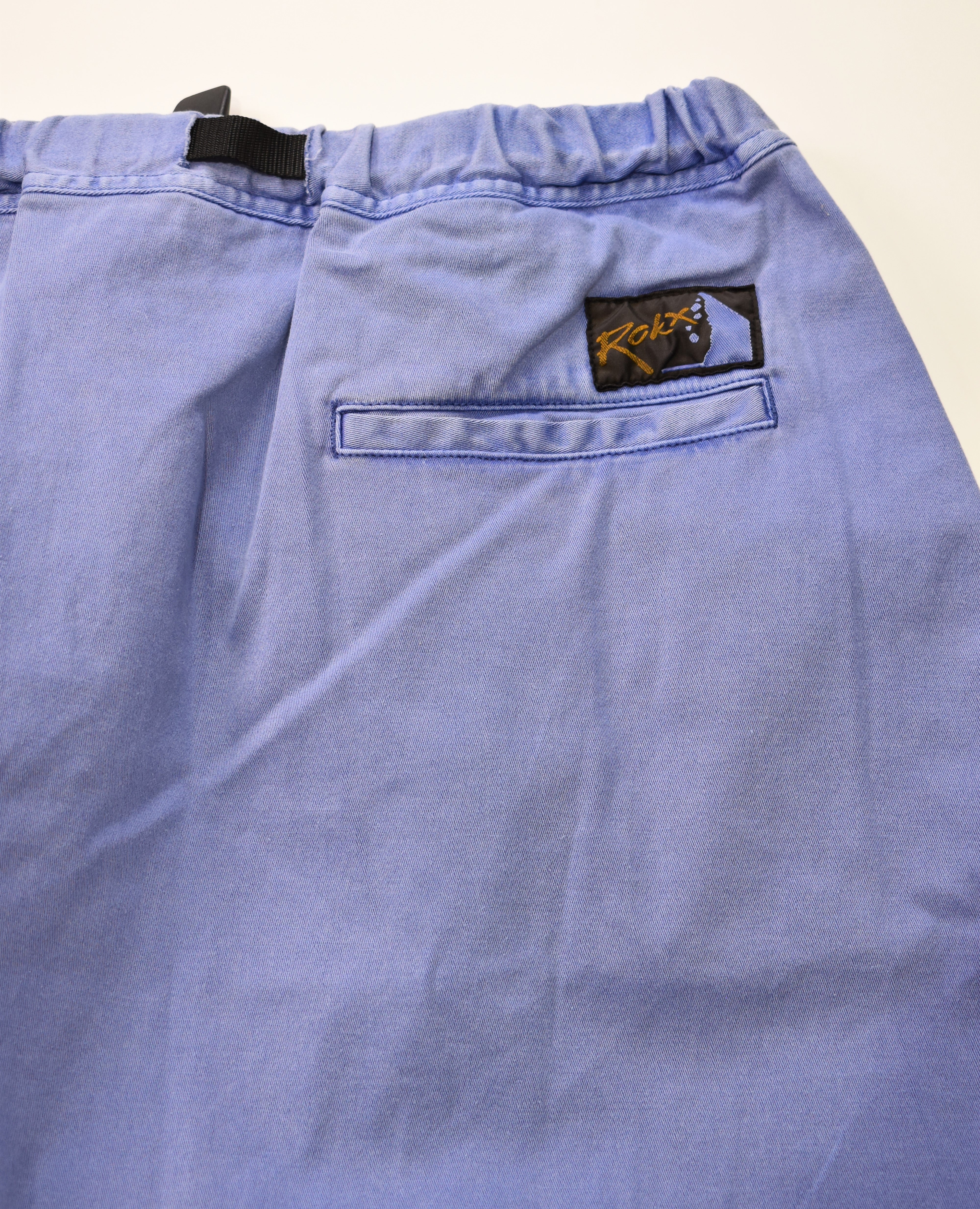 元々は伝統的なクラミング・シーンで穿かれていたパンツの素材、厚手の100%コットンツイル素材にピグメント・ダイ(顔料染め)が自然な色落ち感を演出。ROKXこだわりのカラーが楽しめ、より多様なライフスタイルにフィットします。