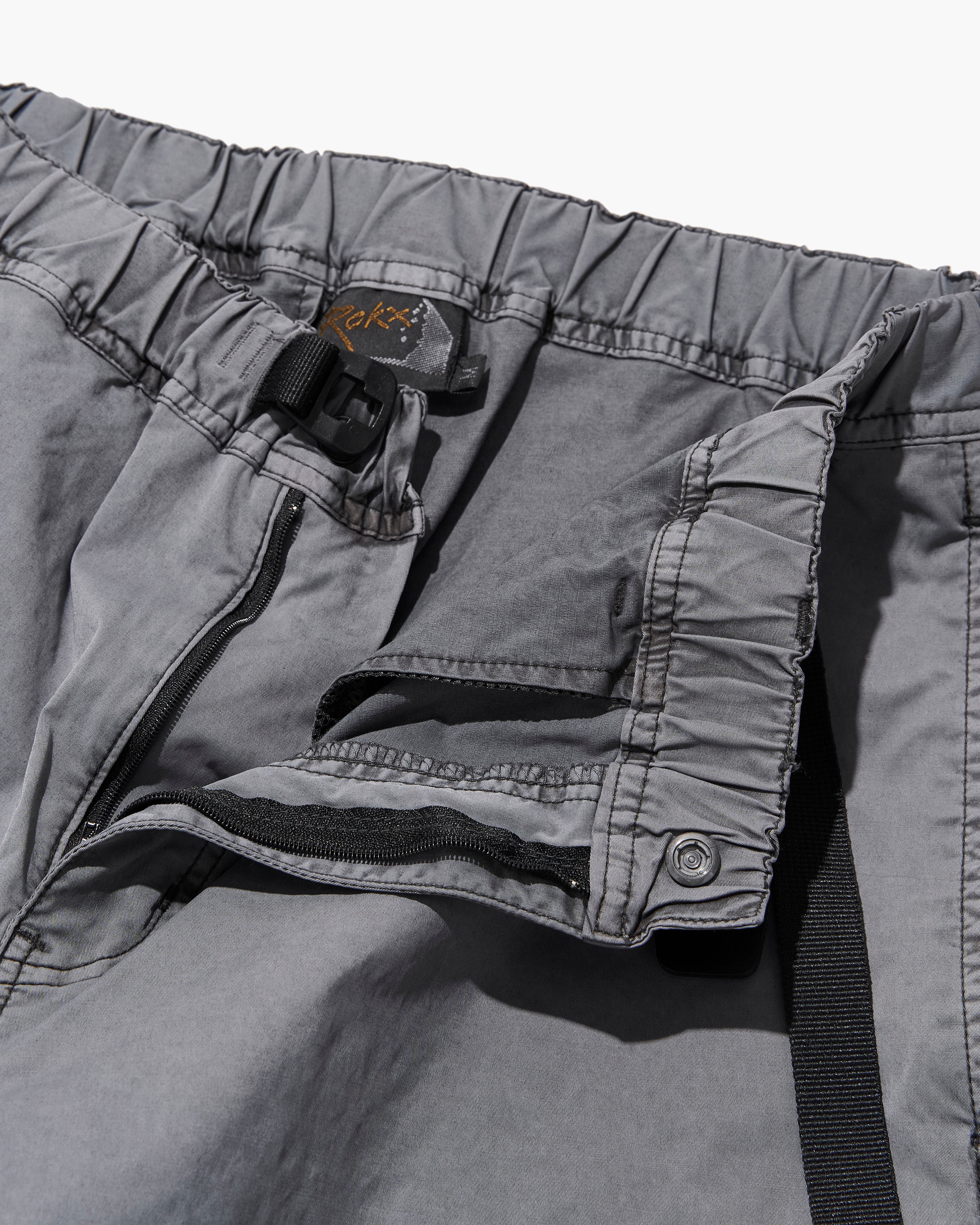 フロントはボタンとジッパーによる前開き仕様。セパレートタイプのウェビングベルトとウェストゴムは調節も容易で使い勝手抜群です。