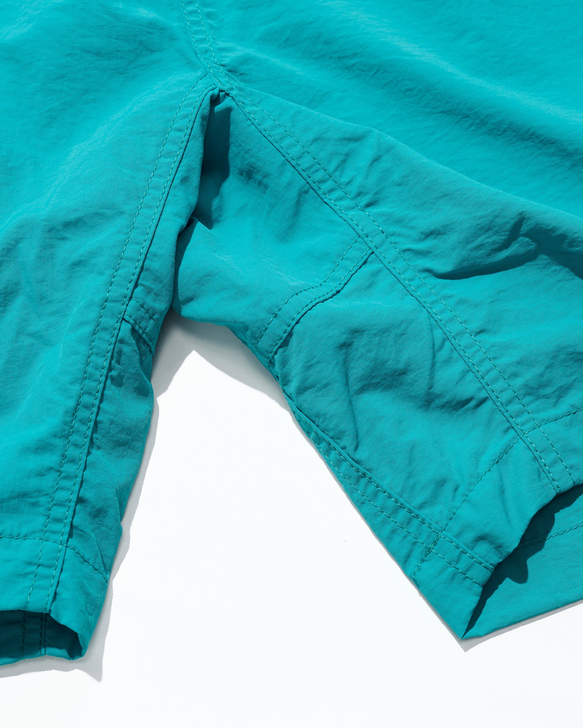・耐久撥水(DWR)加工の施されたナイロン素材のパッカブルのショートパンツ