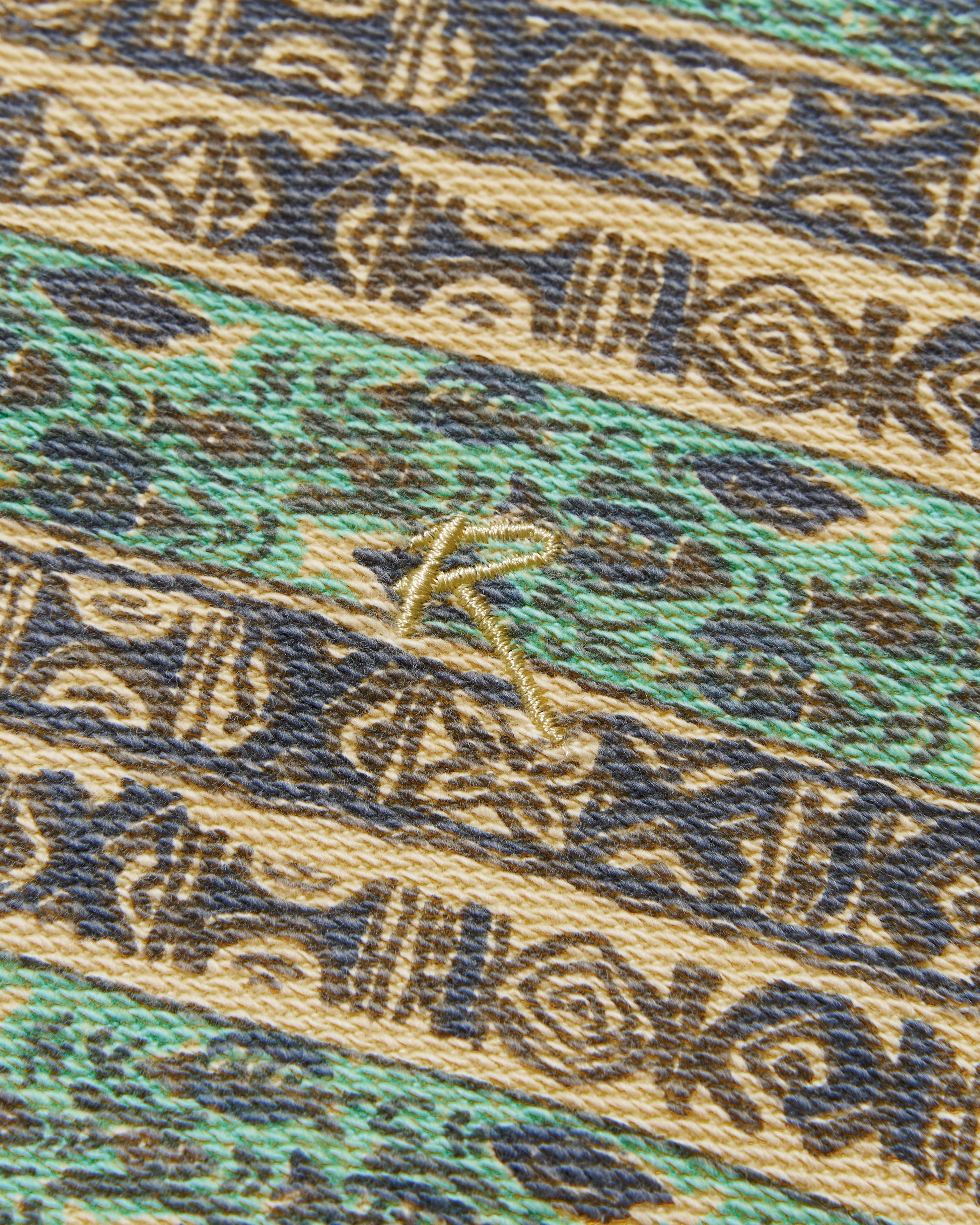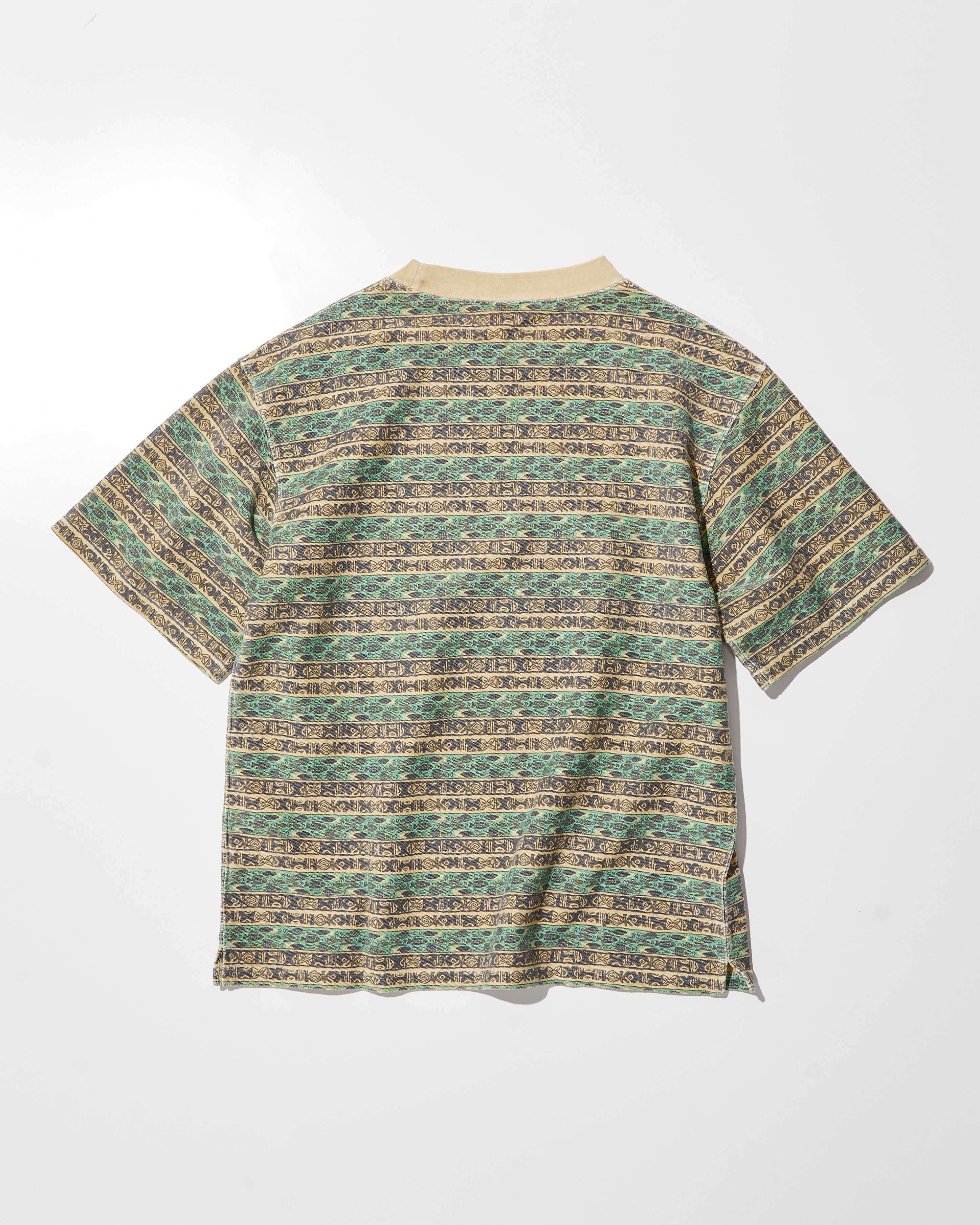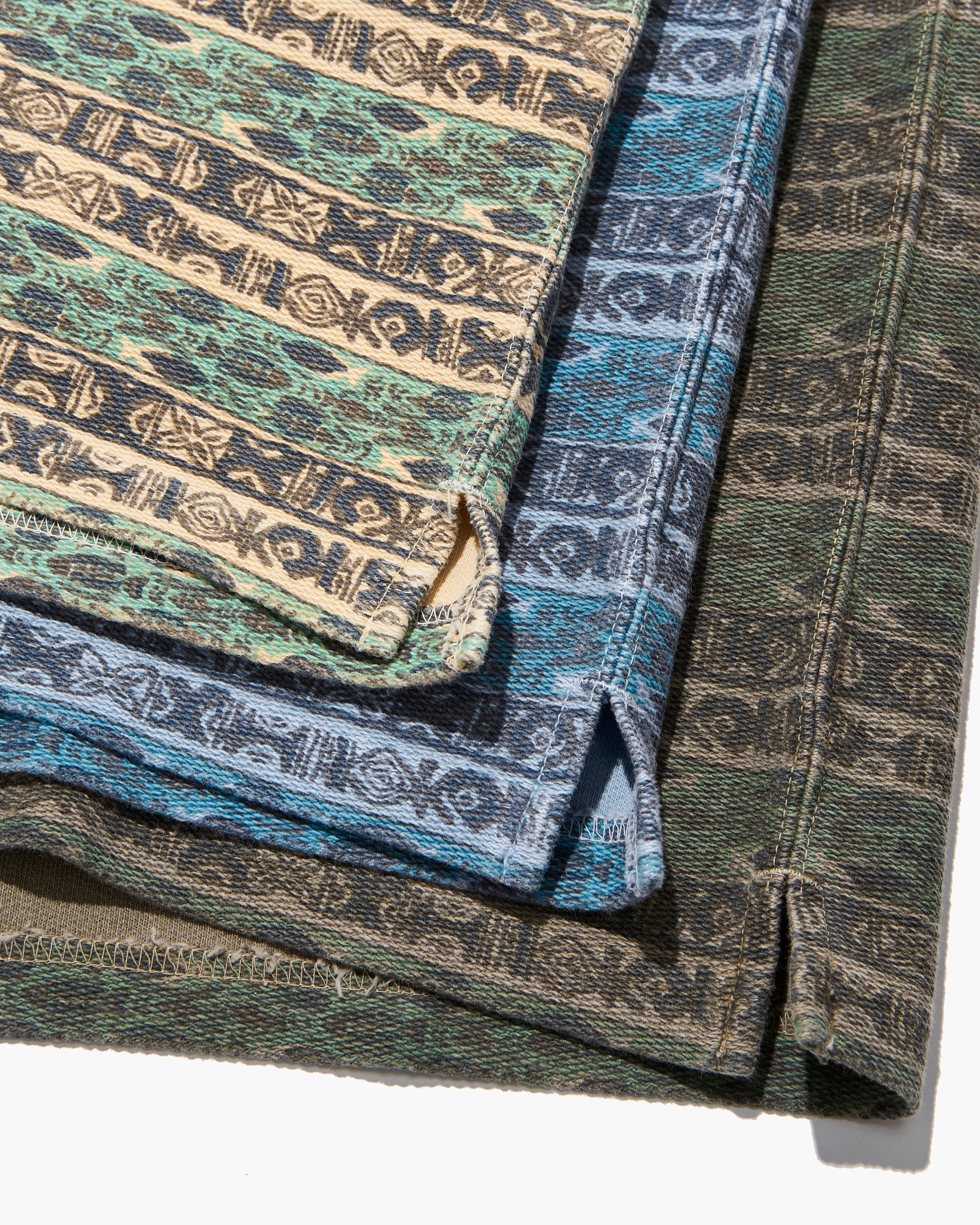 かつてマイク・グラハムが好んだフィジーの伝統的な柄からインスパイアされたグラフィックをプリント。ユニークなニュアンスに仕上がっております。洗濯や経年によりエイジングが進み、風合いの出てくる素材は、長い間愛着を持って着用できるでしょう。