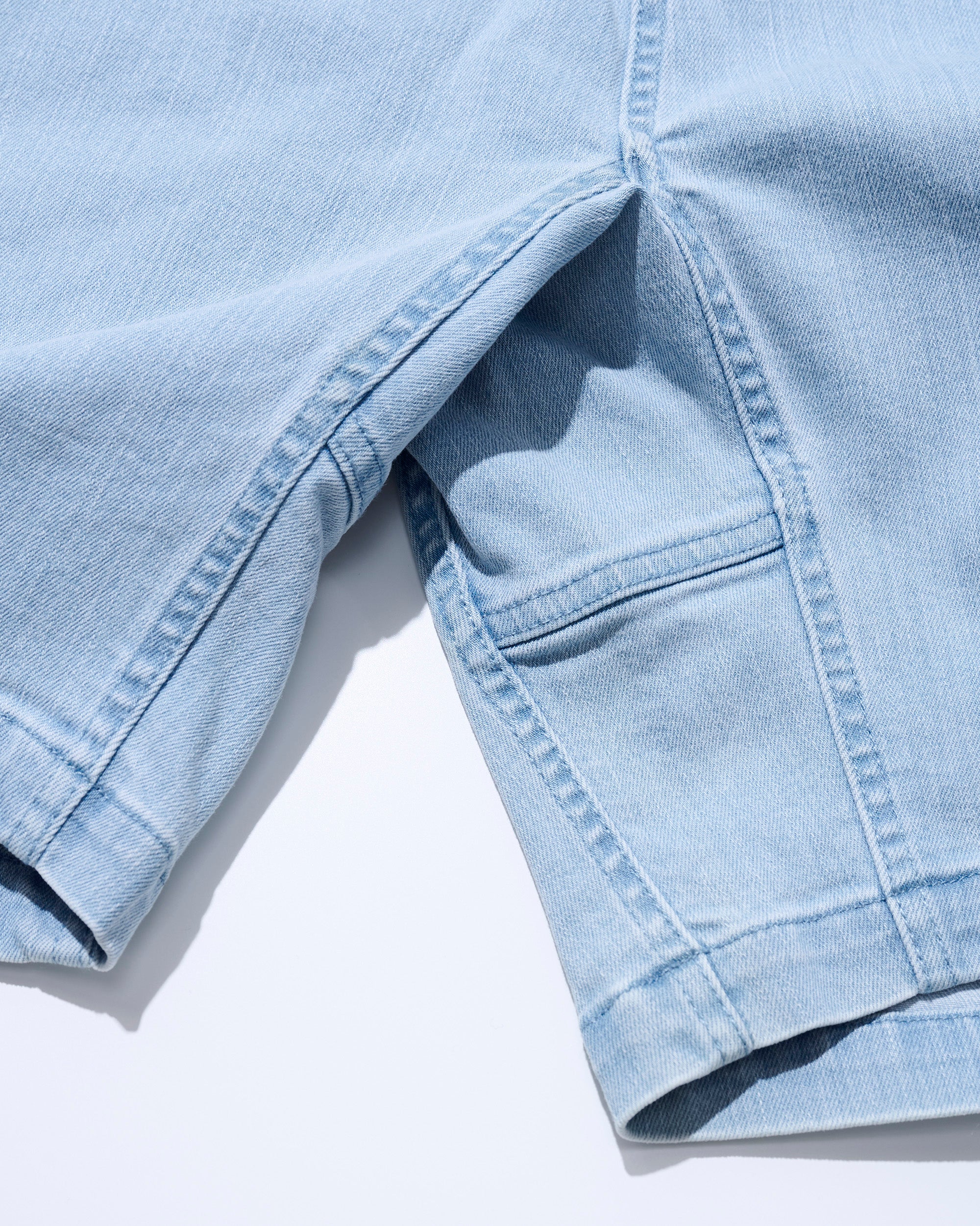 シンプルでベーシックな「MGロックスショーツ」をデニムで再現しています。