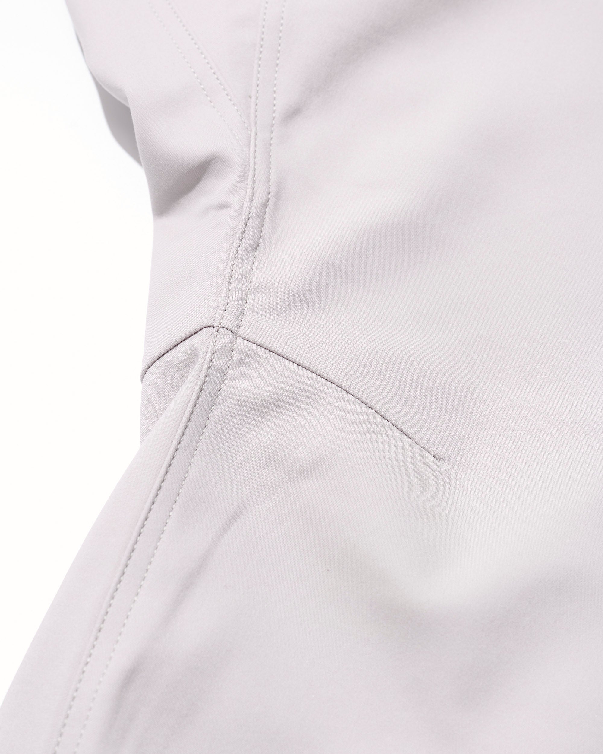 しなやかな肌触りと光沢感のあるコットンに、強度と速乾性に優れたナイロンをミックスした生地はストレッチ性も備えており、裾に向かってテーパードするスリムなシルエットにもかかわらず、窮屈さはなく快適な吐き心地をキープ。