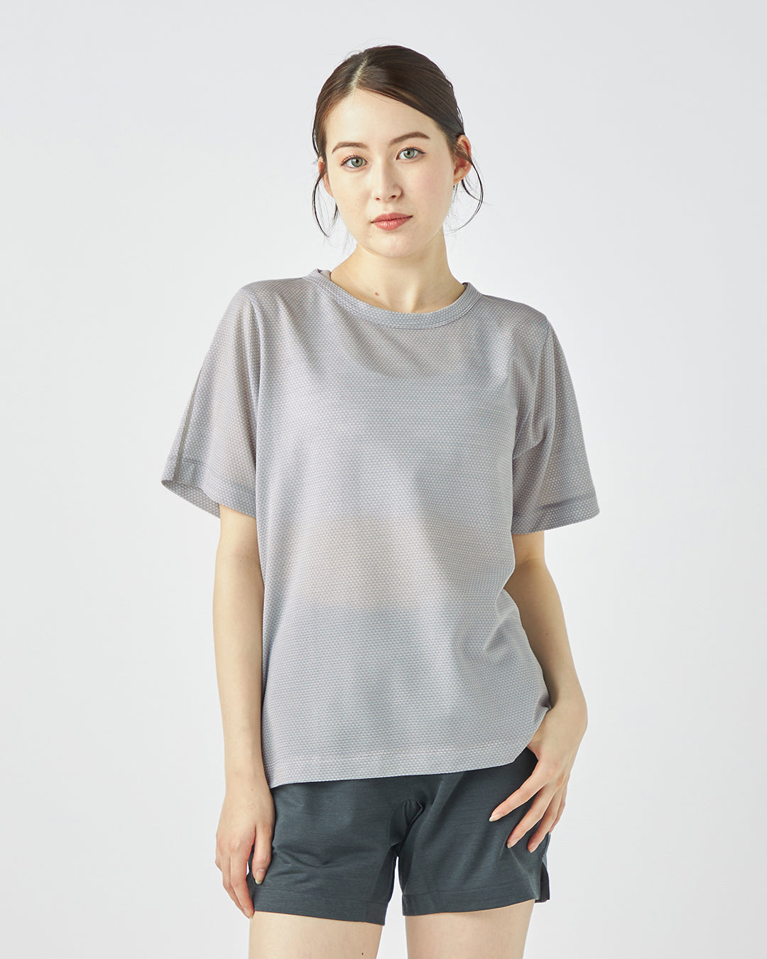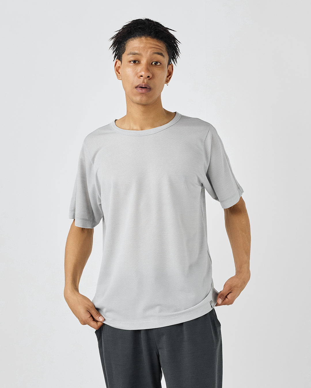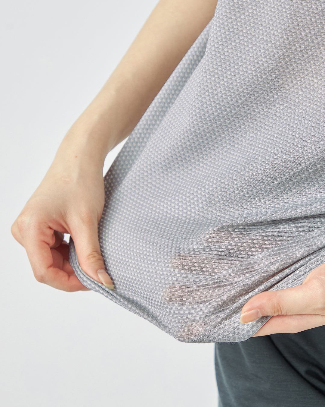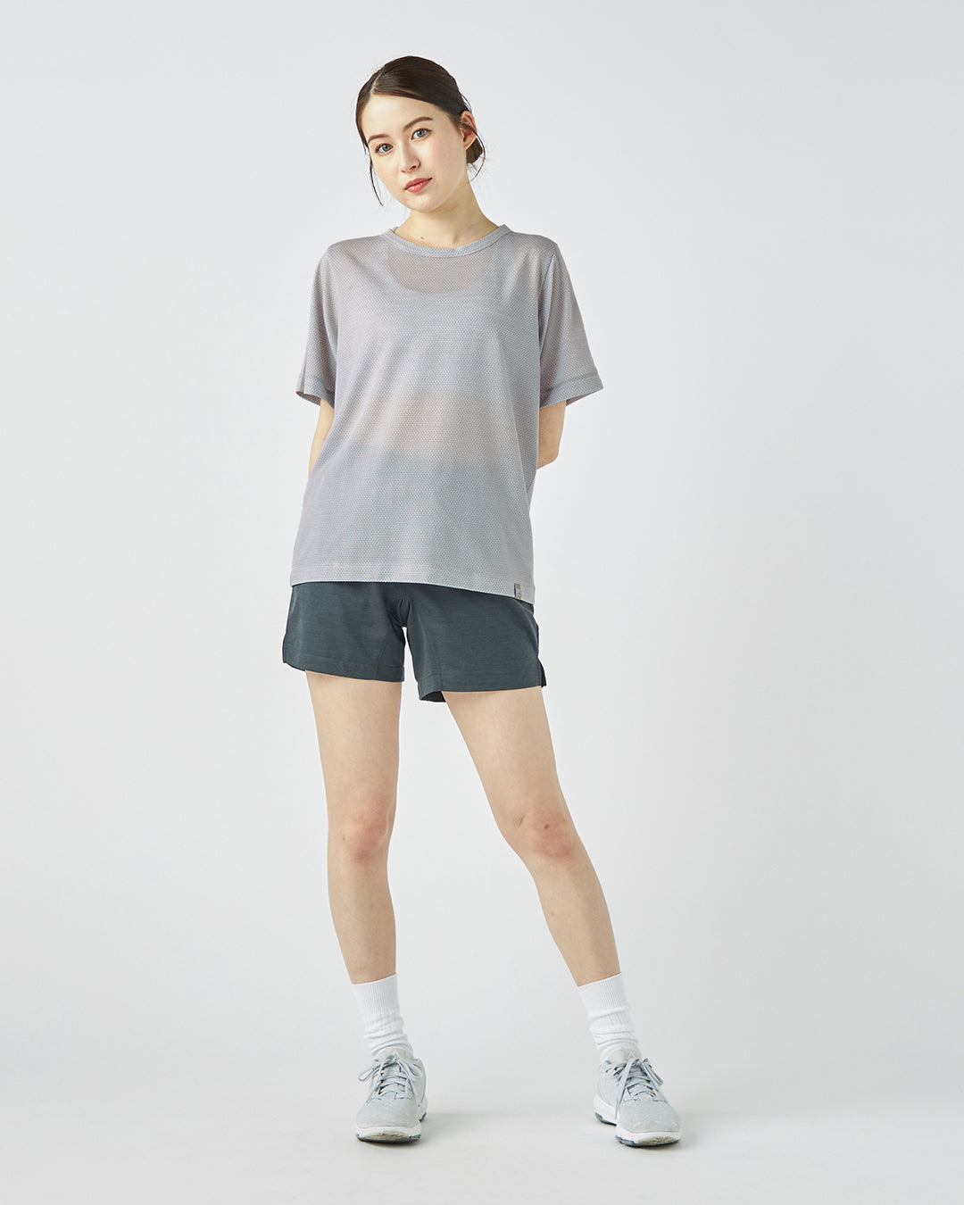 メッシュ組織でベタ付かず、通気性が良く、熱を逃がす事で蒸れにくいため、ランニングや夏場のハイキングなど、汗を多くかくシーンにおすすめ。