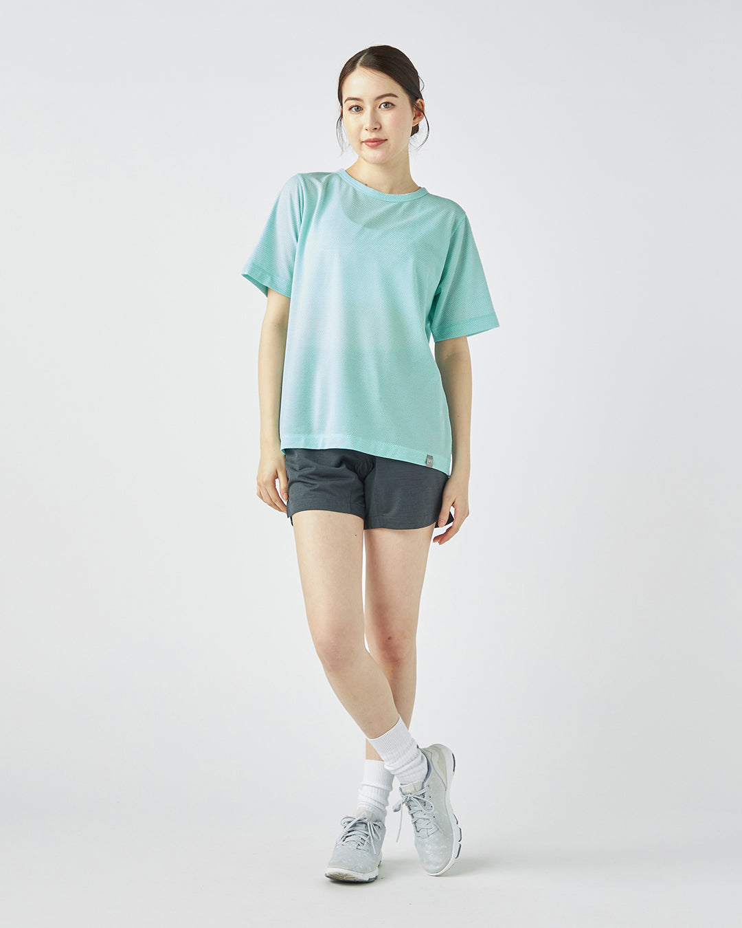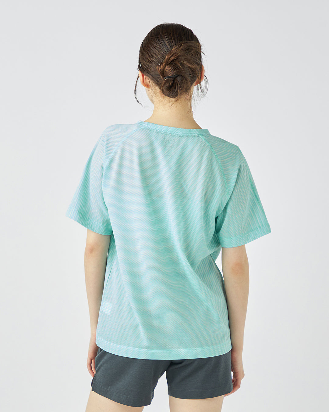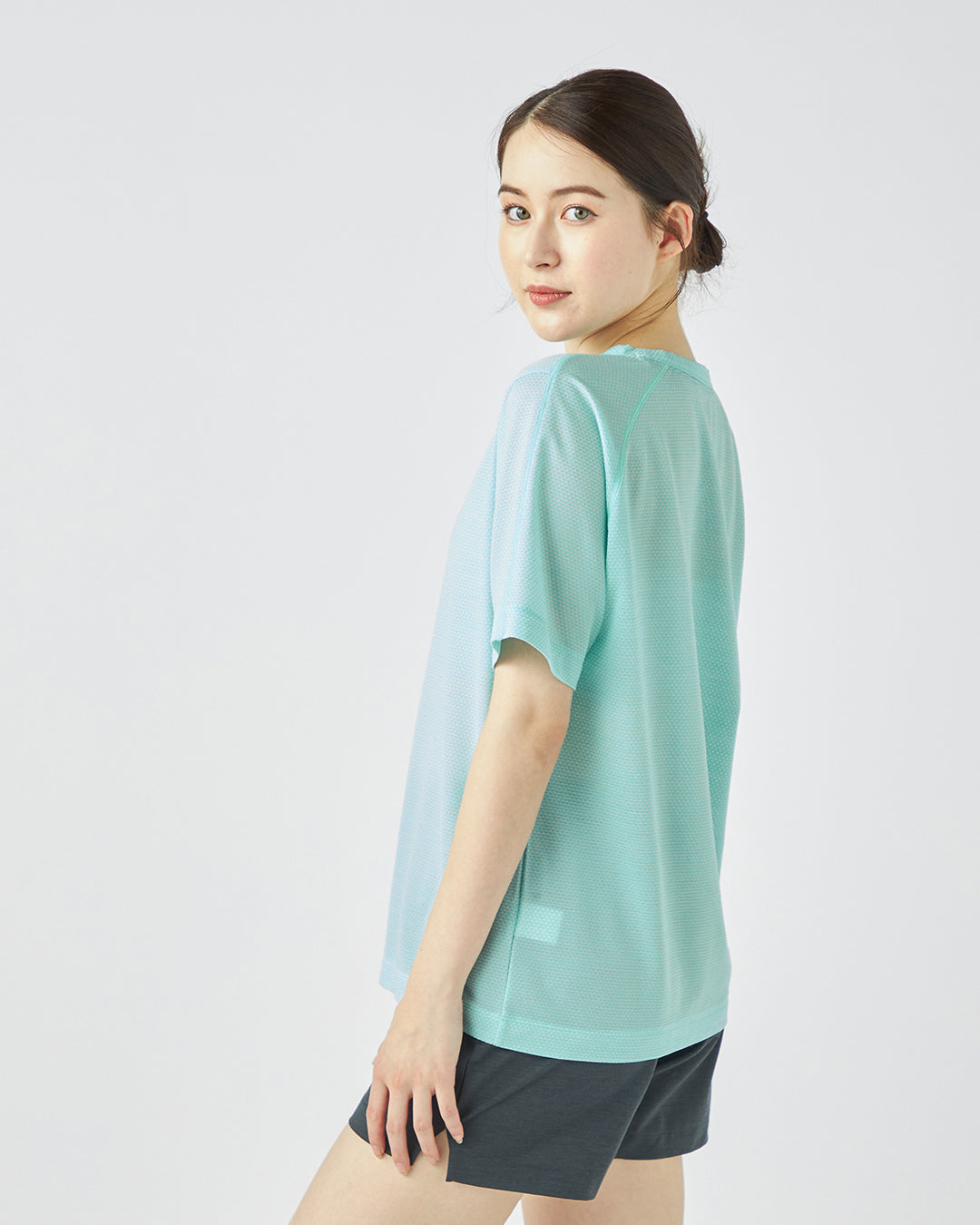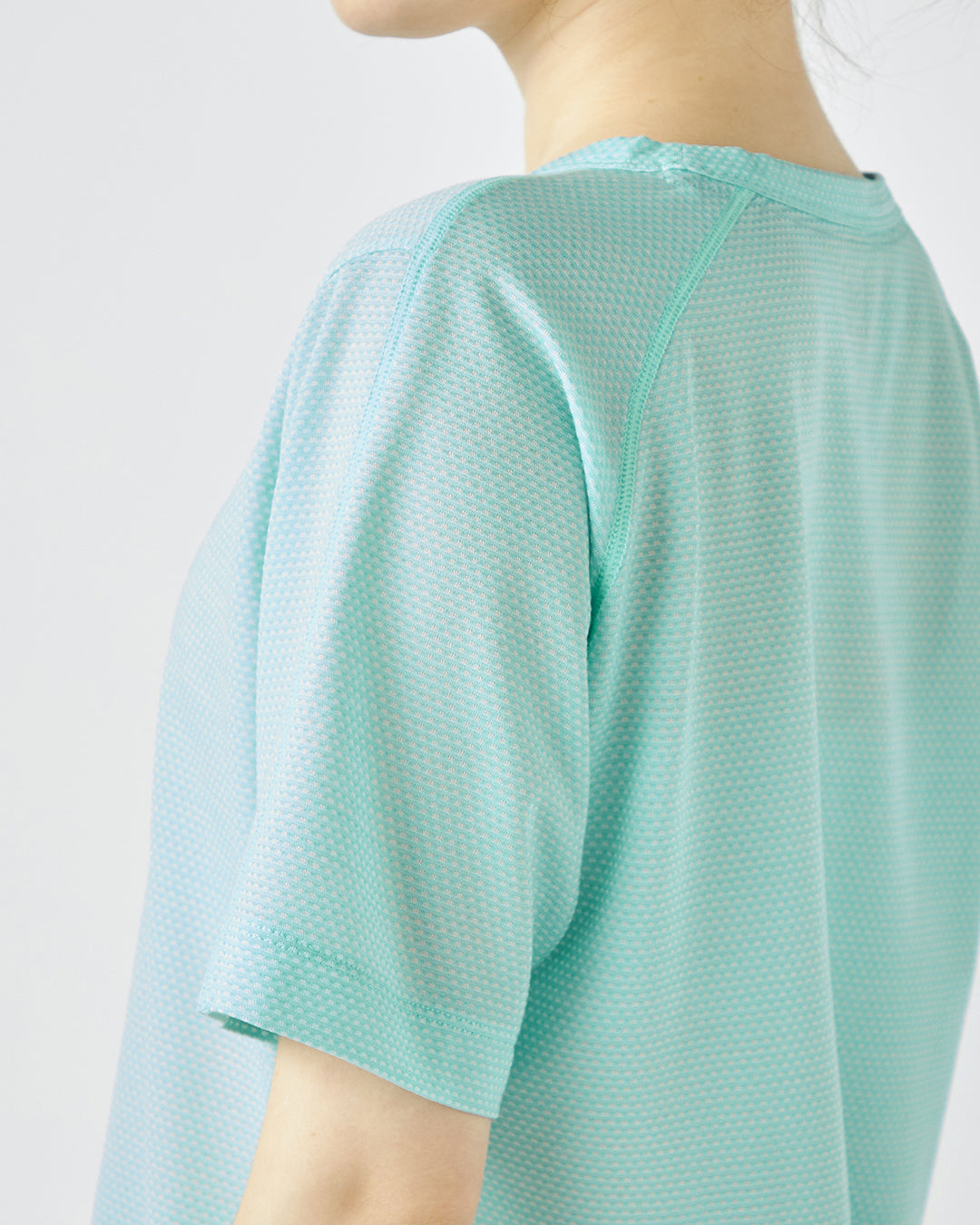 メッシュ組織でベタ付かず、通気性が良く、熱を逃がす事で蒸れにくいため、ランニングや夏場のハイキングなど、汗を多くかくシーンにおすすめ。