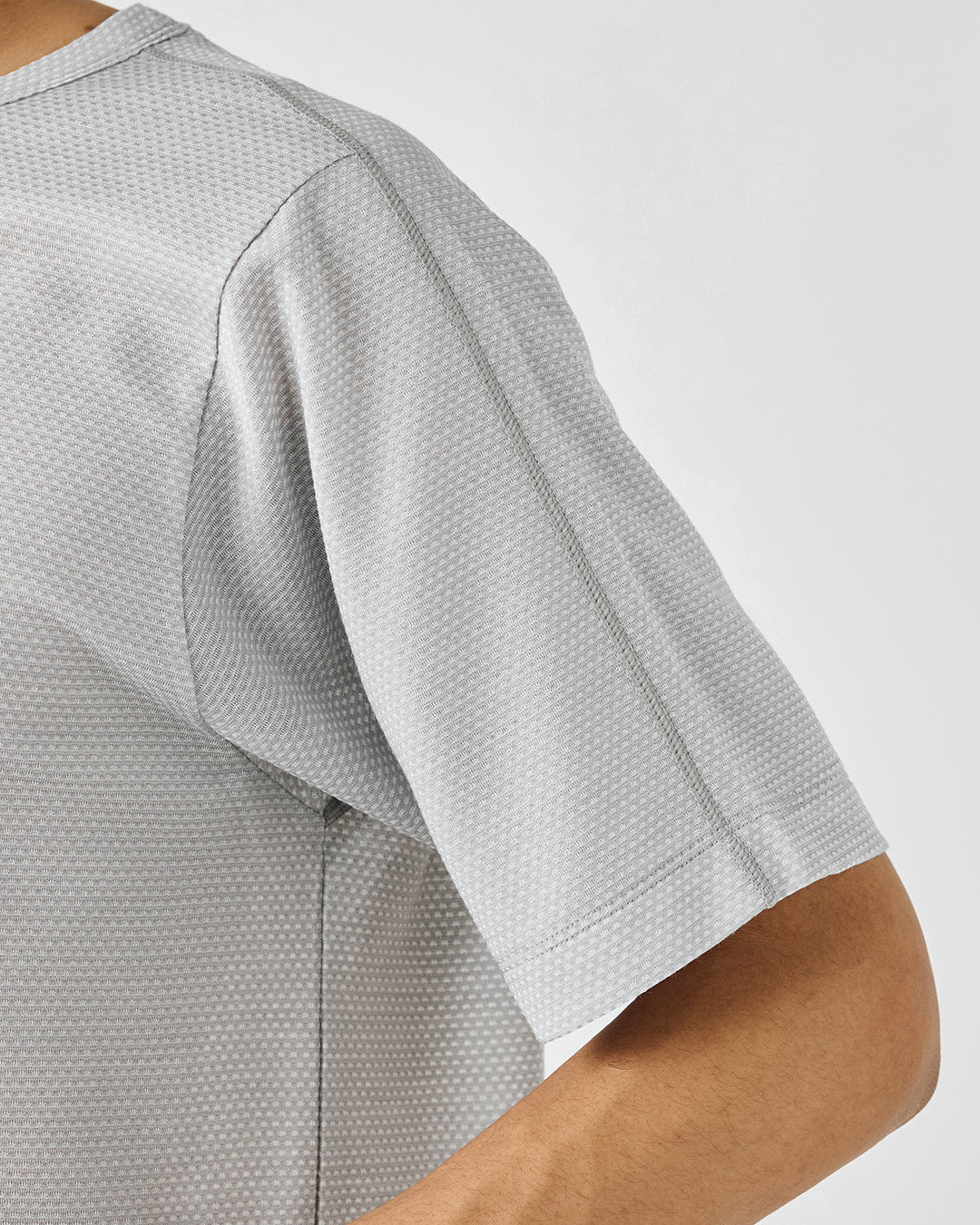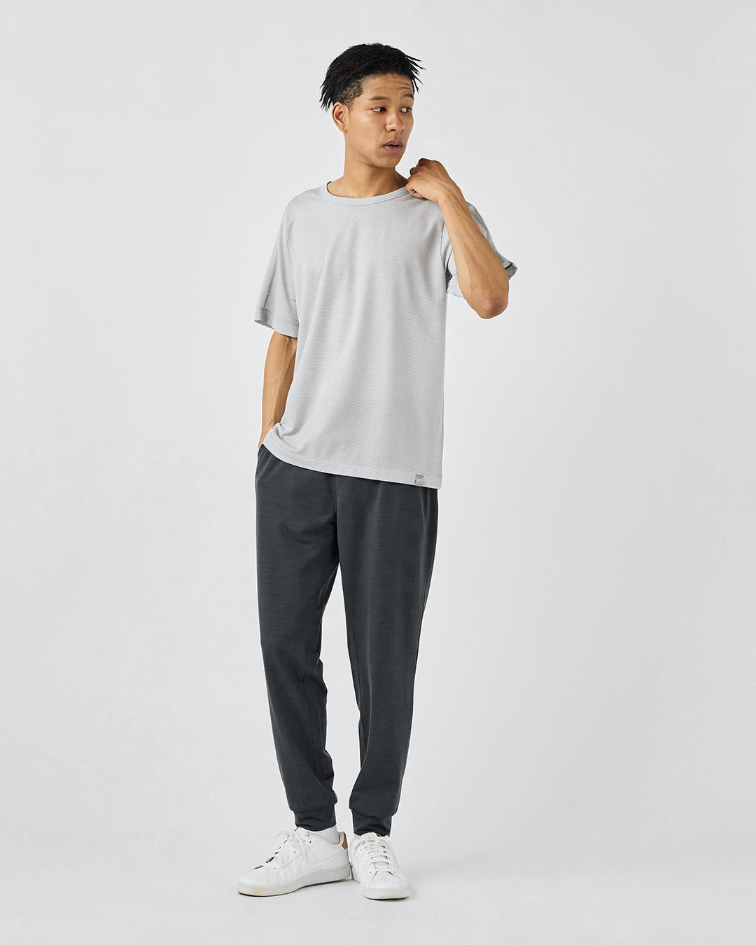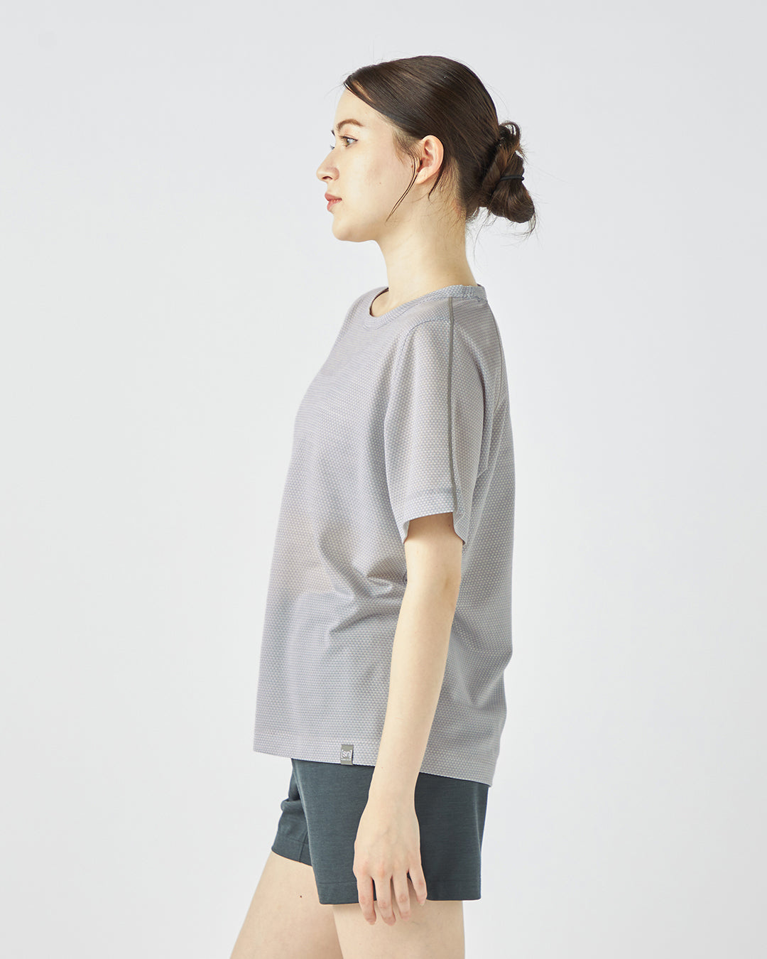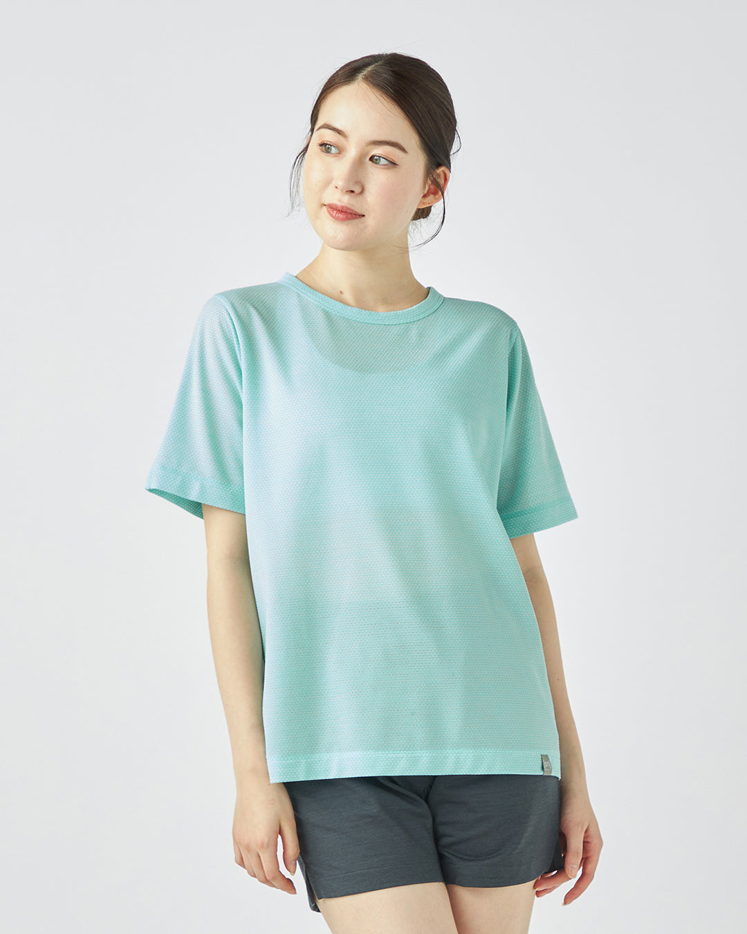 メッシュ組織でベタ付かず、通気性が良く、熱を逃がす事で蒸れにくいため、ランニングや夏場のハイキングなど、汗を多くかくシーンにおすすめ。