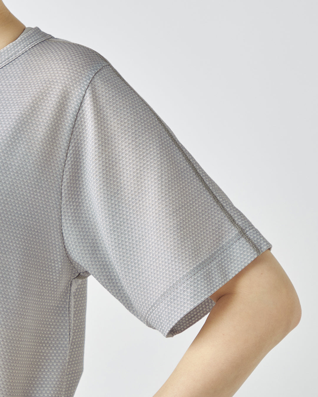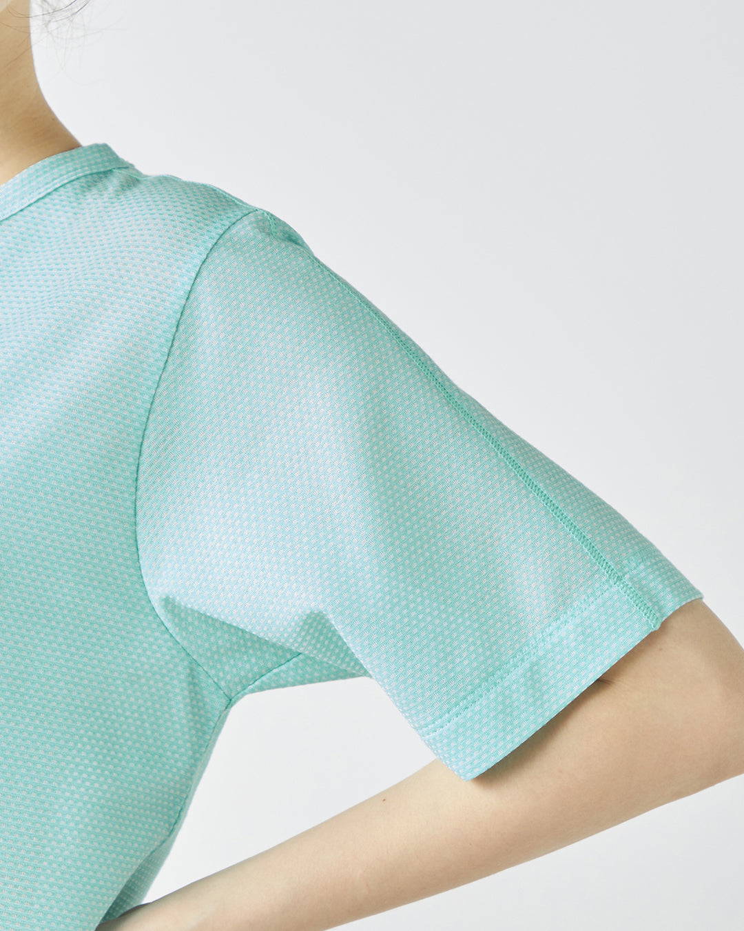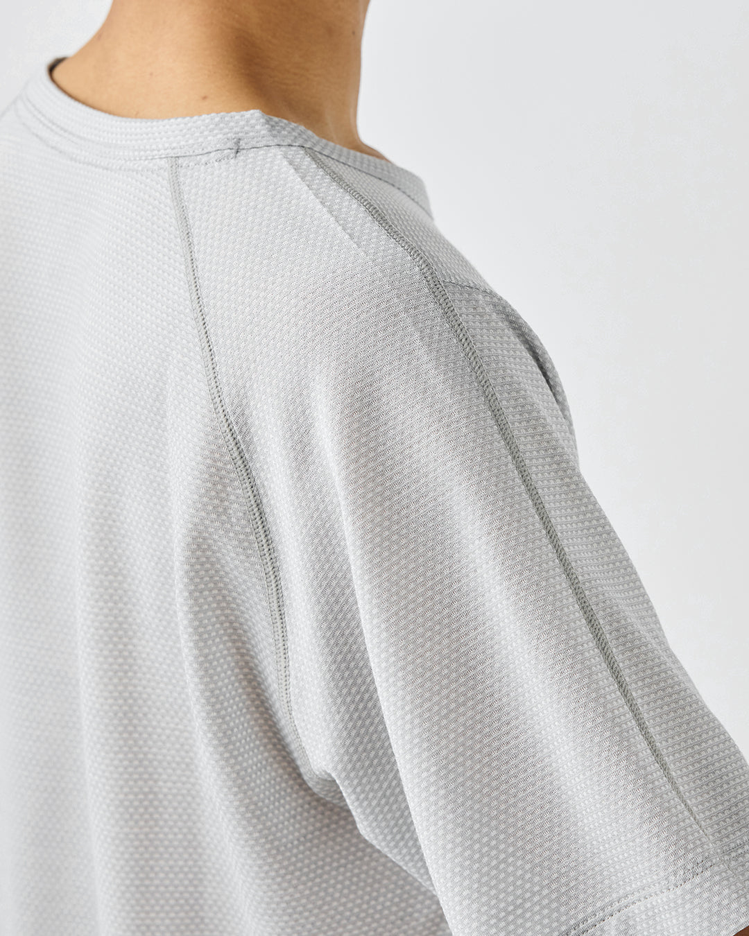 袖の可動域にこだわったスプリッド ラグランスリーブを採用。背面はラグランスリーブで肩が動かしやすい仕様。腕の動かしやすさを維持しながらも、前面は通常のセットインスリーブのため、スッキリとしたシルエットになっています。